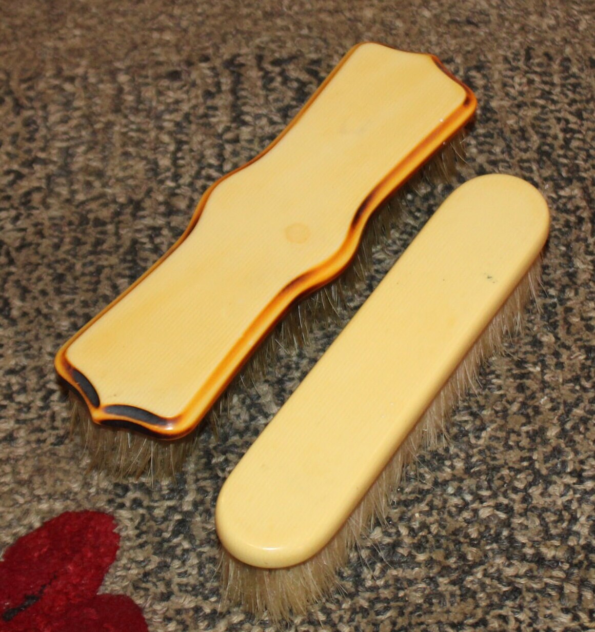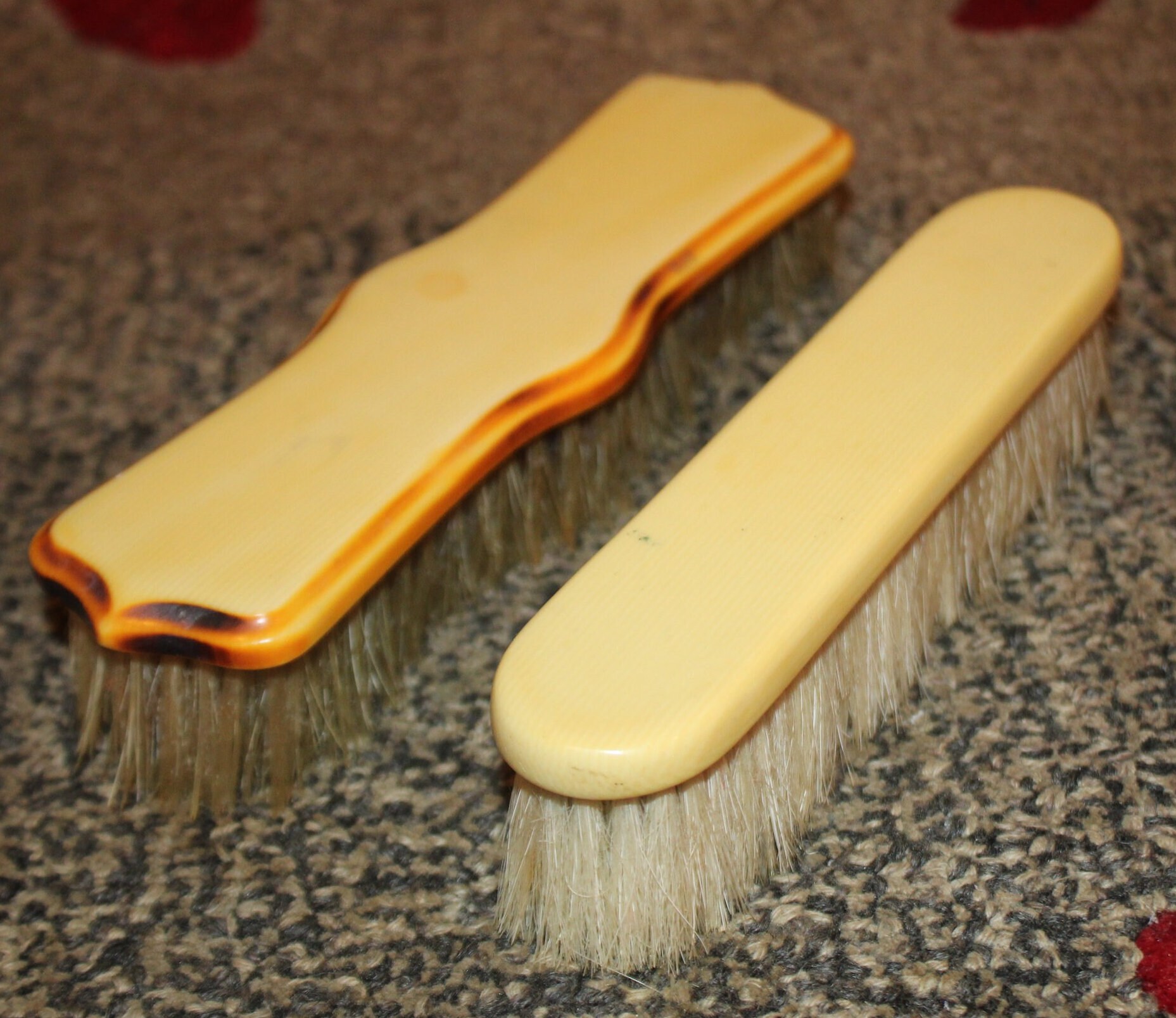 Two Wonderful Art Nouveau Bakelite Vanity Dresser Brushes- French Country/Antique/Vintage