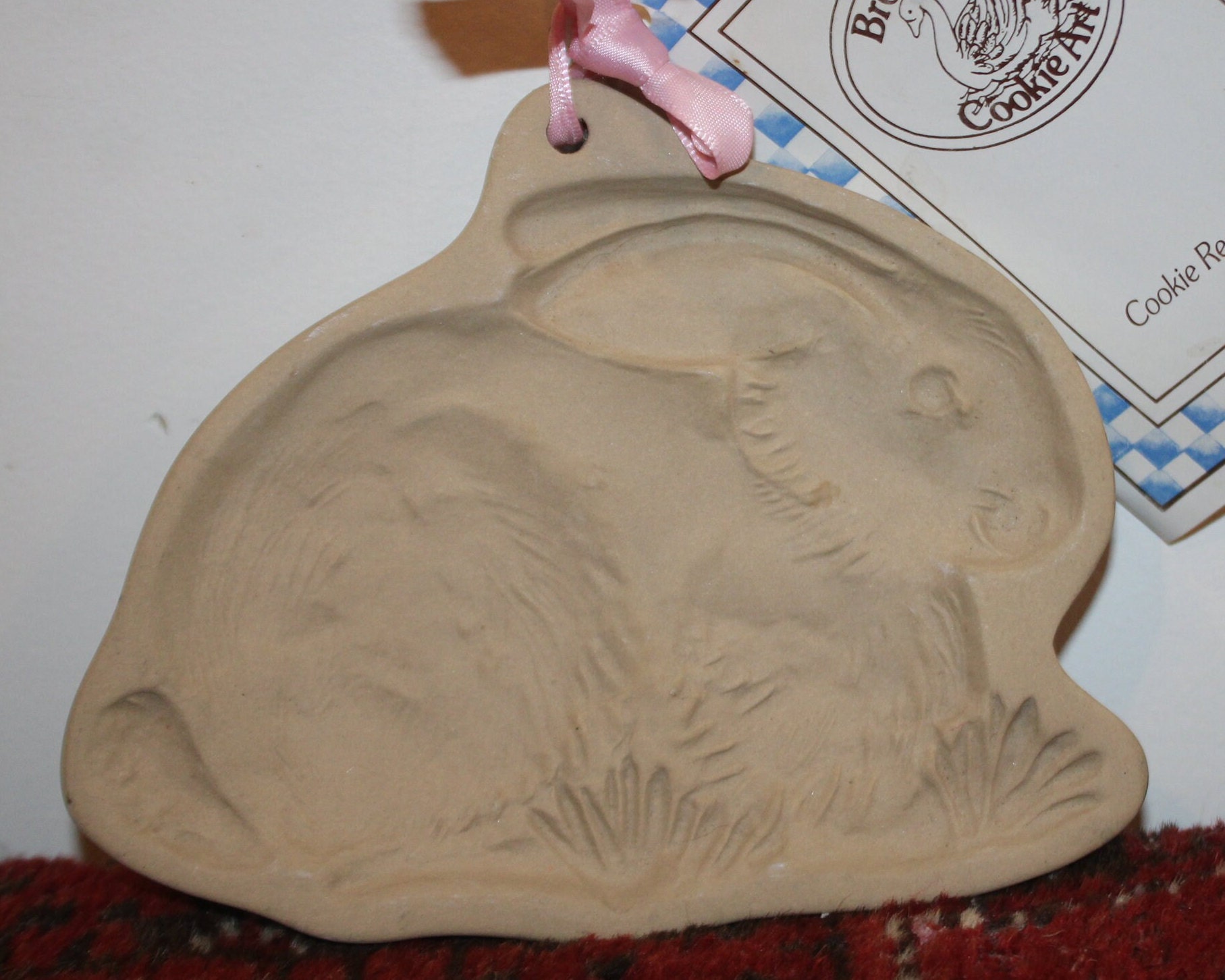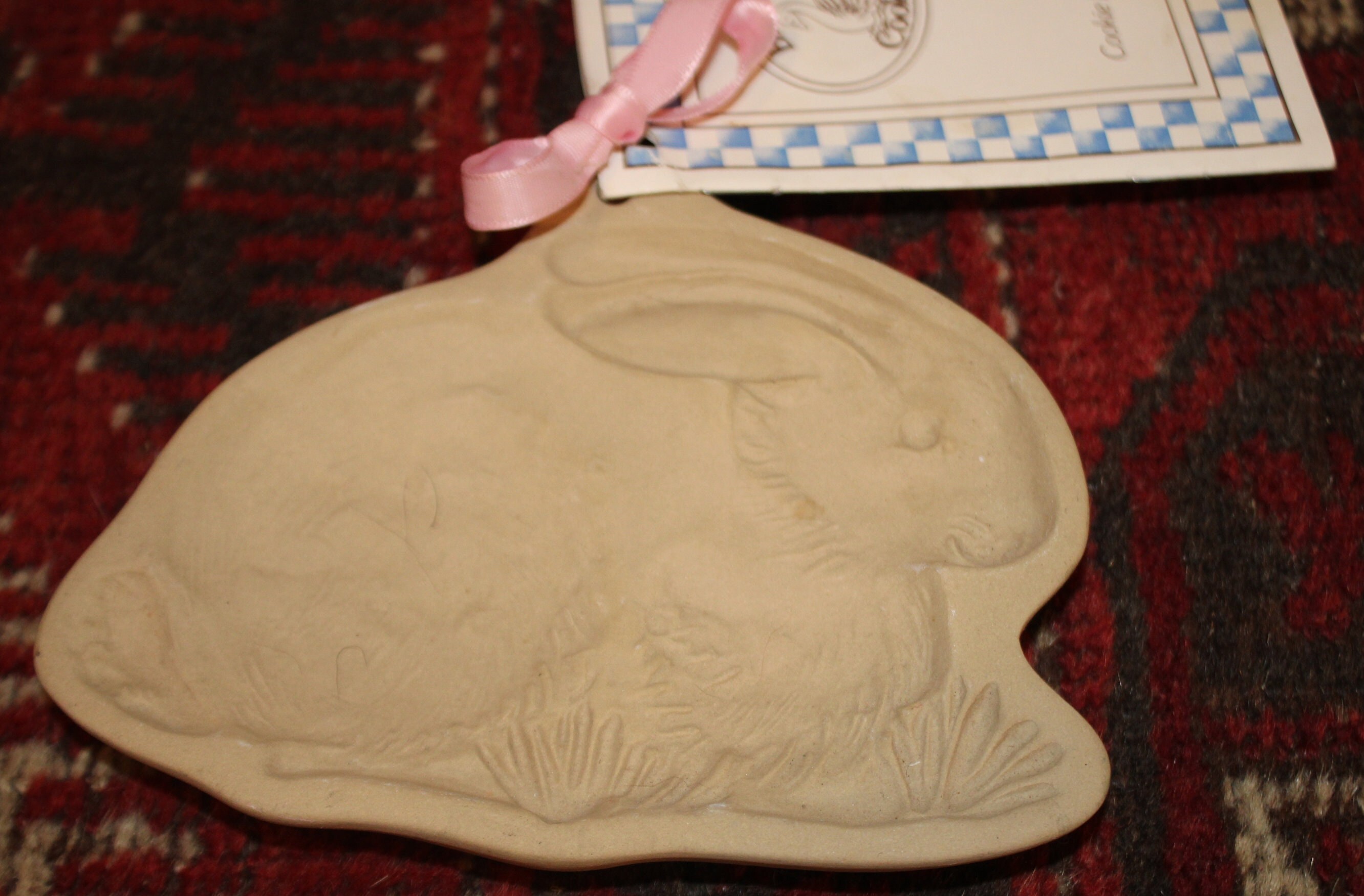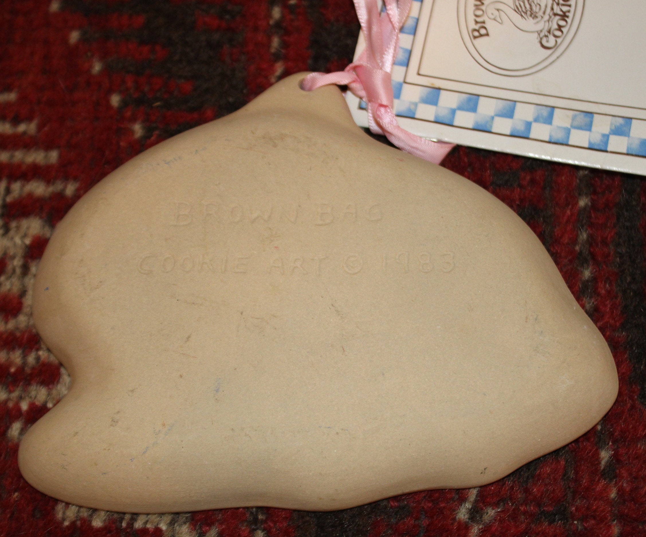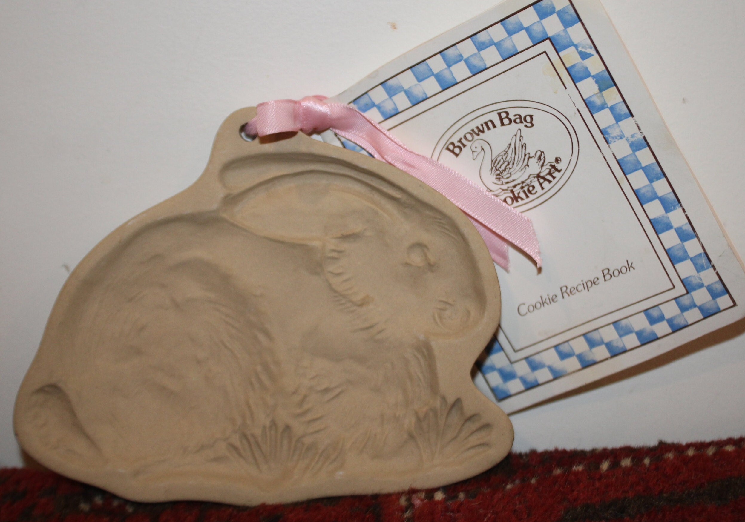 This Vintage Brown Bag Cookie Art Bunny Rabbit Cookie Mold is so adorable! It is 6" x 5.25" and depicts a sweet rabbit lying in a thatch of grass. It is marked "Brown Bag Cookie Art 1983." There are no chips or cracks and the cookie recipe booklet is included. Please message us if you have any questions- Thanks for looking!
