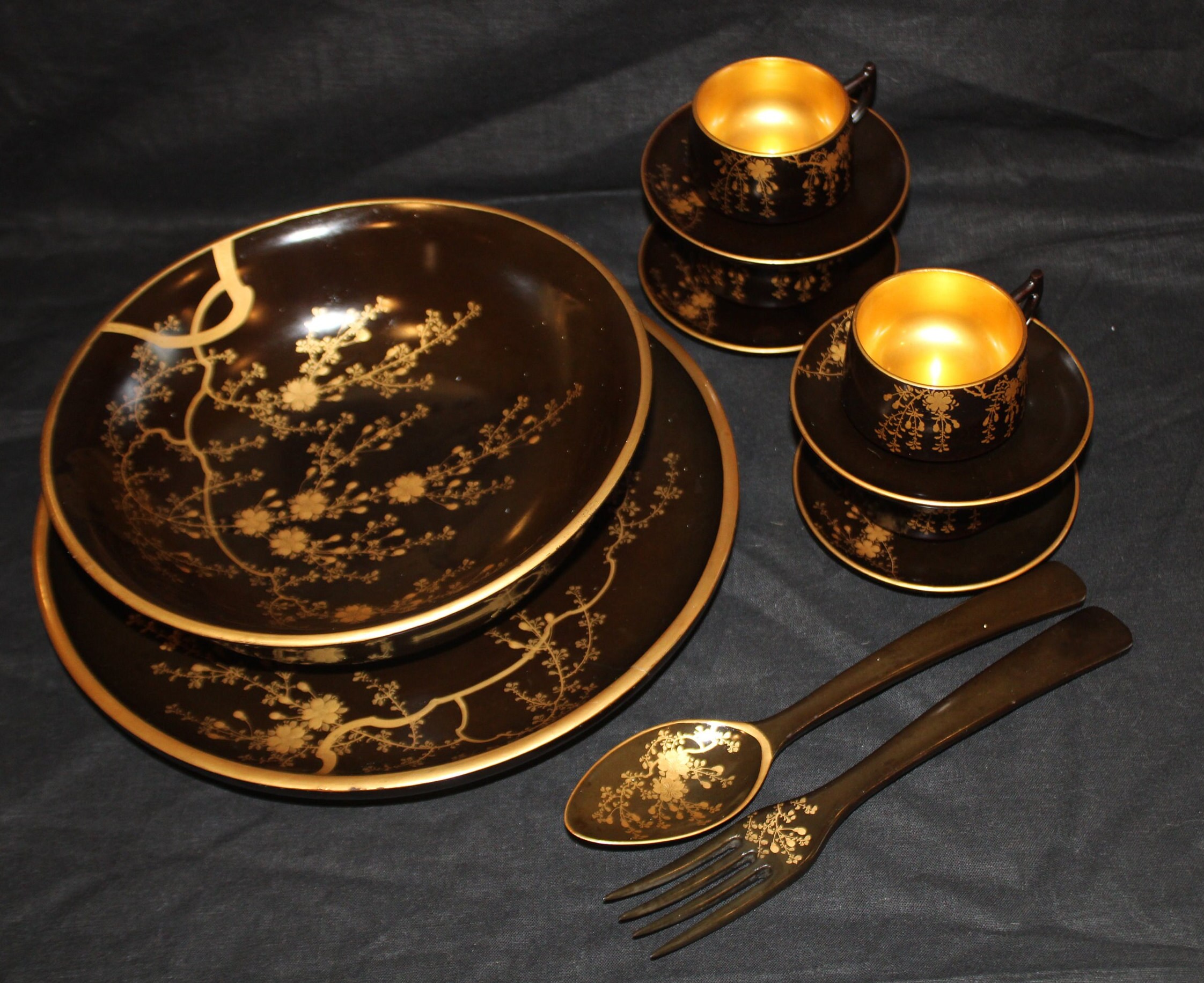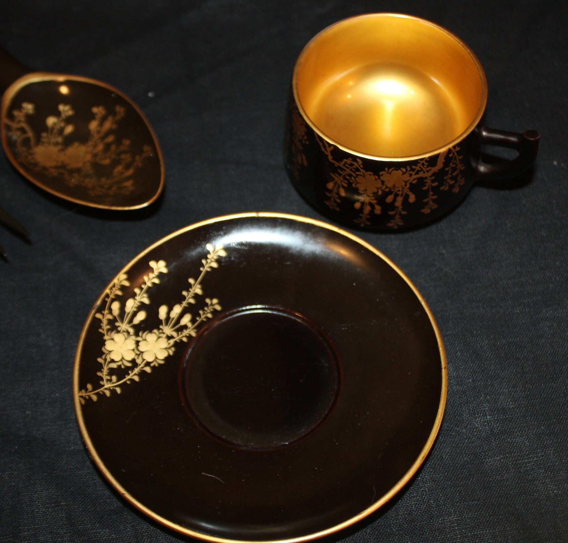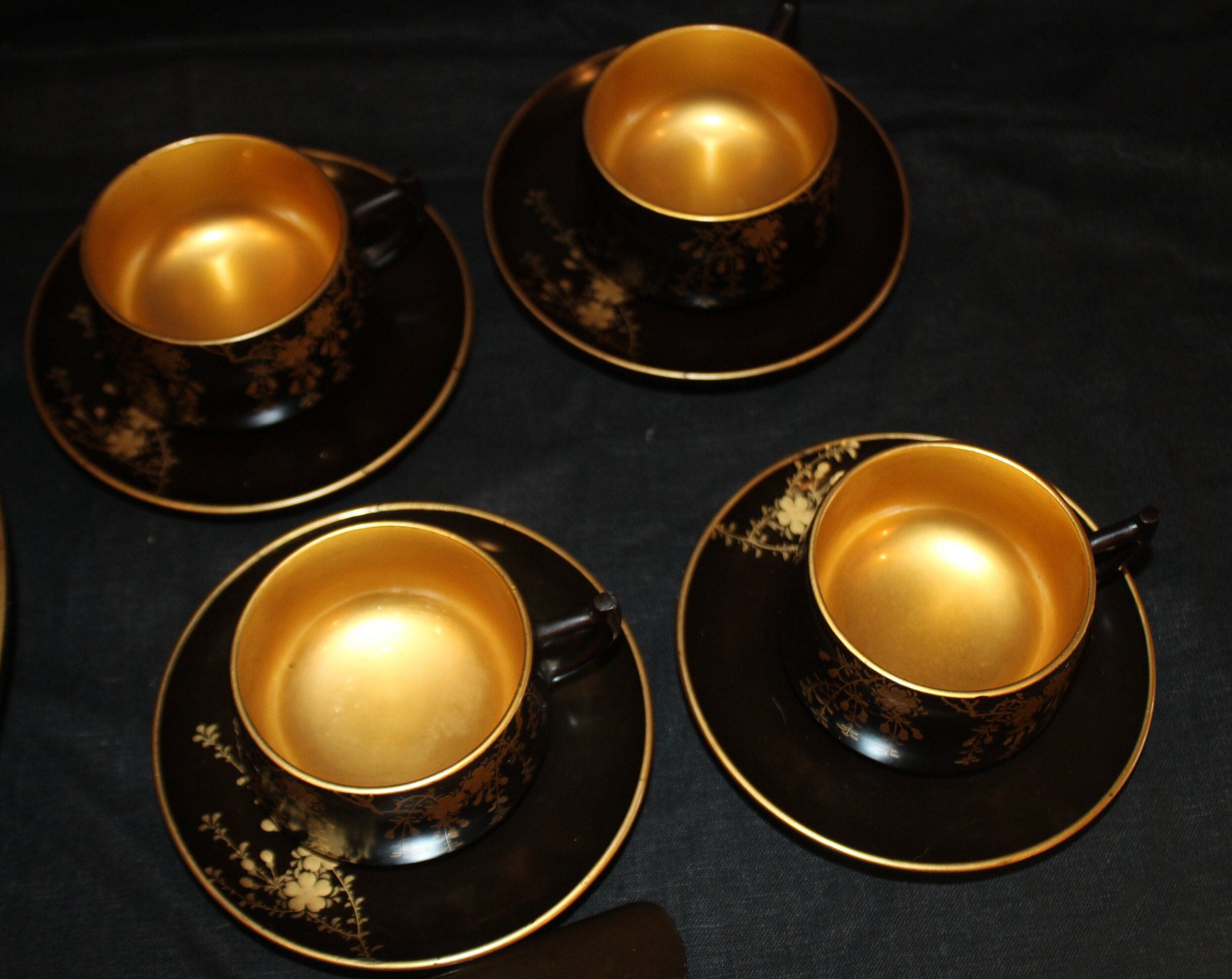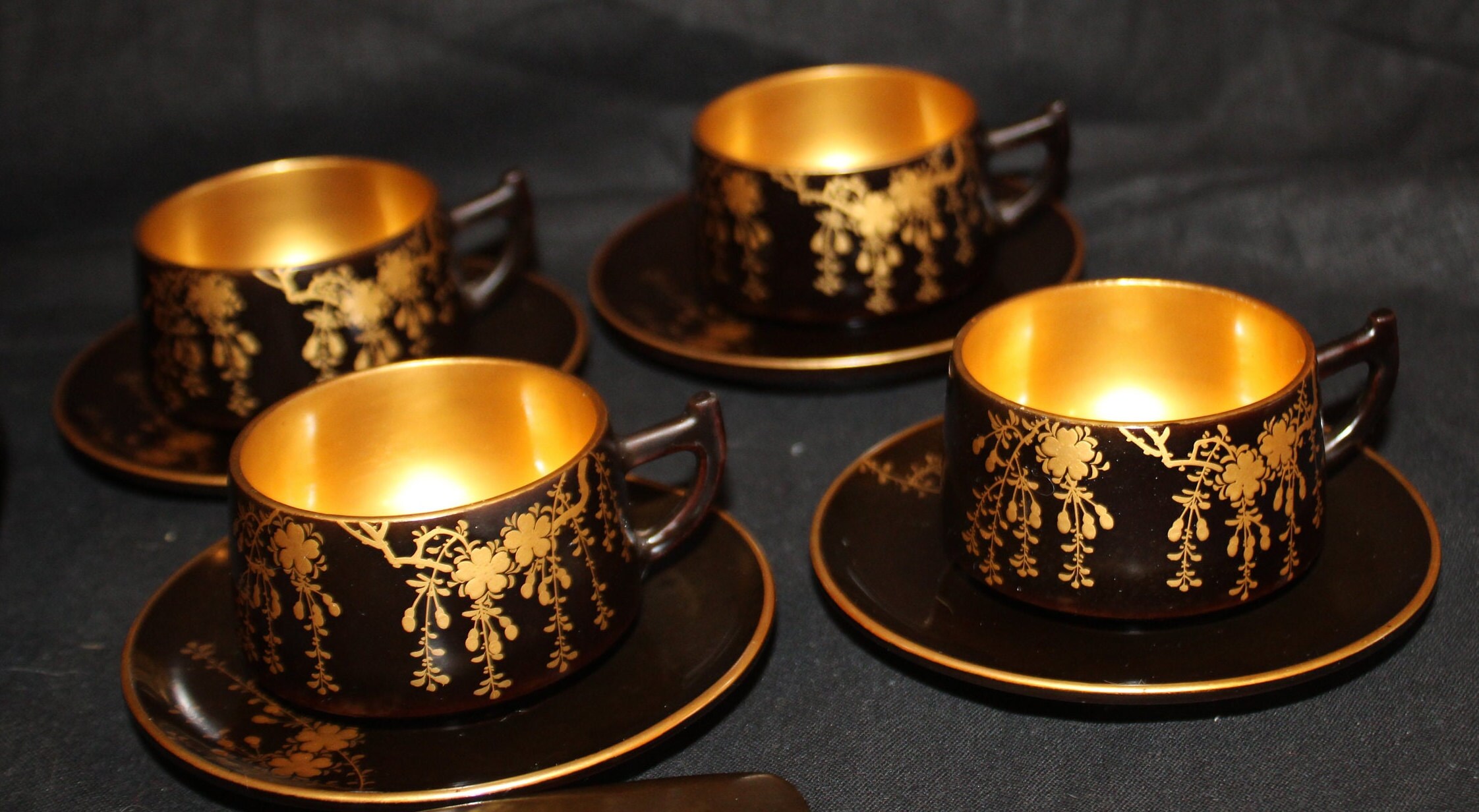 Vintage Handpainted Japanese Lacquerware Tea Set – Gold Gilt Blossom Decor