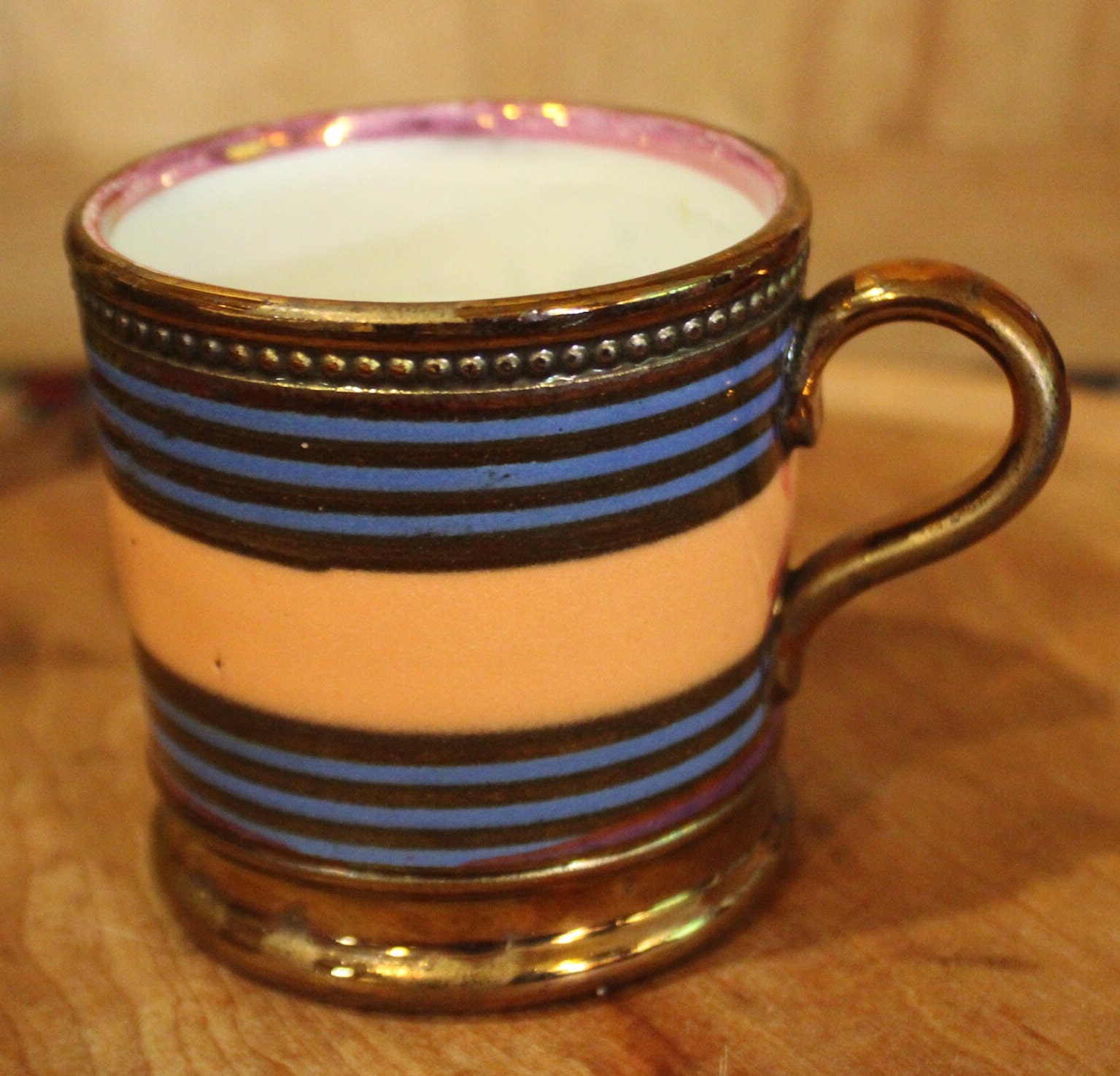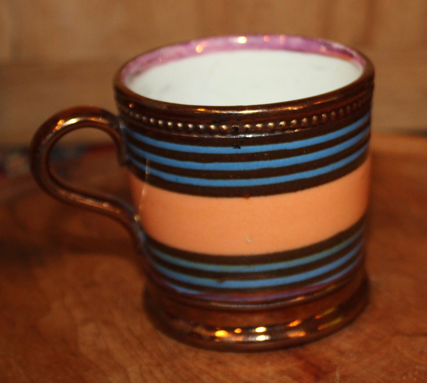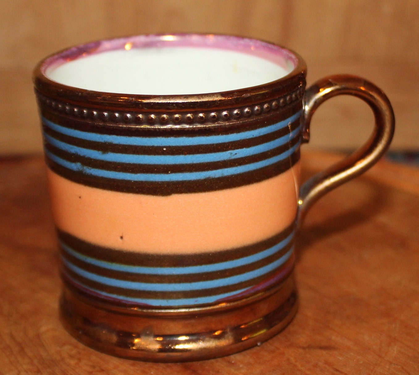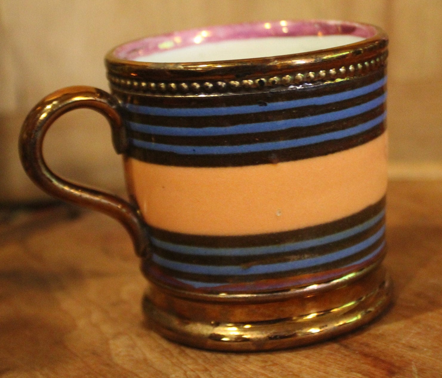 Gorgeous Antique 19th Century English Luster Striped Children's Mug