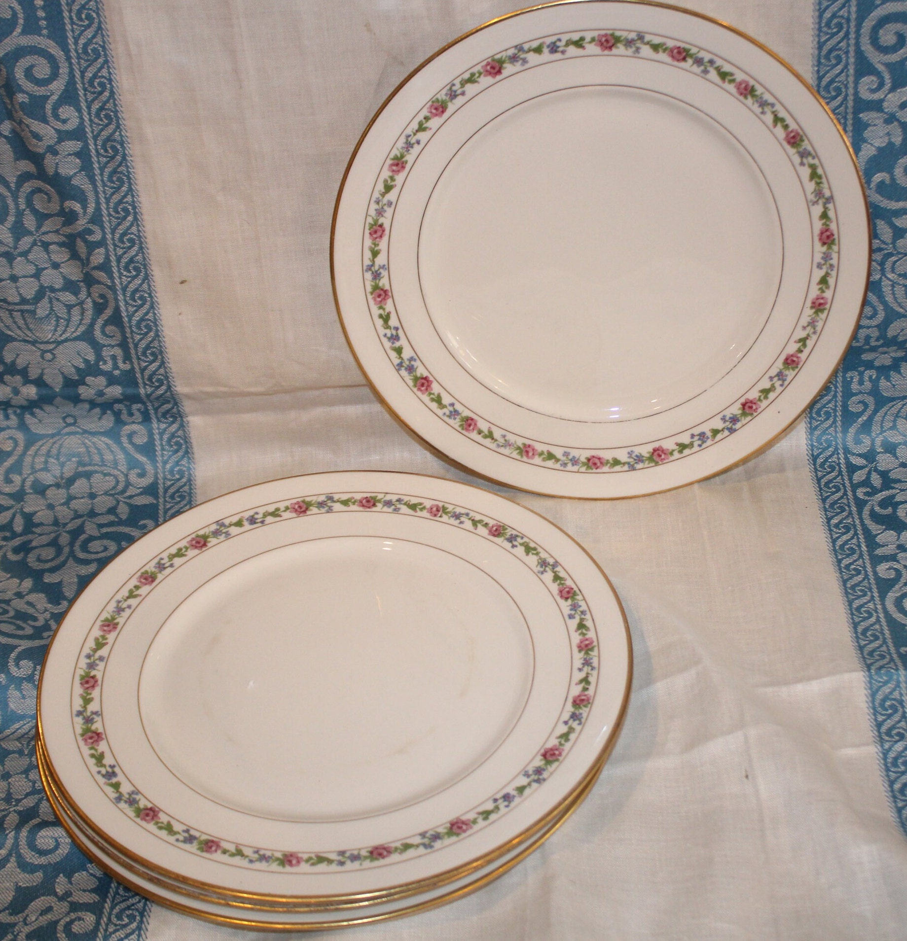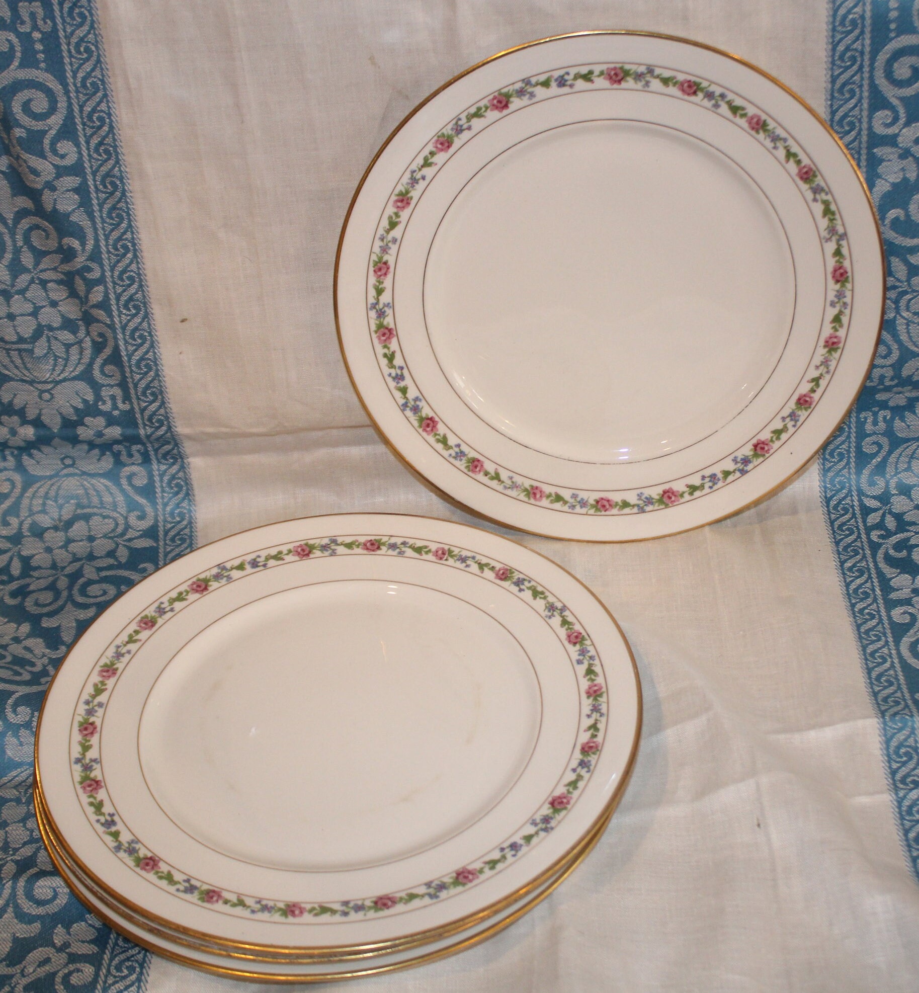 This Very Pretty Set of Four Lamberton Ivory China Dinner Plates with Roses could be yours! Each dinner plate is 10.25" in diameter with no chipping or cracking- there is wear to the gold gilt which can be seen in our photos. Please message us if you have any questions- Thanks for looking!