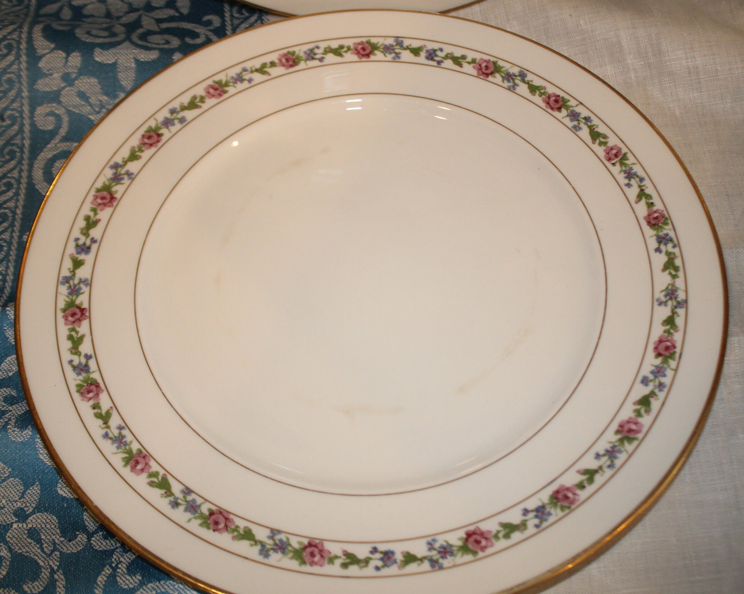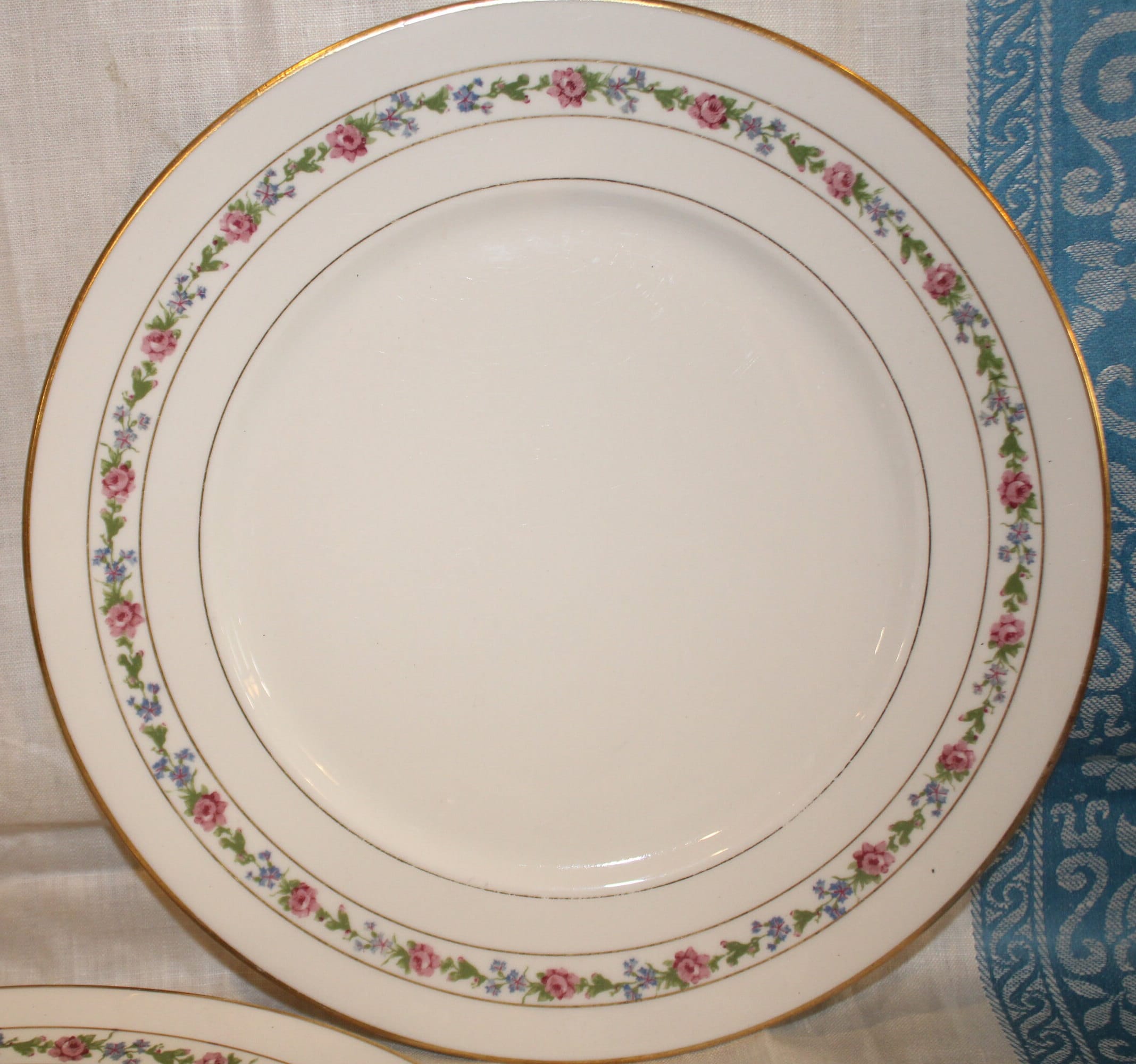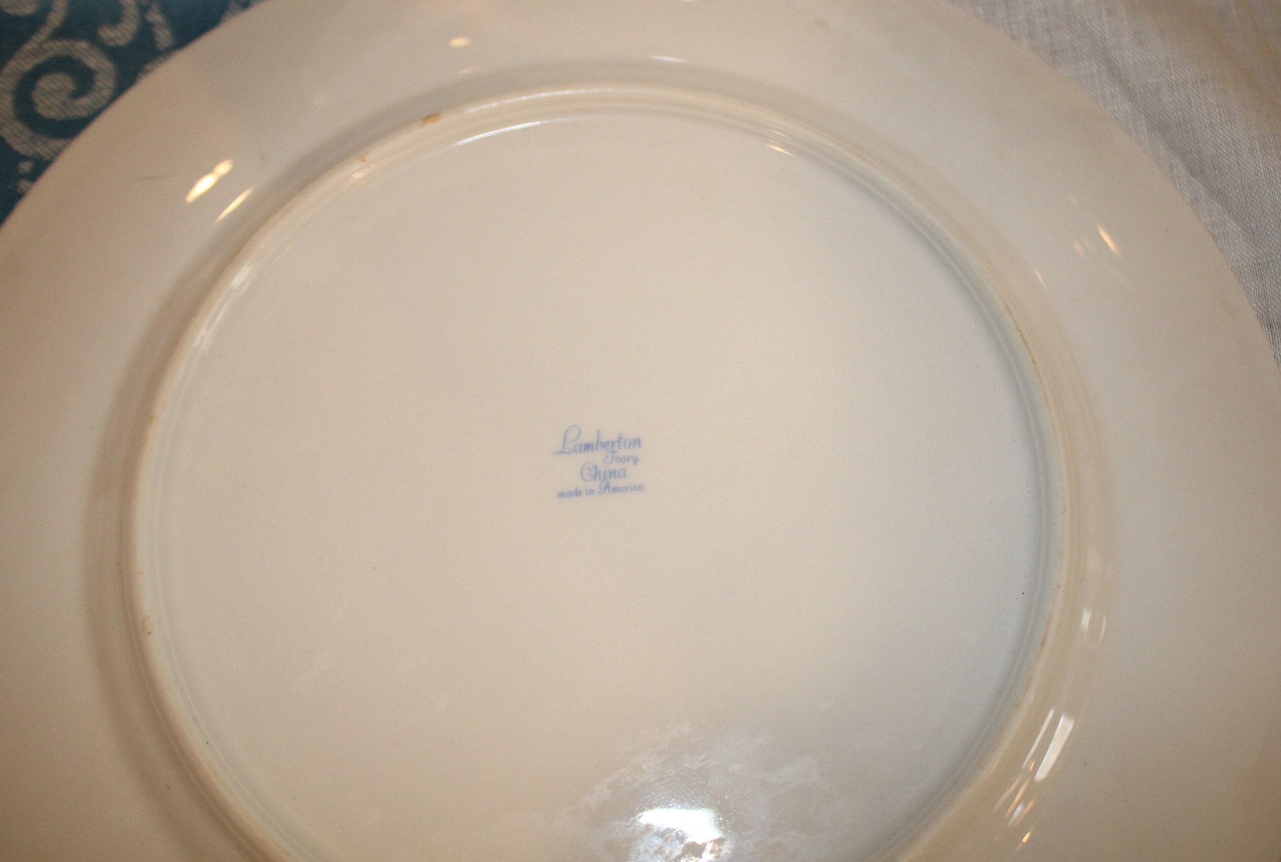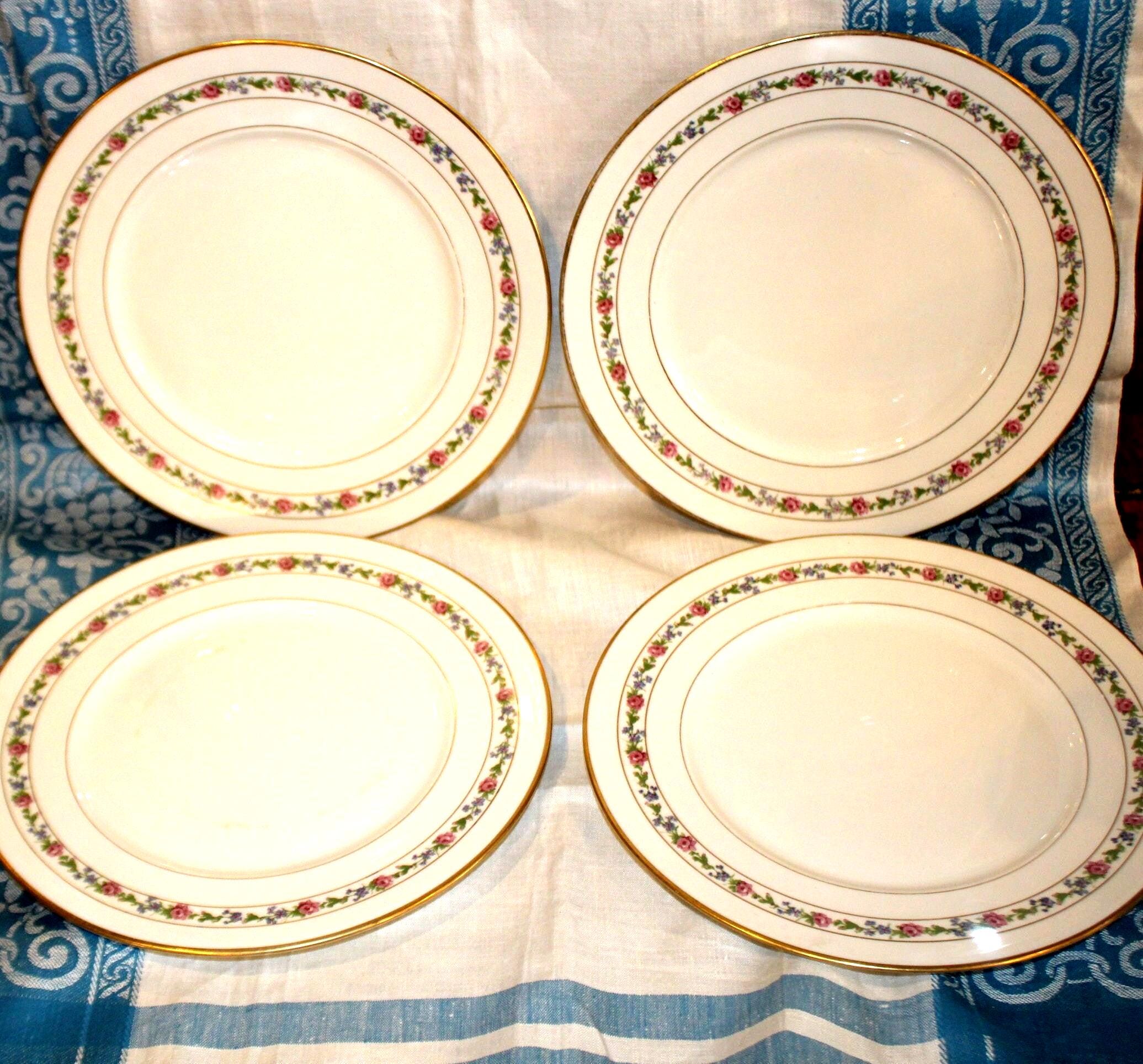 Very Pretty Set of Four Lamberton Ivory China Dinner Plates with Roses-10.25"- made in America