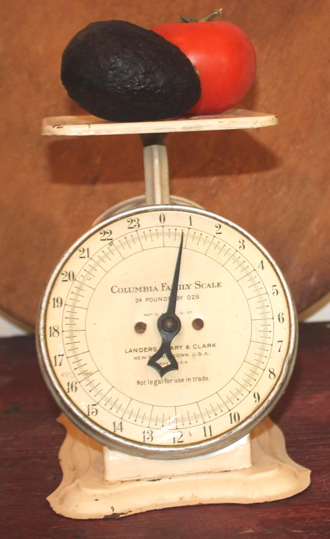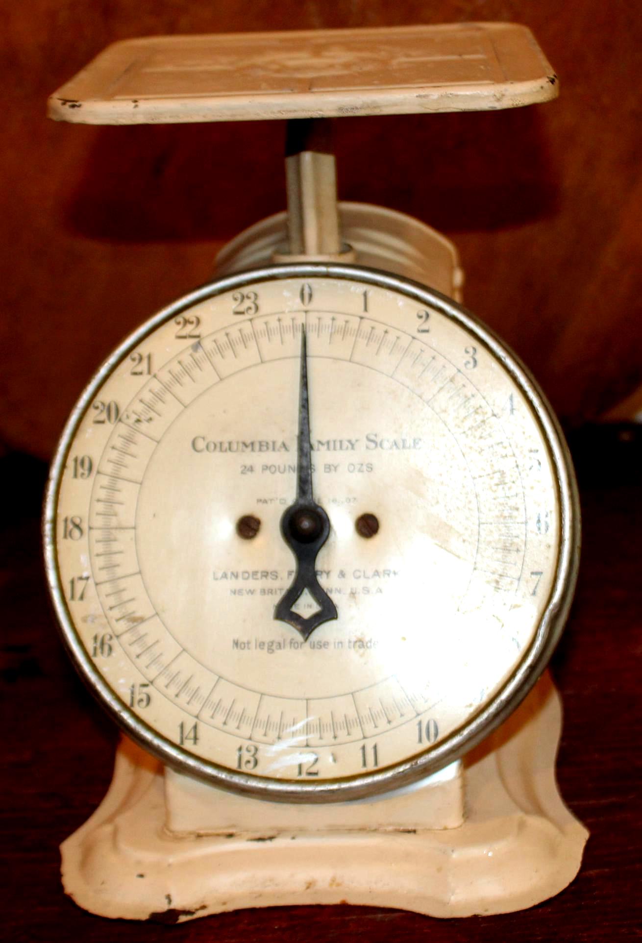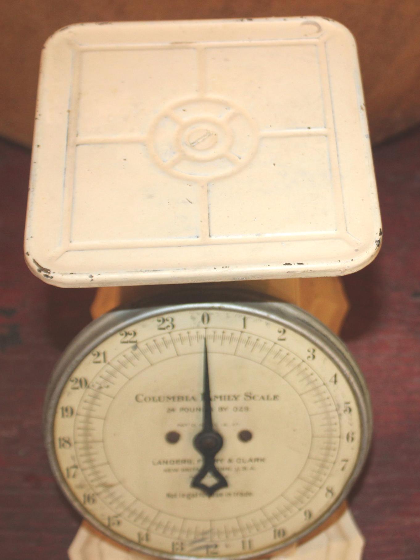 Very Nice Antique Columbia Family Scale in Cream Paint- Landers, Frary & Clark New Britain Connecticut- Farmhouse/Cottage/Shabby Chic