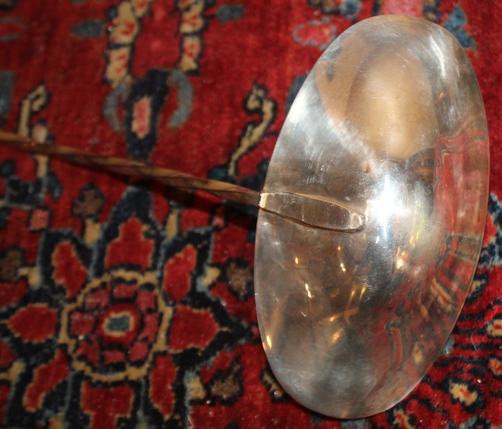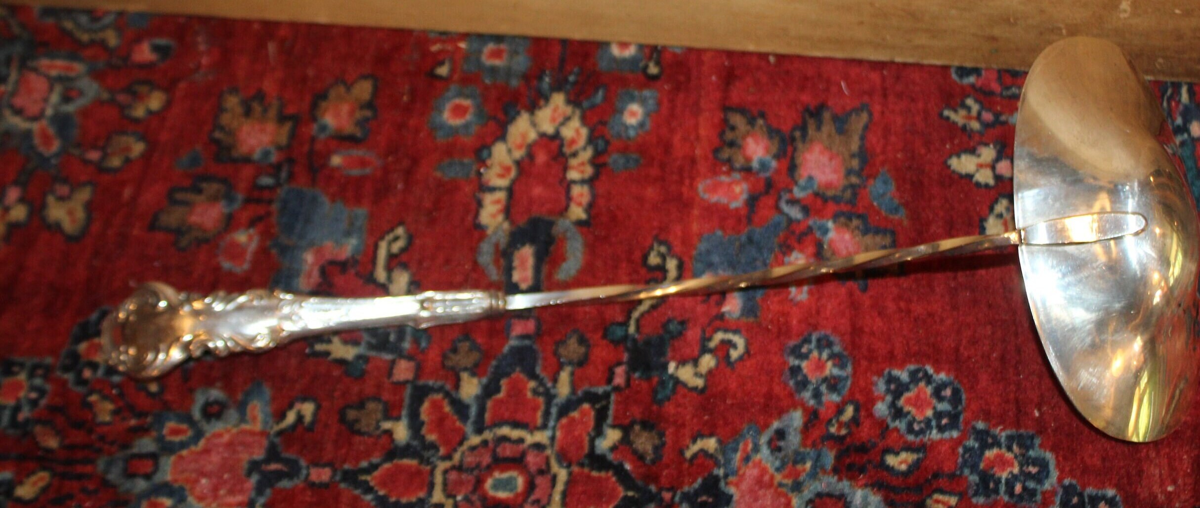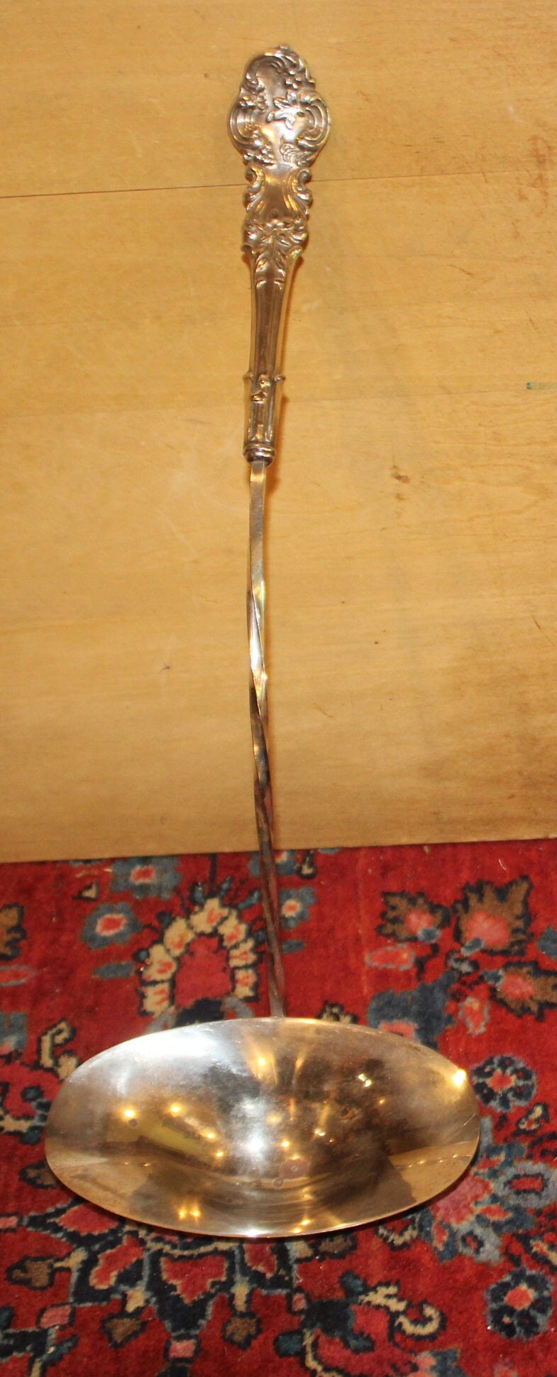 This Silverplated Long-handled Ladle made by Towle would be great to have on hand at your next big event! It is not only gorgeous with its floral handle and swirled stem- it's very functional and great to use in a punch bowl! It measures 16.25" long with an oval bowl that measures 5.75" x 3.25"x 1.5" deep. The bottom of the bowl does have some plate loss which can be seen in the photos- but it is still very gorgeous- and it is NOT monogrammed. Please message us if you have any questions- Thanks for looking!
