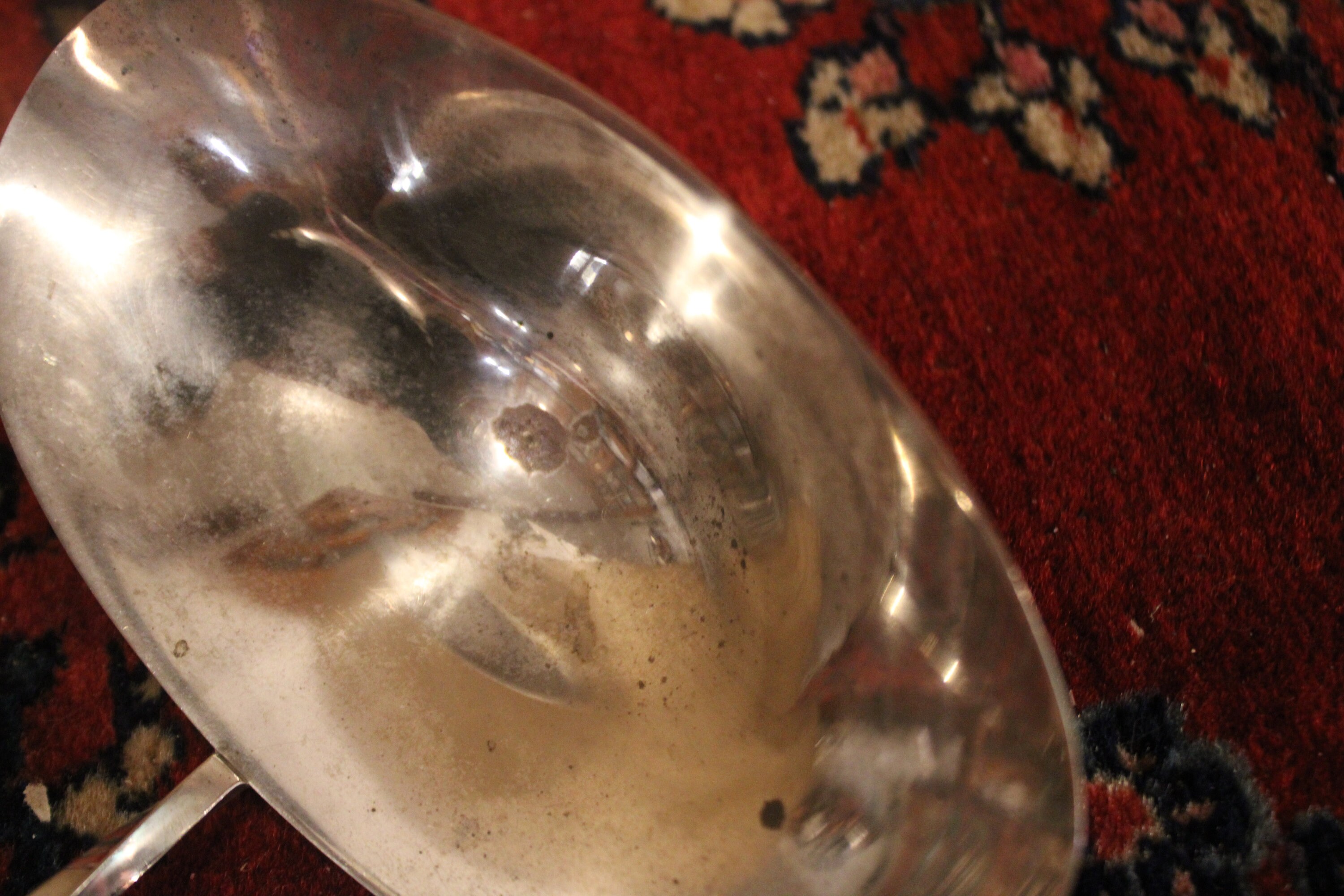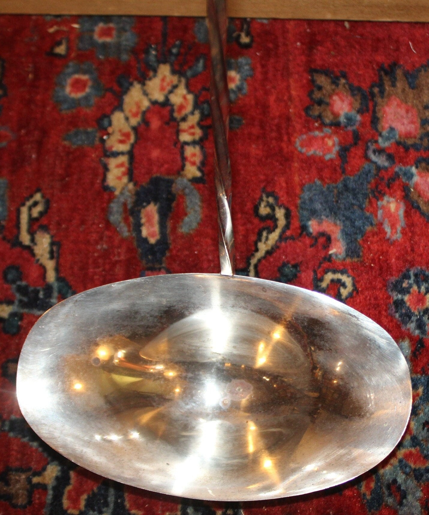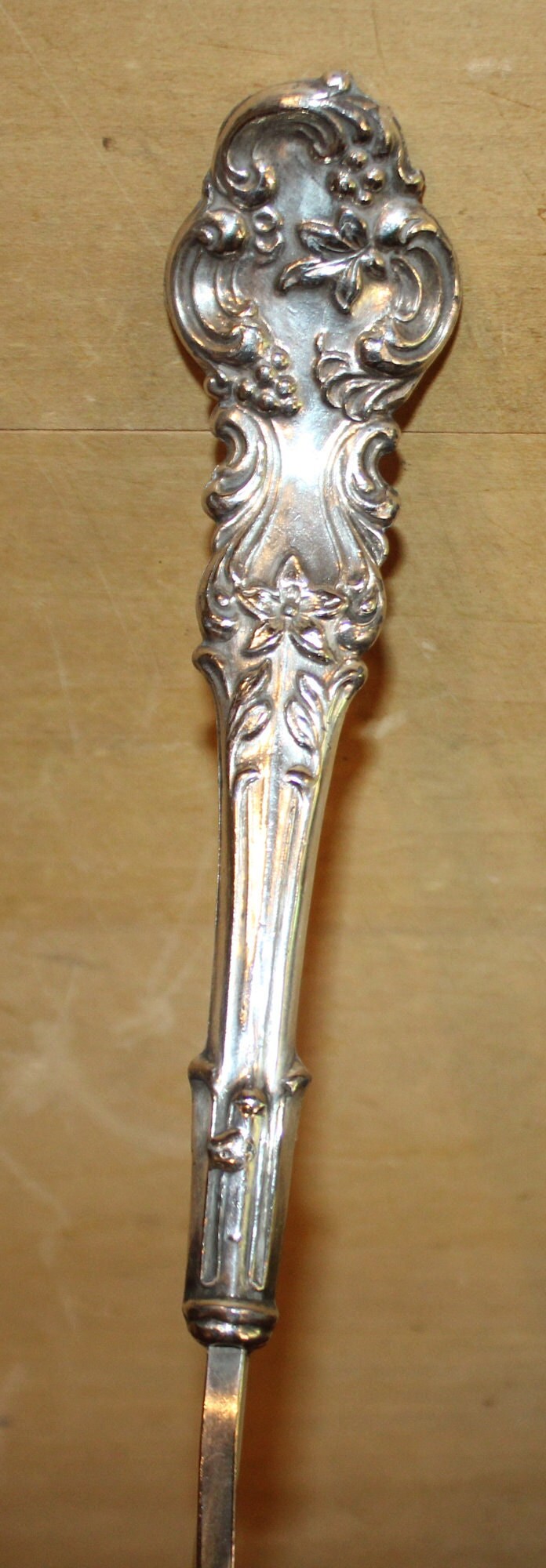 This Silverplated Long-handled Ladle made by Towle would be great to have on hand at your next big event! It is not only gorgeous with its floral handle and swirled stem- it's very functional and great to use in a punch bowl! It measures 16.25" long with an oval bowl that measures 5.75" x 3.25"x 1.5" deep. The bottom of the bowl does have some plate loss which can be seen in the photos- but it is still very gorgeous- and it is NOT monogrammed. Please message us if you have any questions- Thanks for looking!