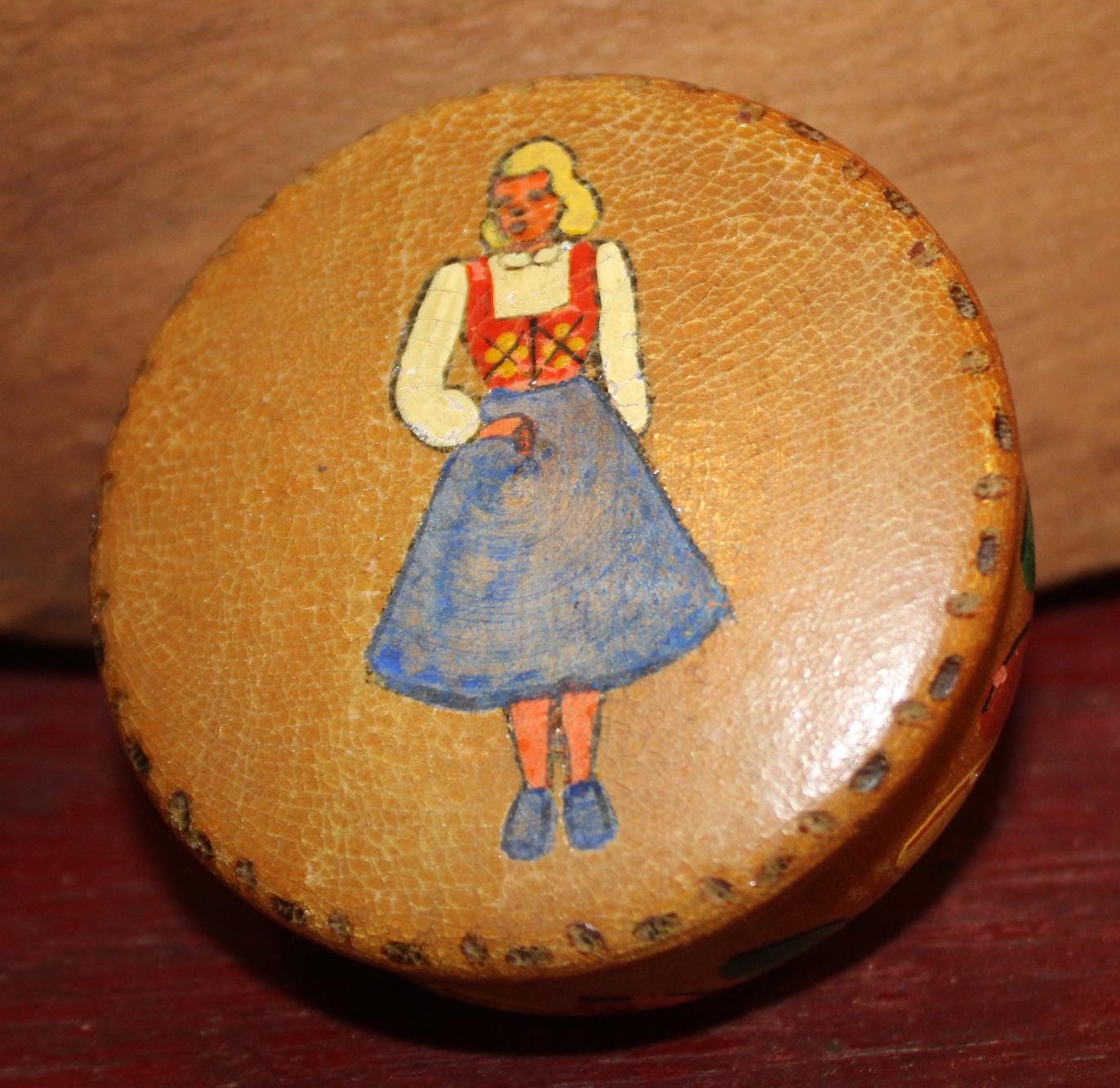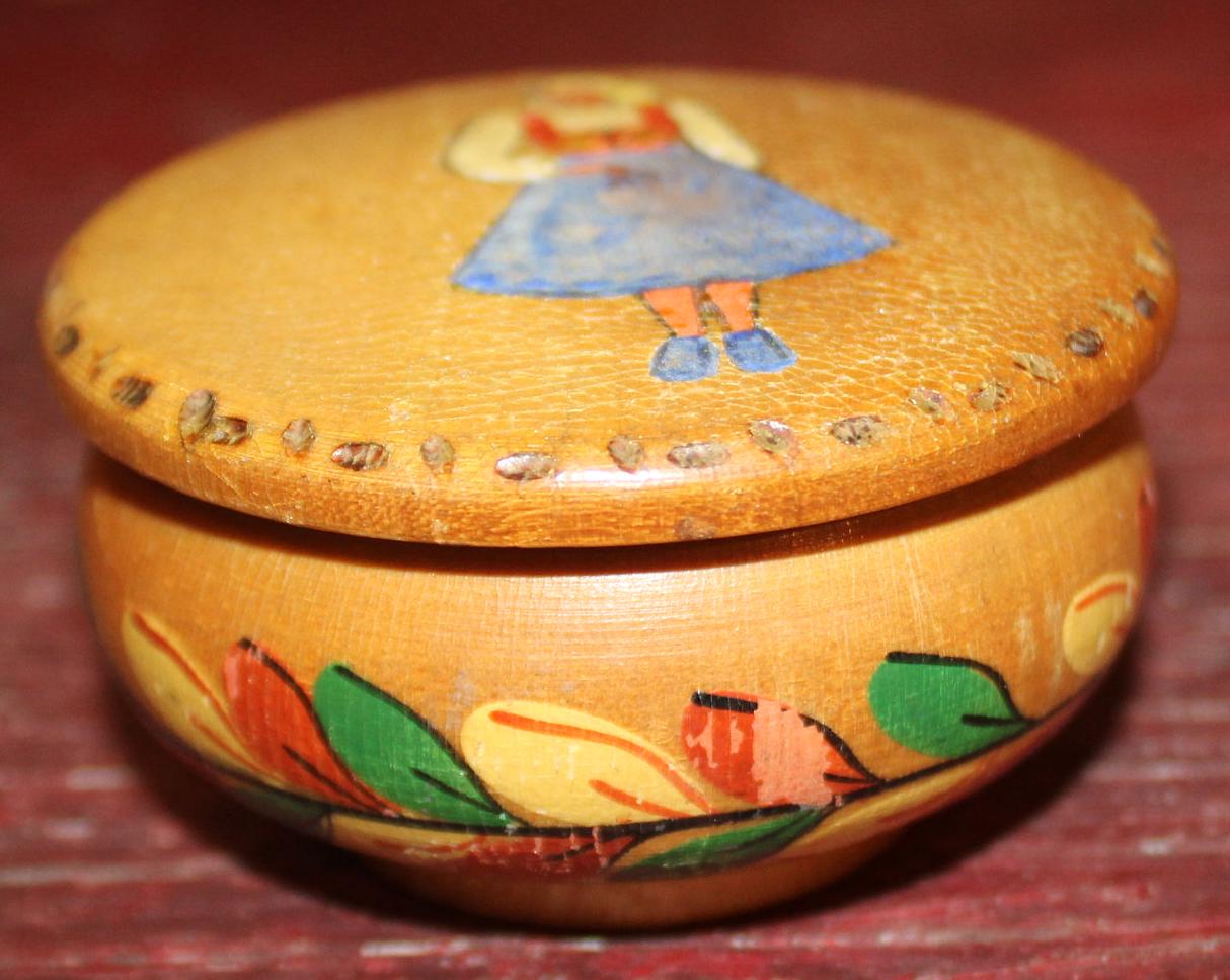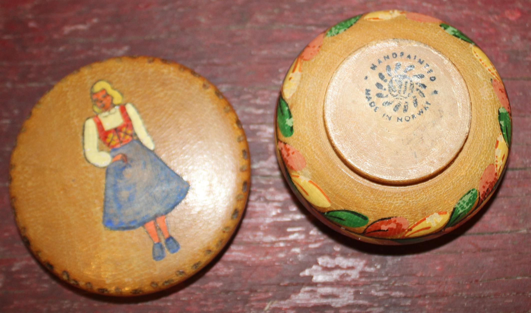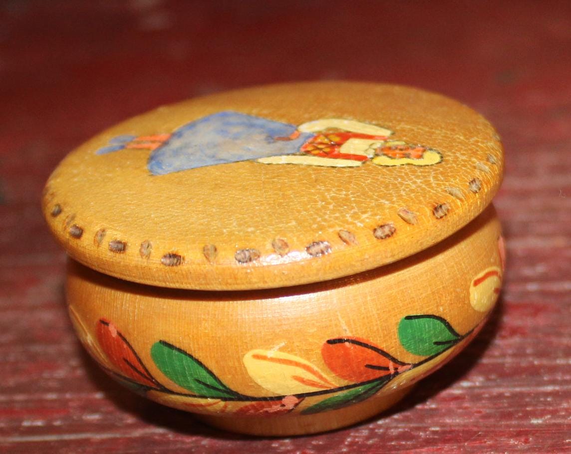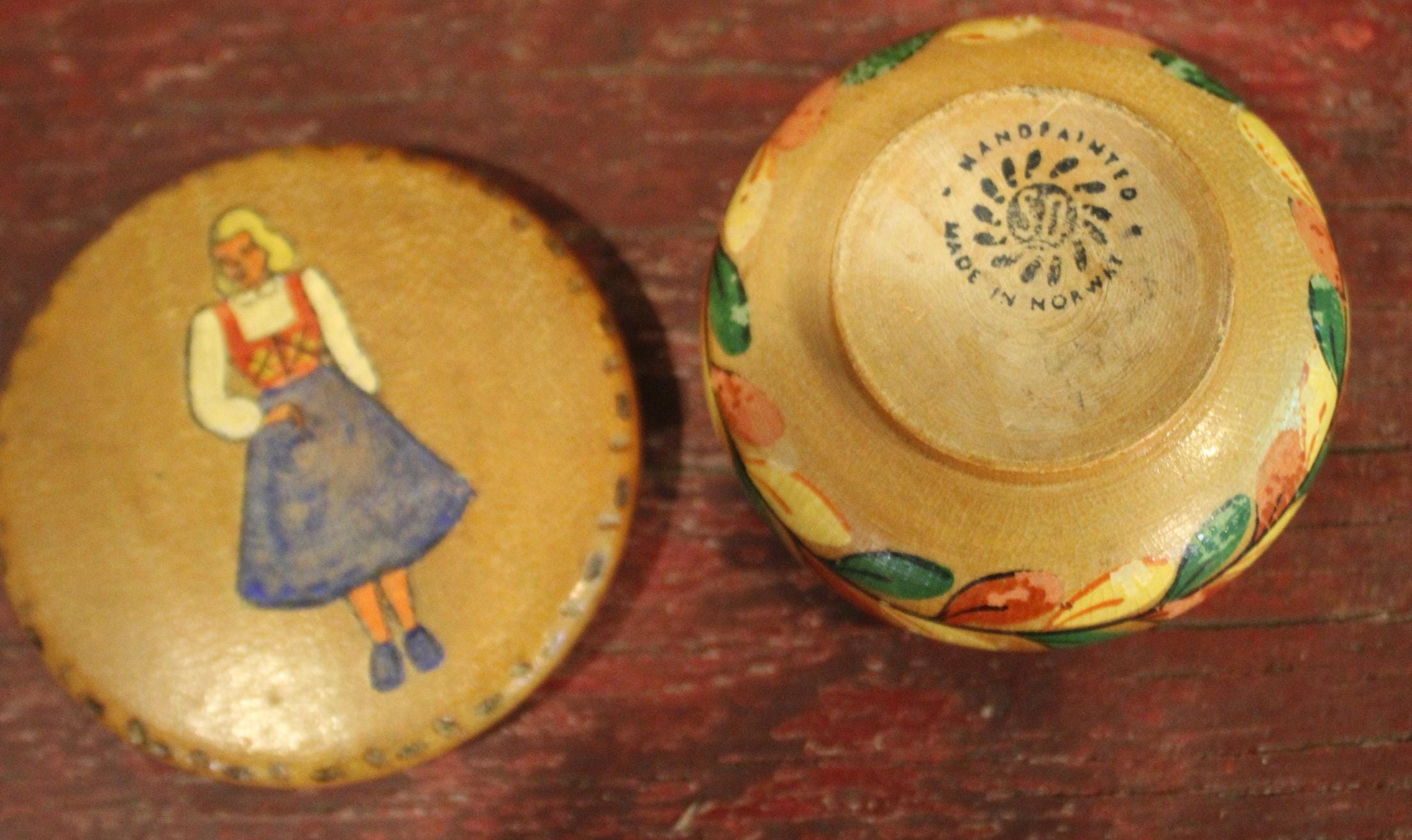 Vintage Handpainted Wooden Trinket Dish-made in Norway-Rustic/Farm house/Cottage