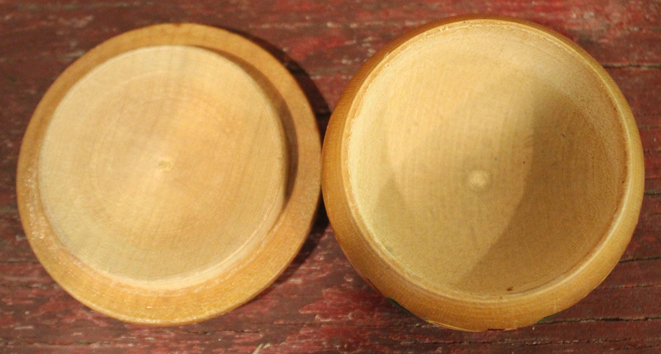 This Vintage Handpainted Wooden Trinket Dish would be perfect displayed in your farmhouse. Its handpainted vibrant colors have a folkarty feel that is sure to brighten any room! It is 2.75" in diameter x 1.5" tall. Please message us if you have any questions- Thanks for looking!