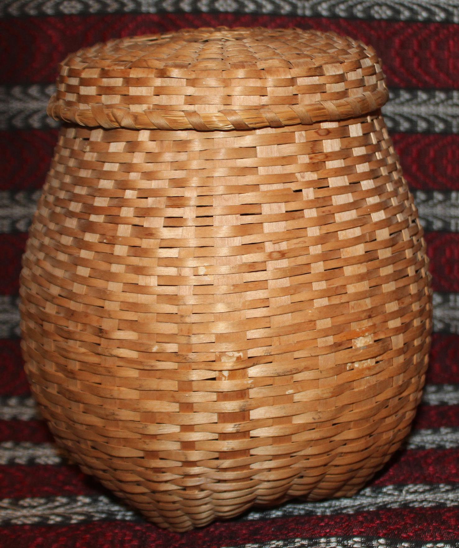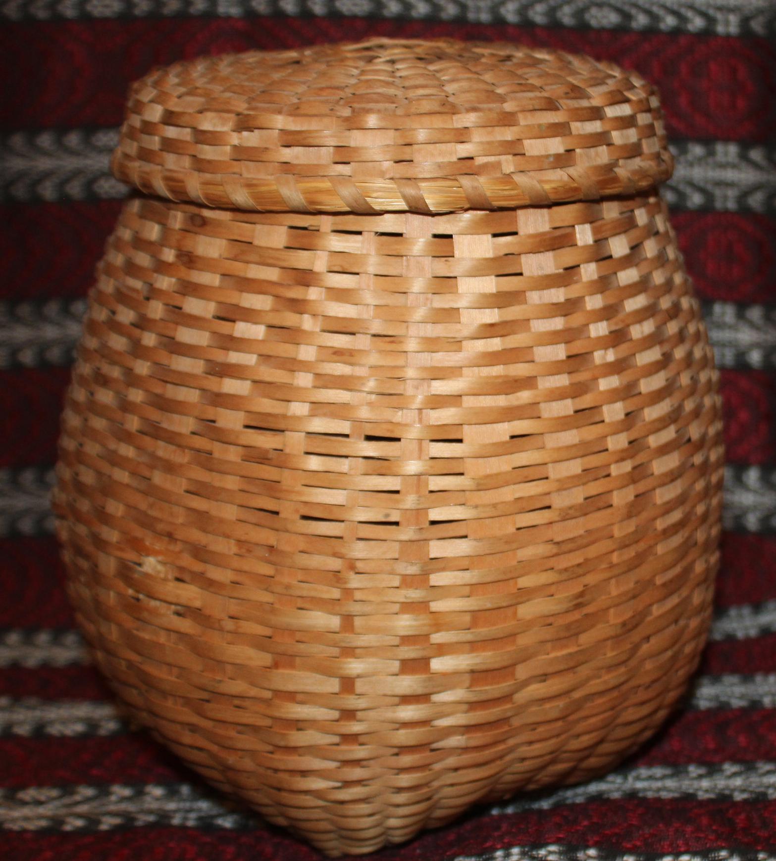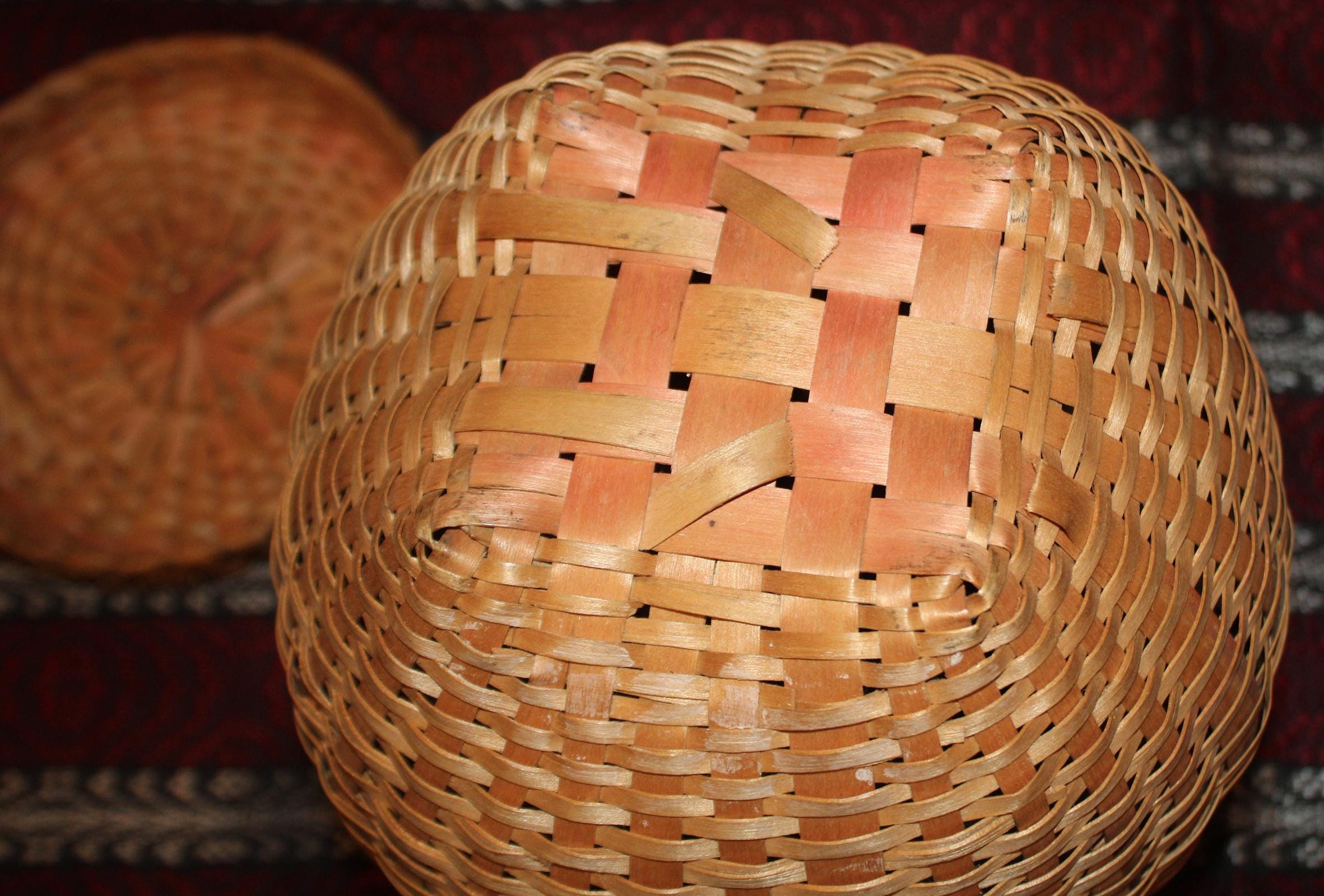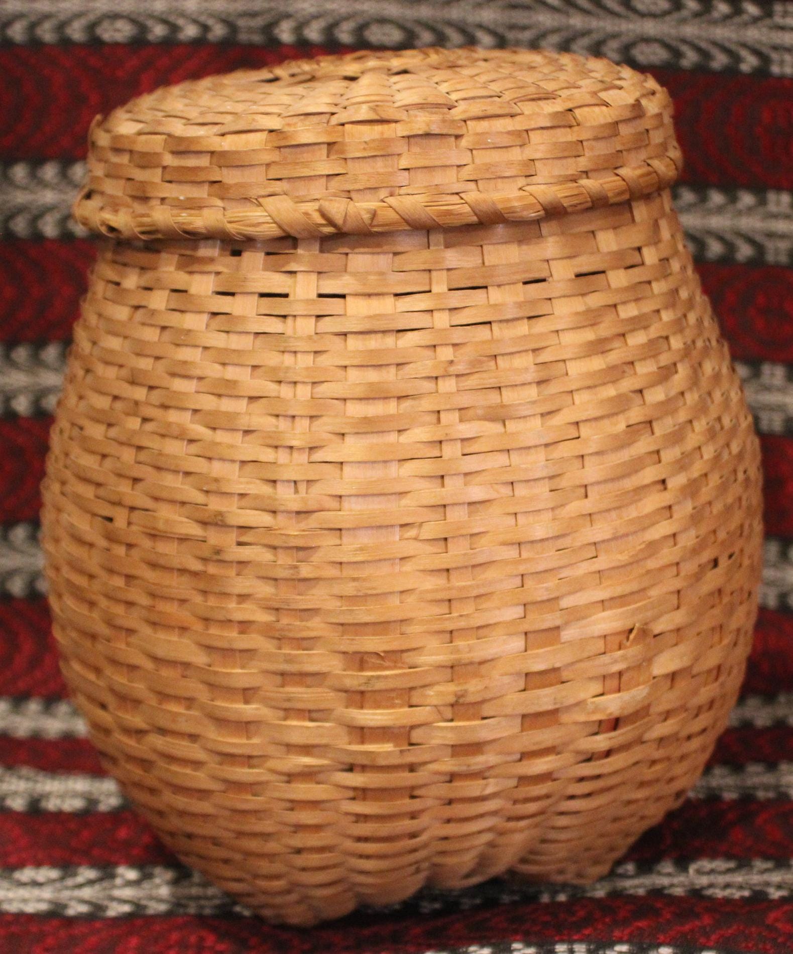 Antique Hand Woven Splint Basket with Lid – Farmhouse Primitive Decor