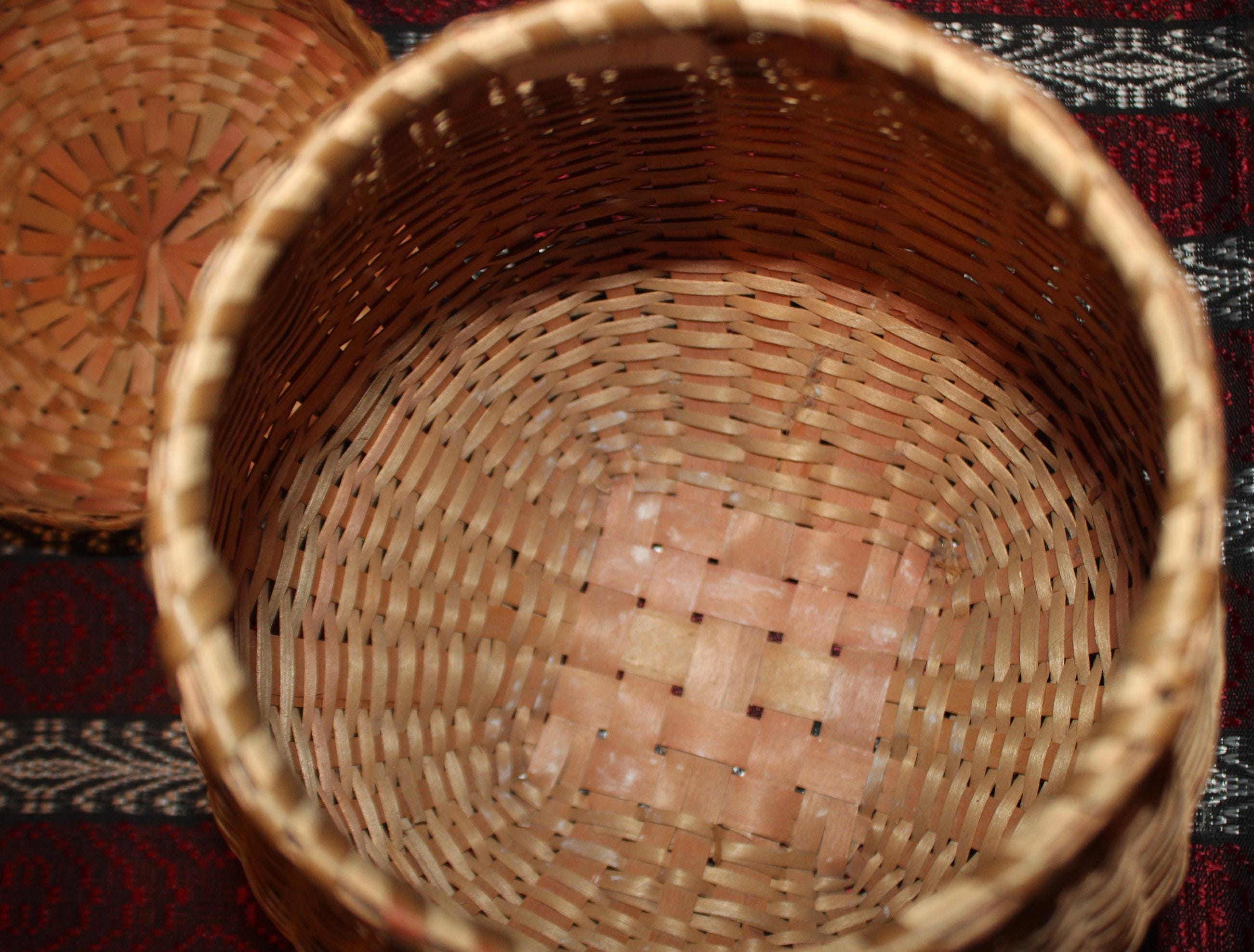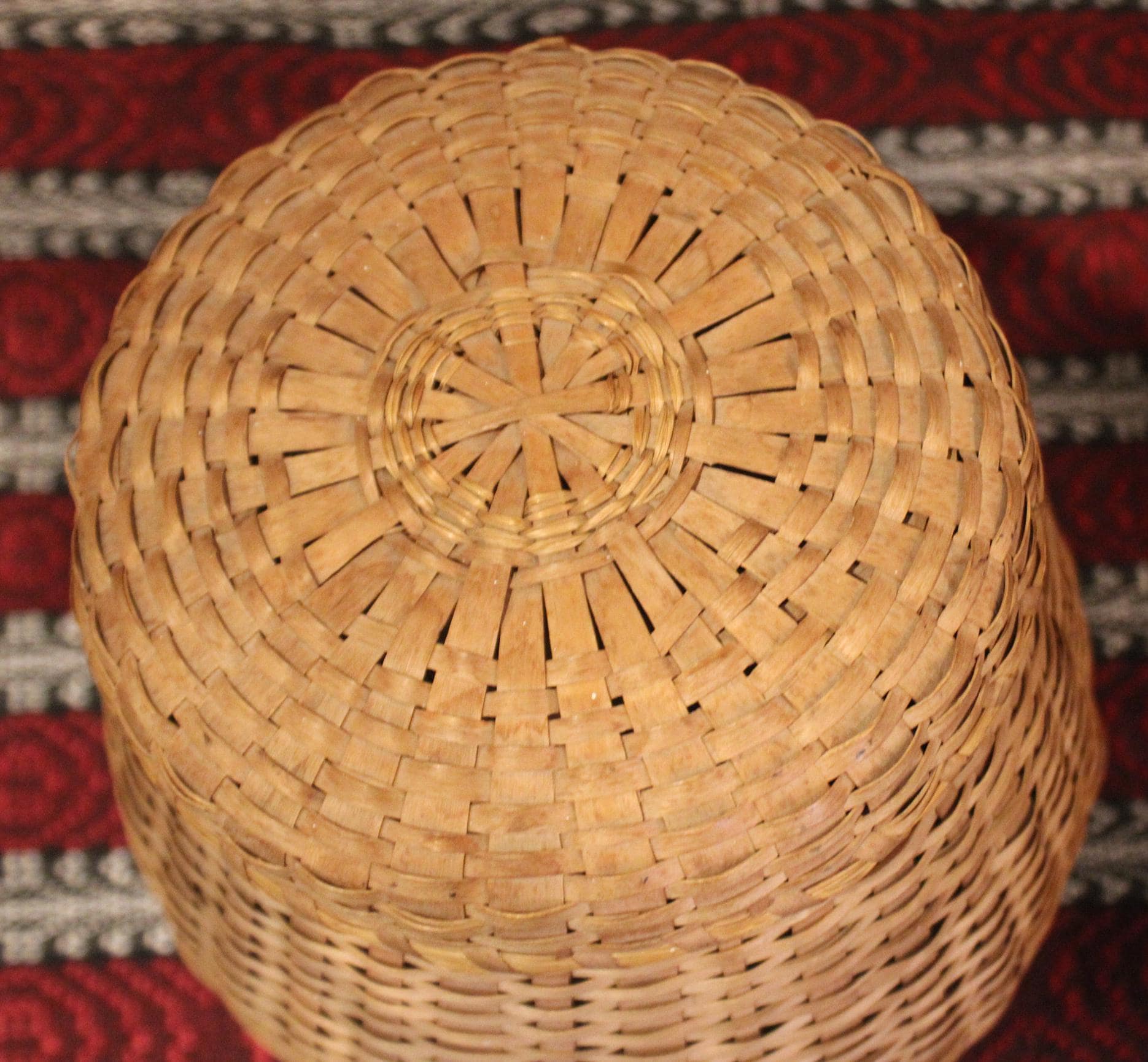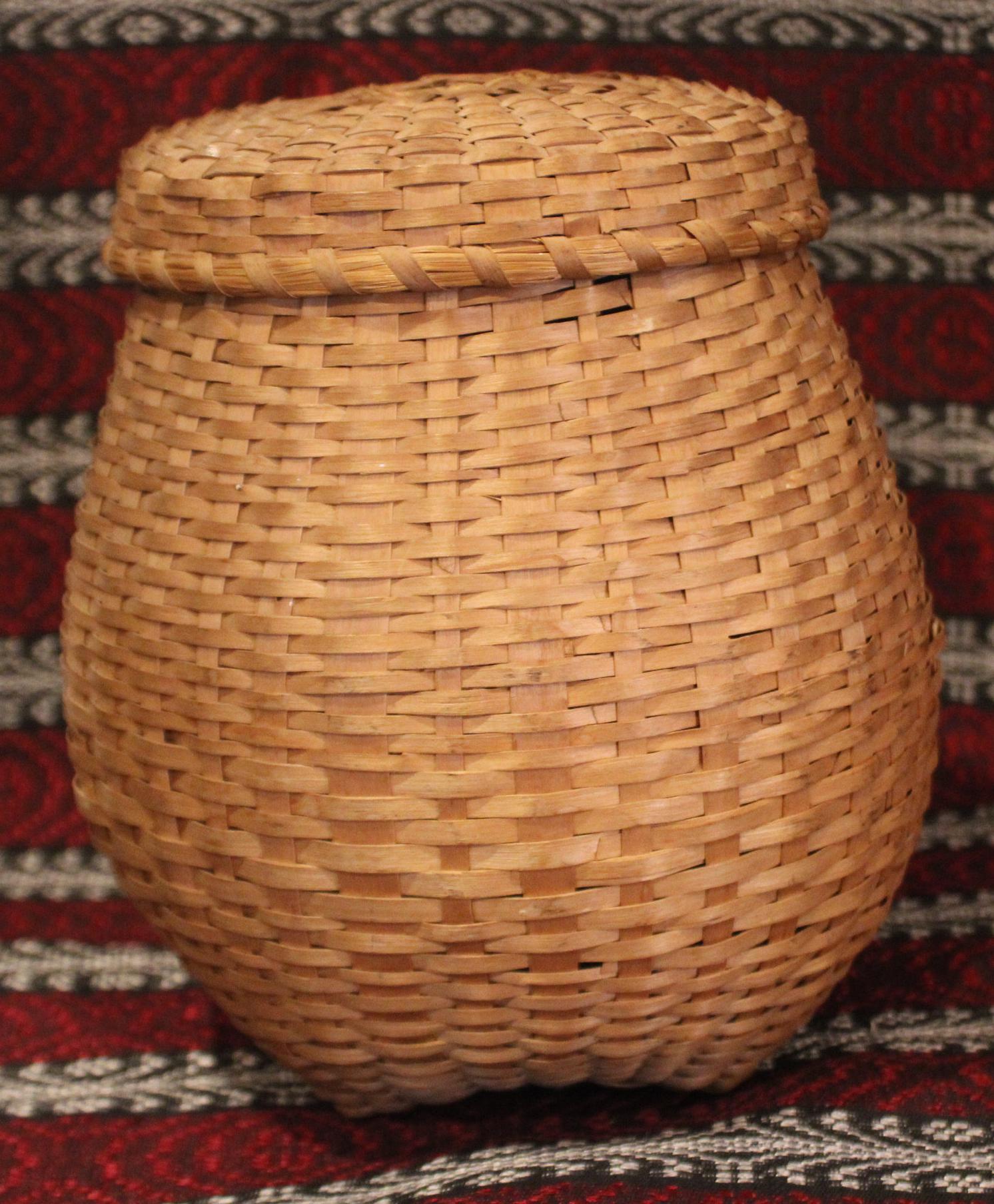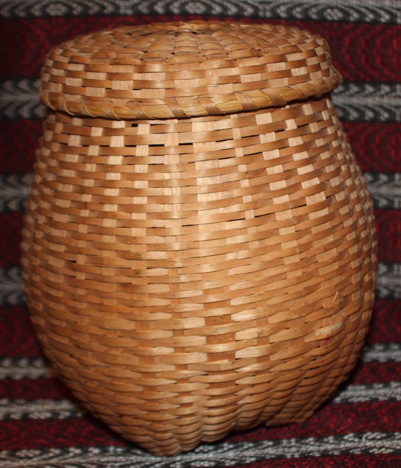 Antique Hand Woven Splint Basket with Lid – Farmhouse Primitive Decor