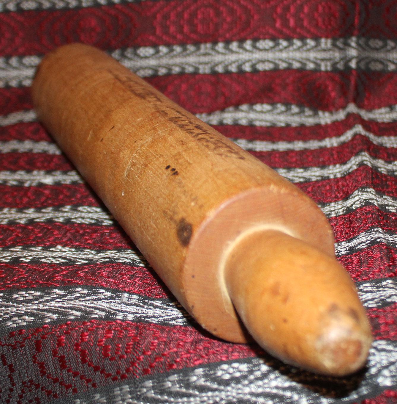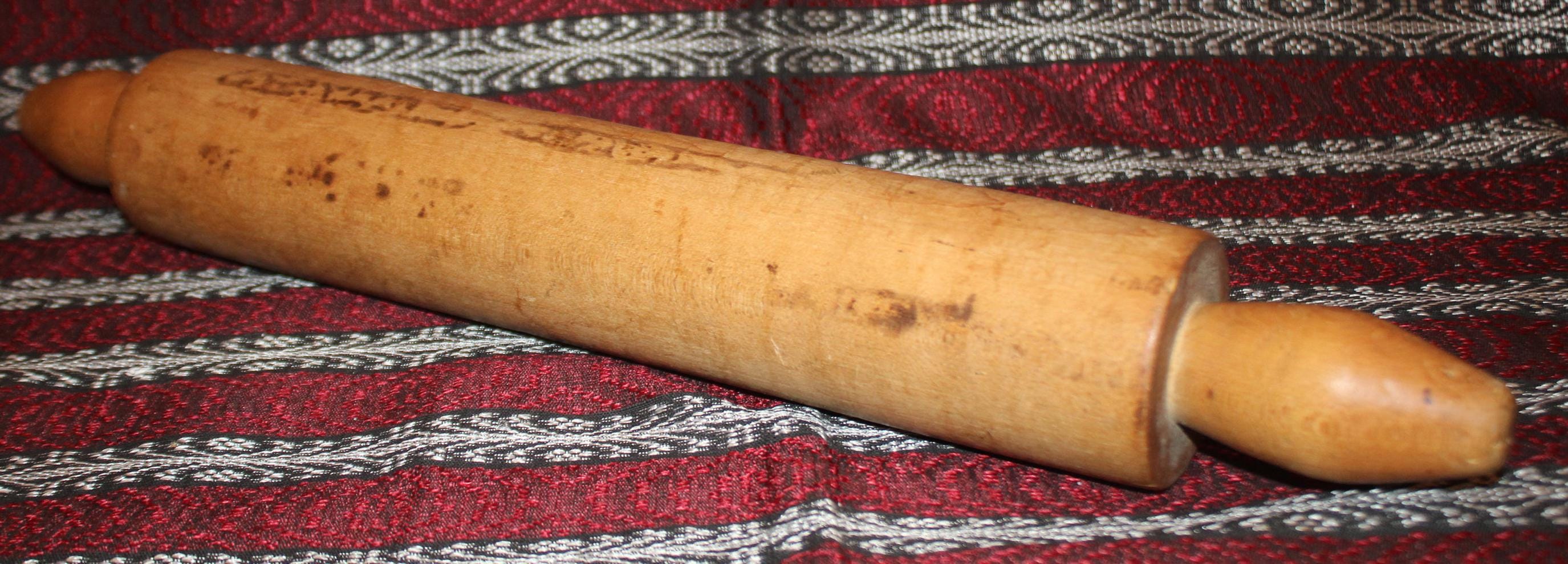 This Wonderful Large Antique Maple One-Piece Rolling Pin would be a great gift for the pie baker in your life -maybe they will even make you a pie in return- ;)! It is 20.5" from tip to tip; the barrel is 14" long with a 2.75" diameter. We believe it to be lathe turned prior to 1920; it has a warm rich patina and is turned from one piece of maple. Please message us if you have any questions- Thanks for looking!