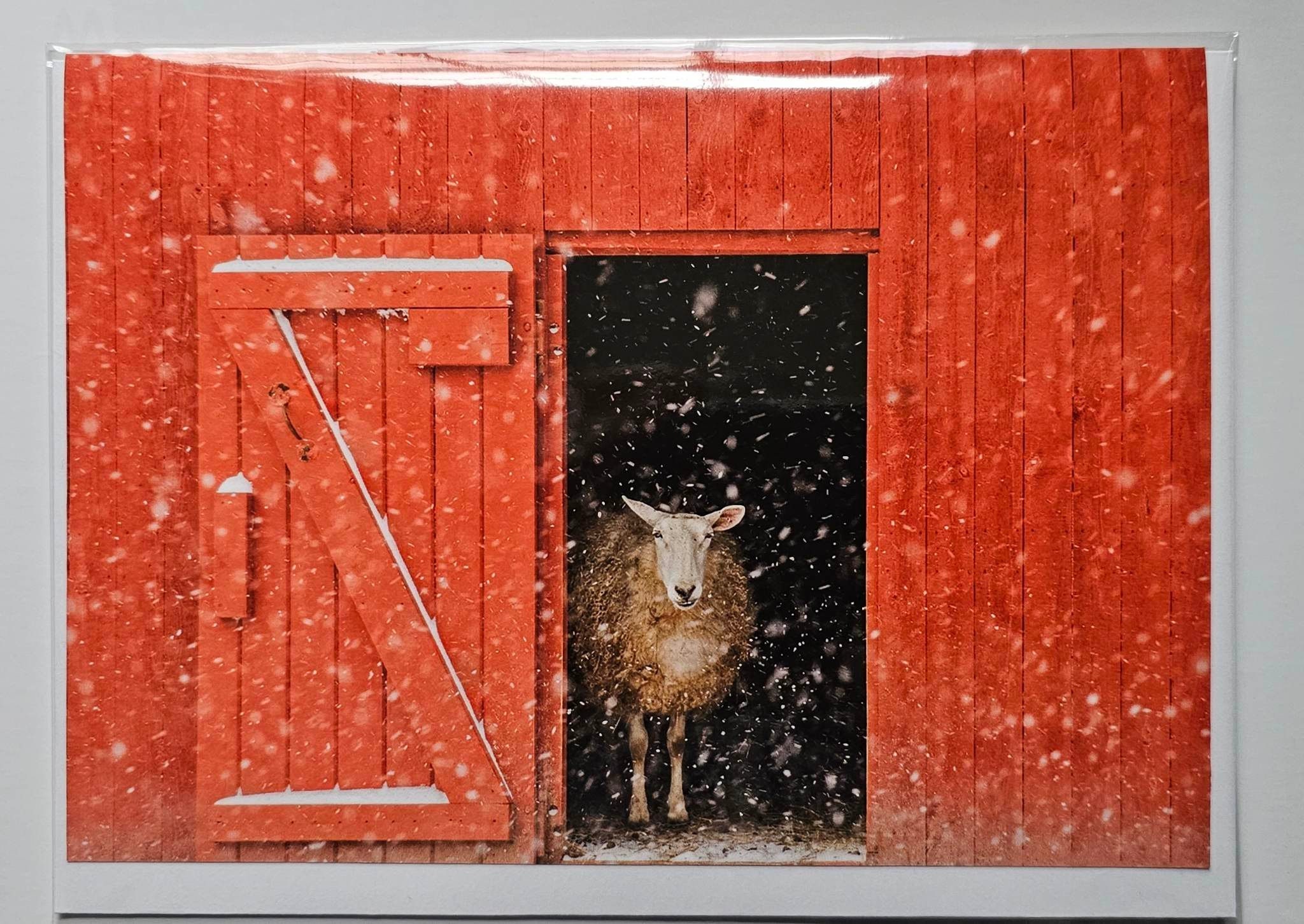 Vermont Photography Greeting Cards – Red Barn, Sheep in Snow, Set of 10