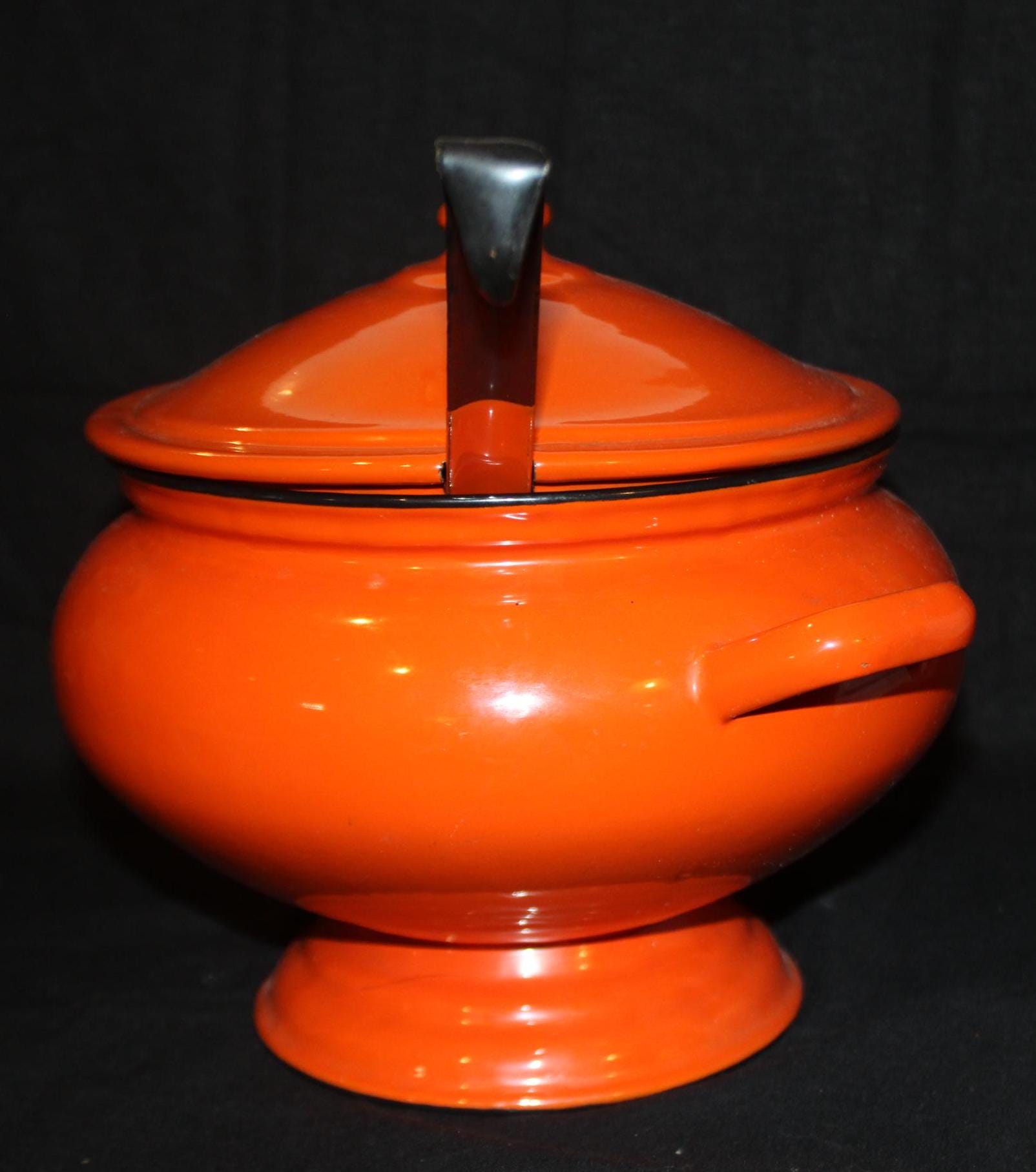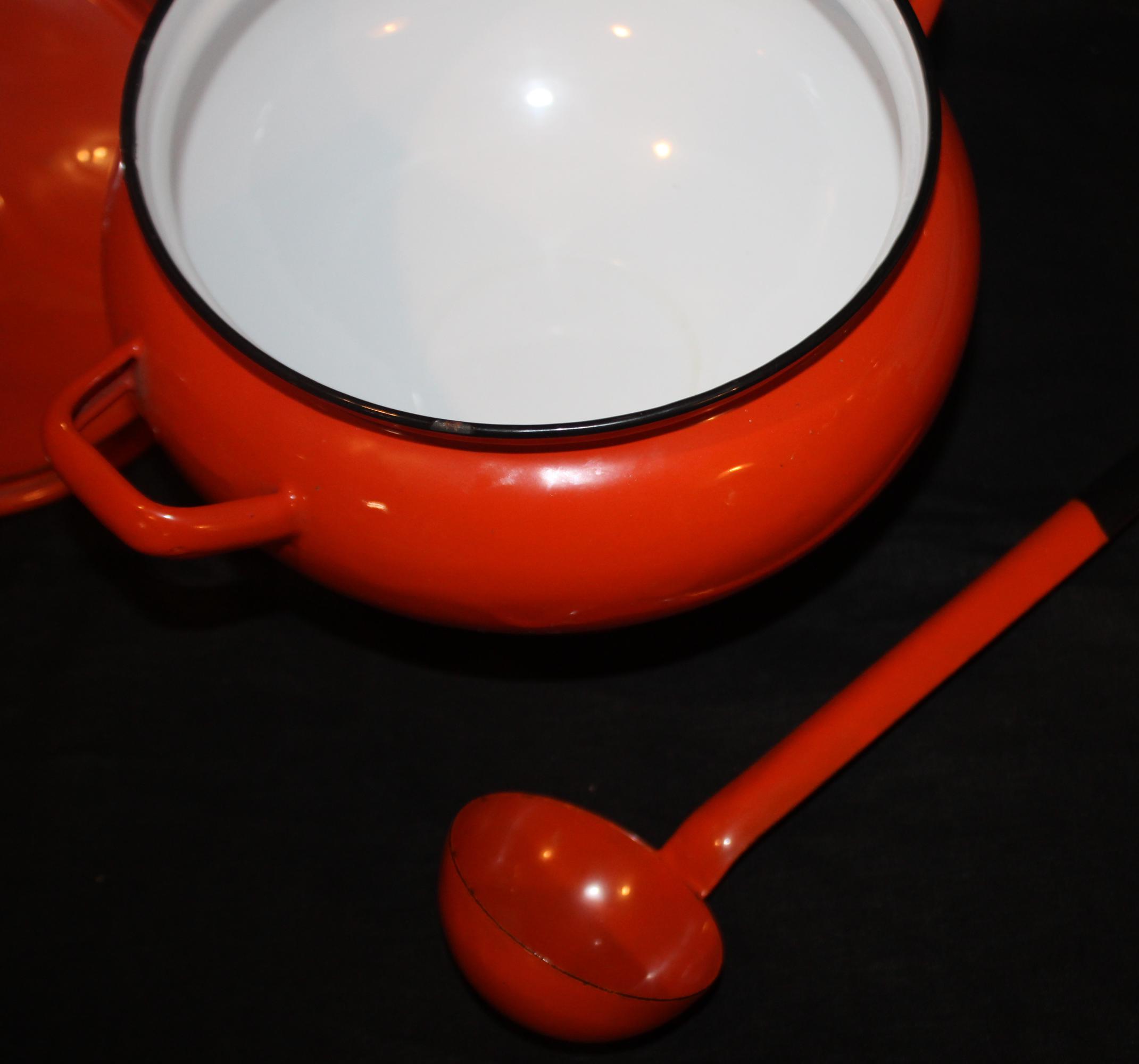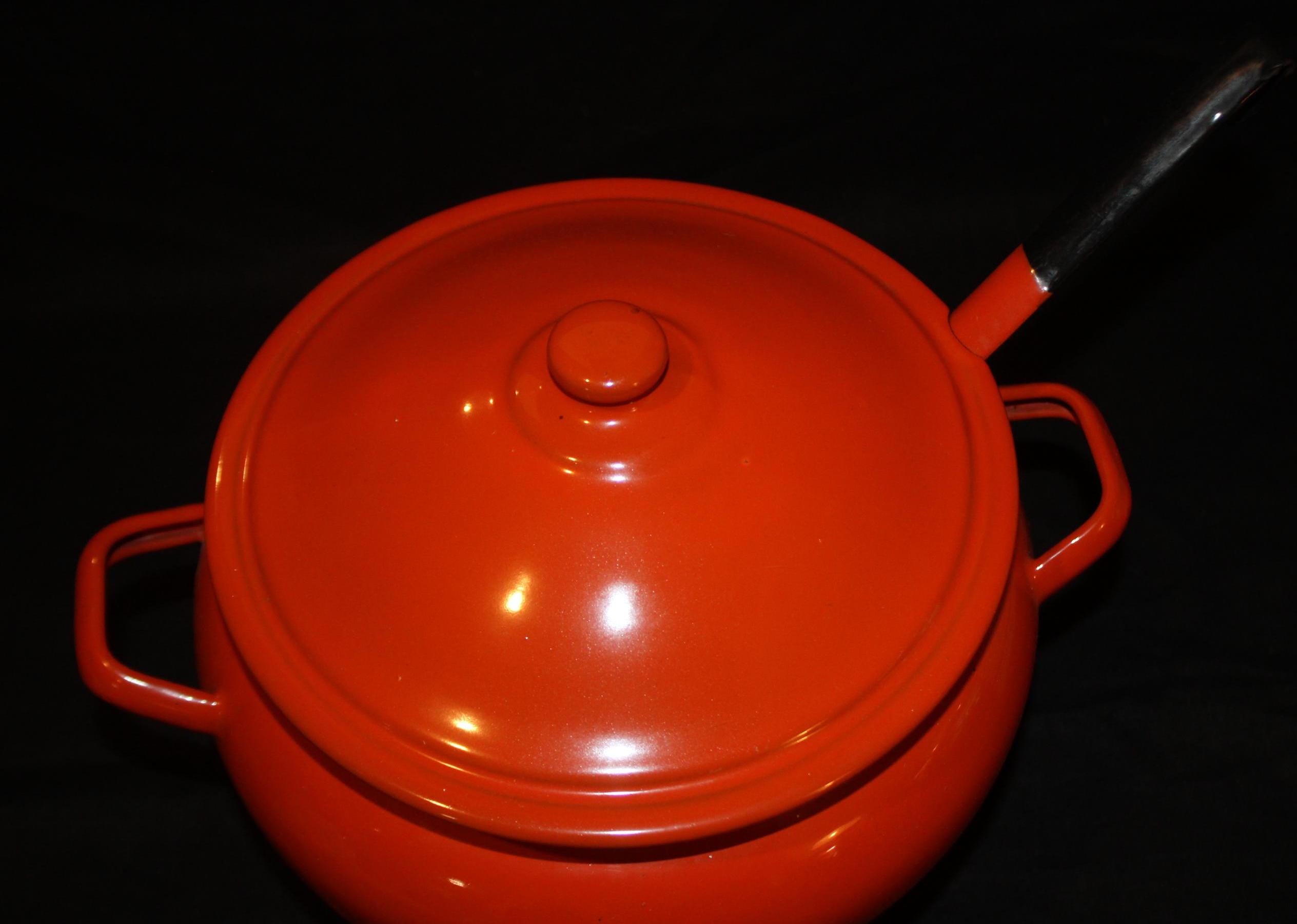 Wonderful Enamelware Orange Soup Tureen with Ladle- Halloween/Soup/Fall Decor