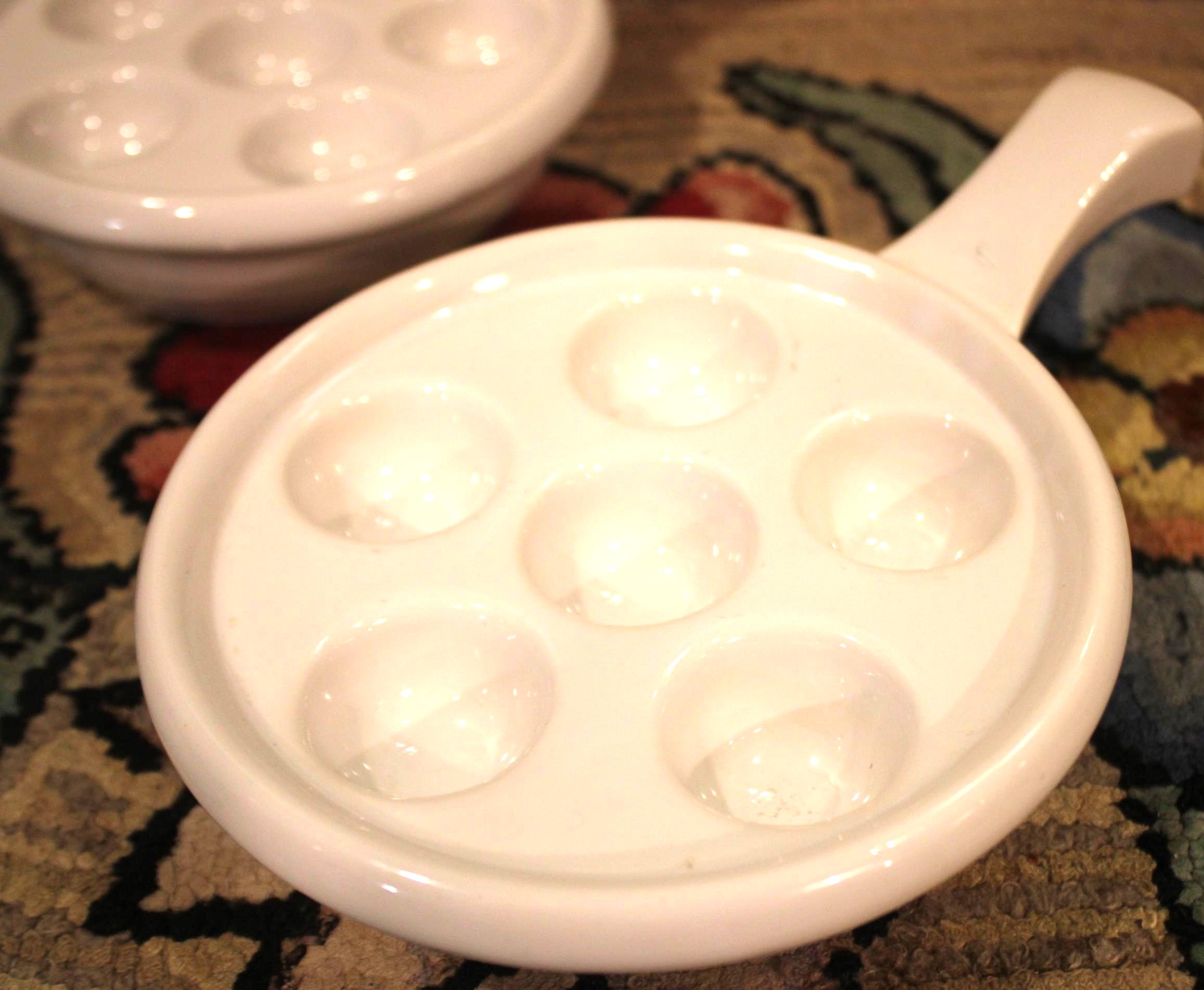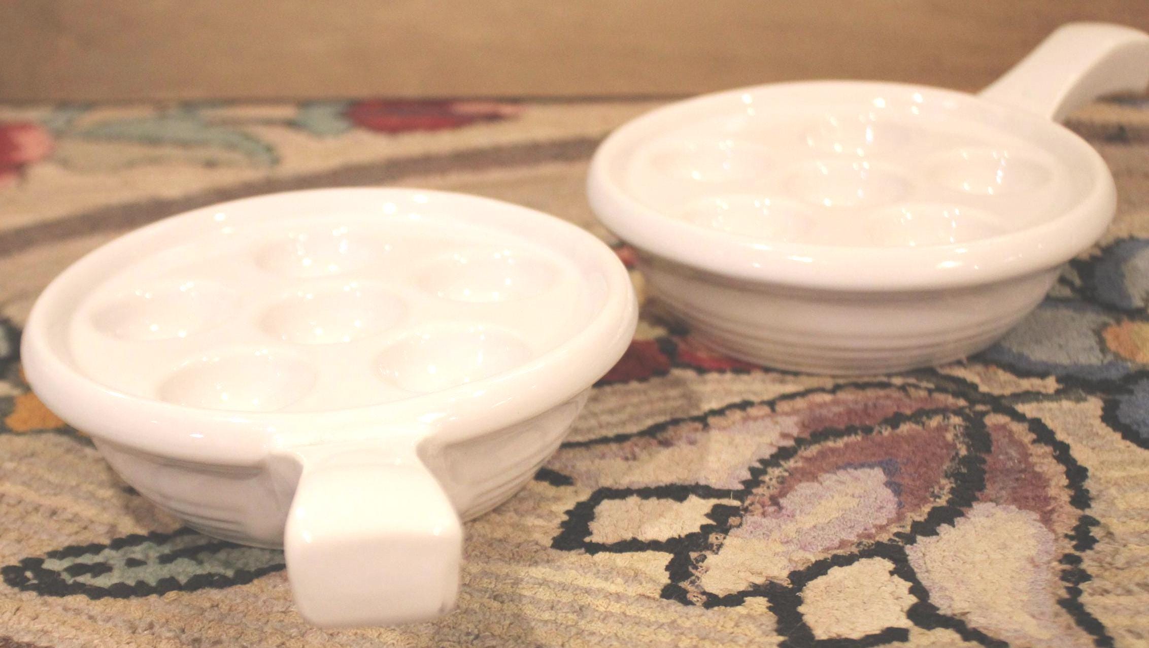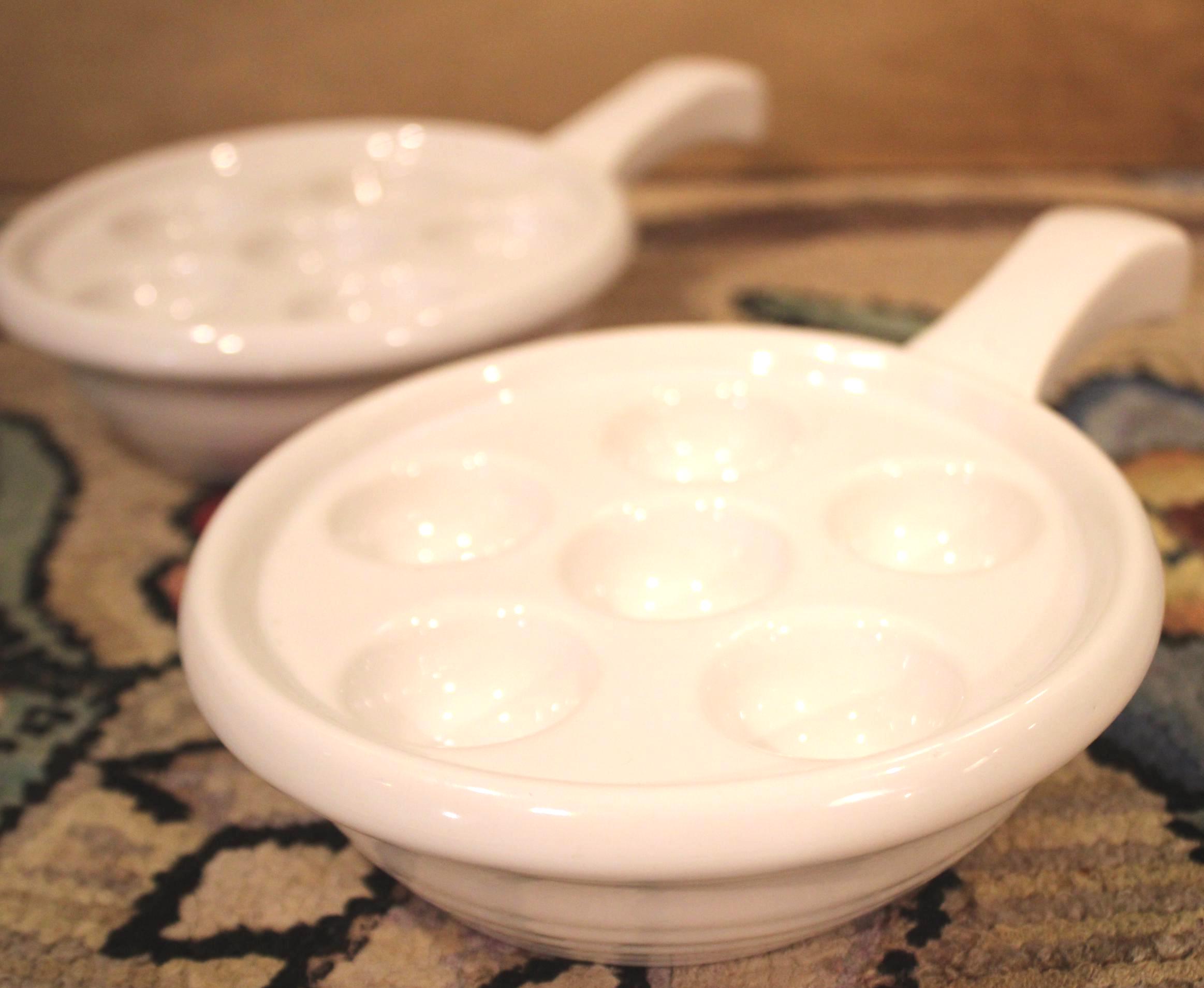 Set of Two Heavy White Escargot/Stuffed Mushroom Dishes- Fine Dining/Elegant/French Farmhouse