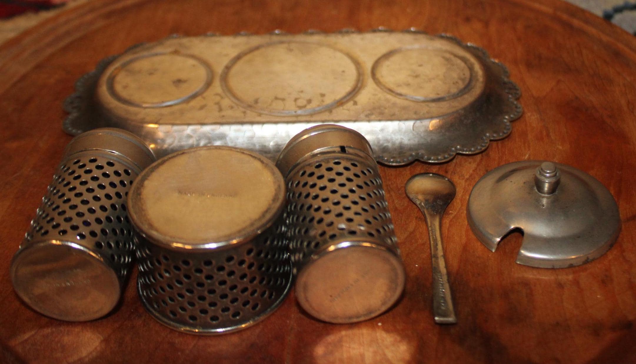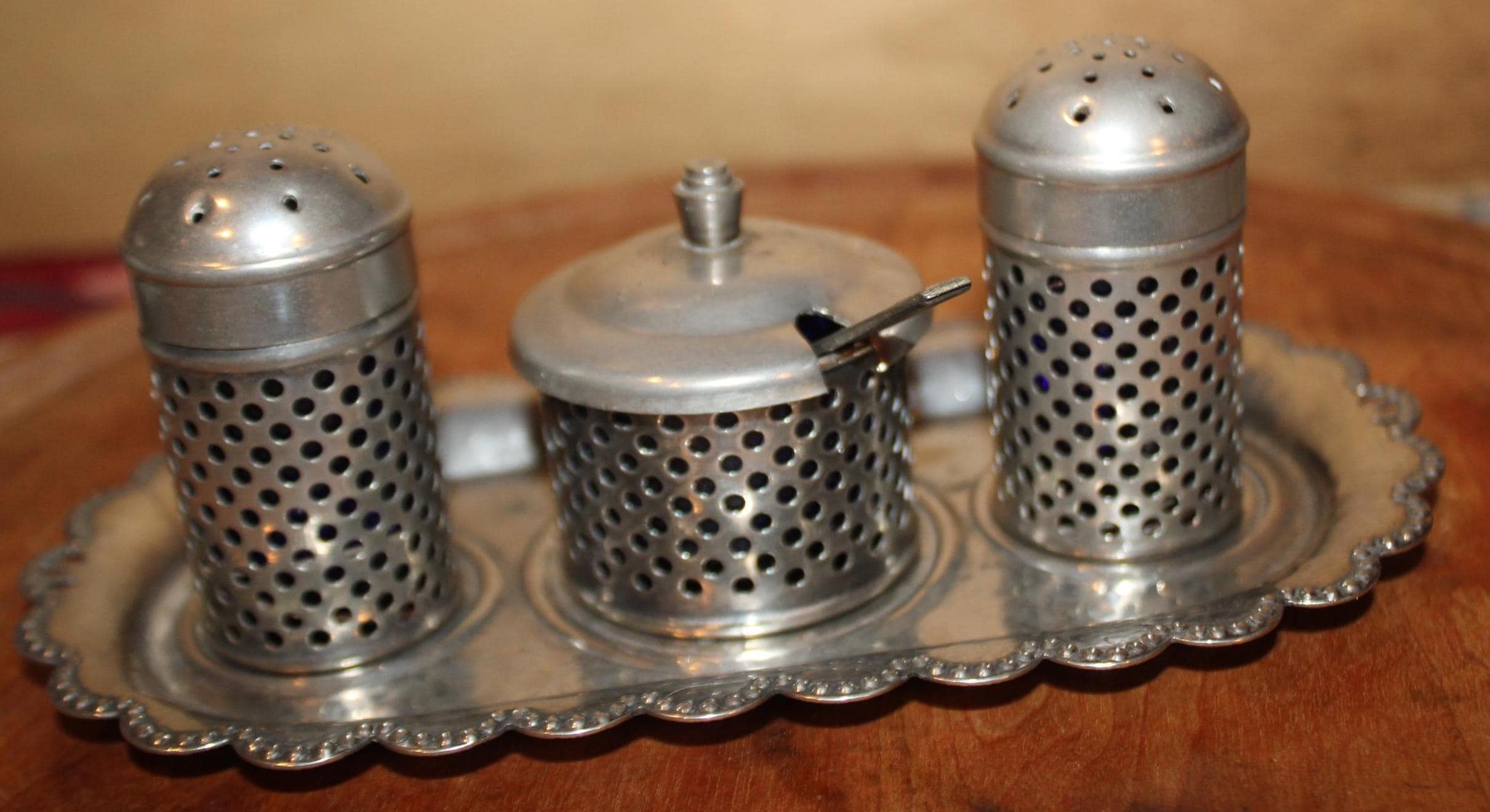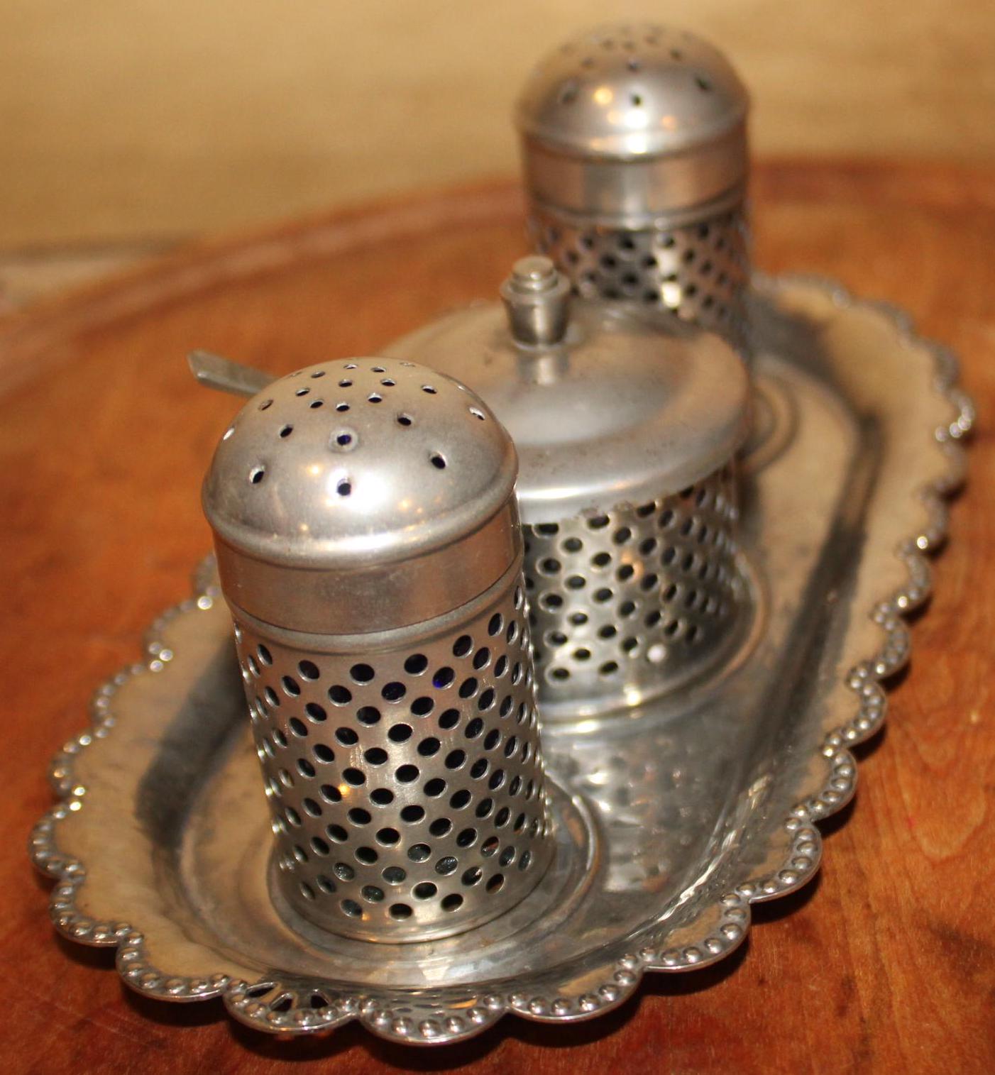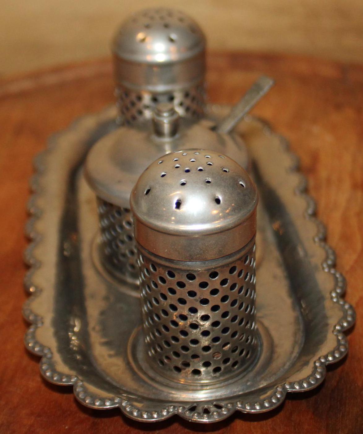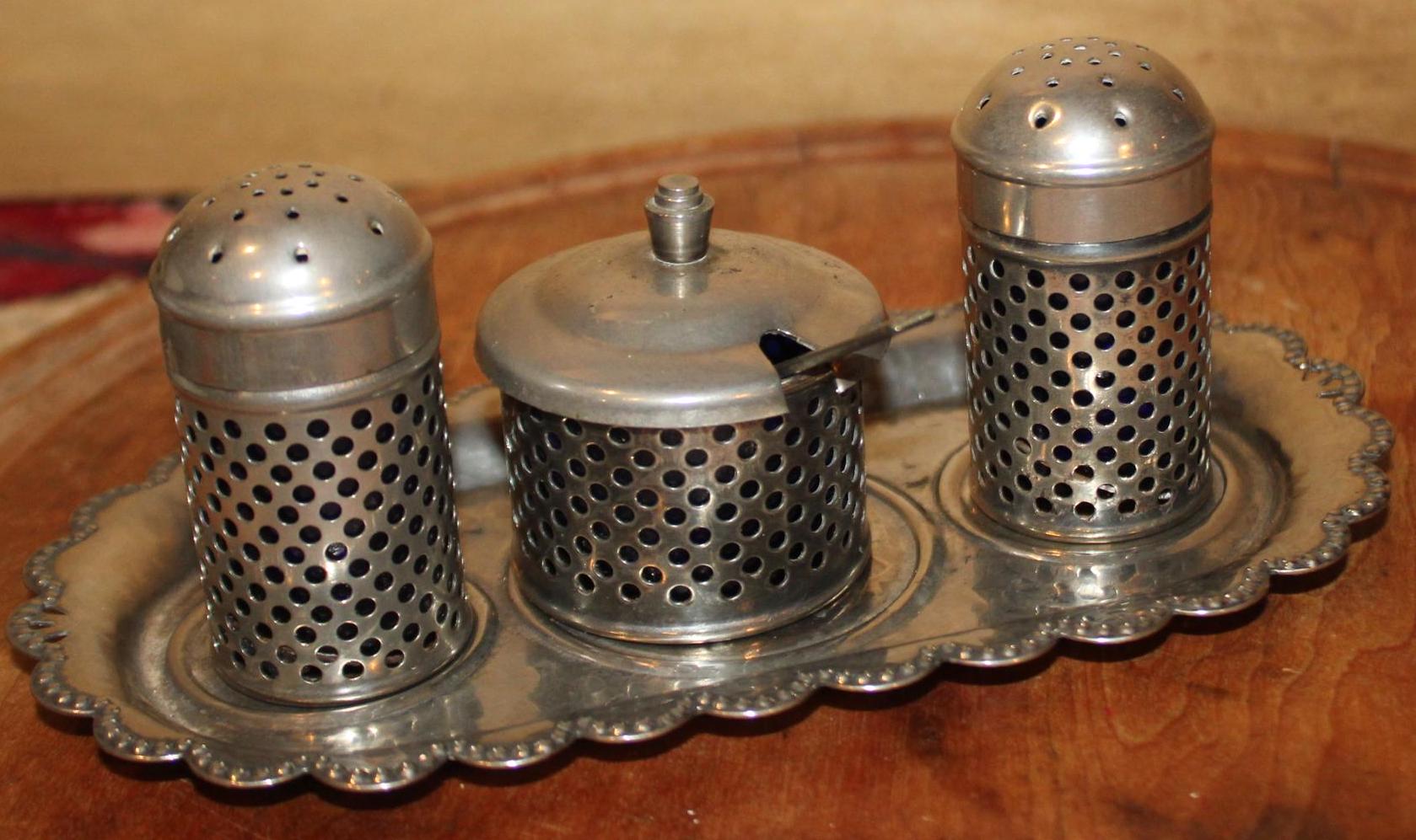 Wonderful Sheffield Silverplate Salt, Pepper, and Jam/Mustard Pot- Made in England