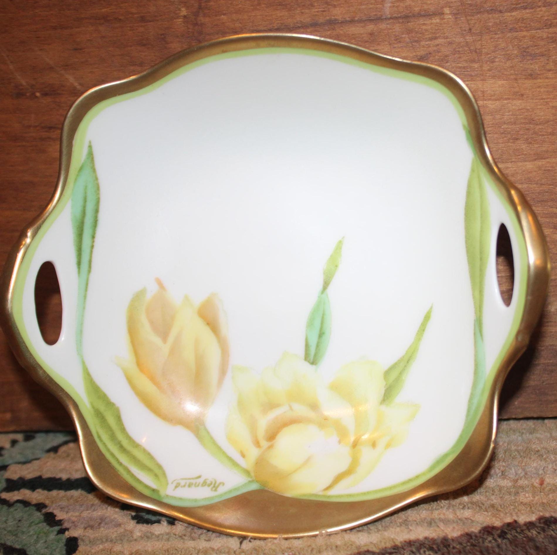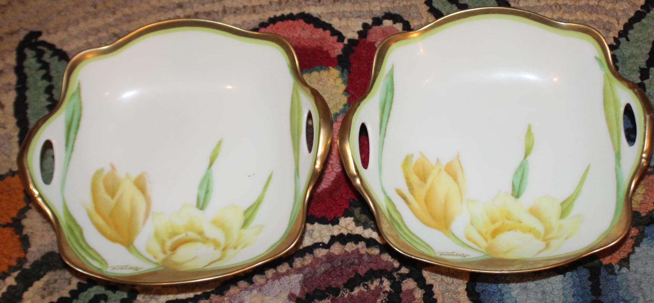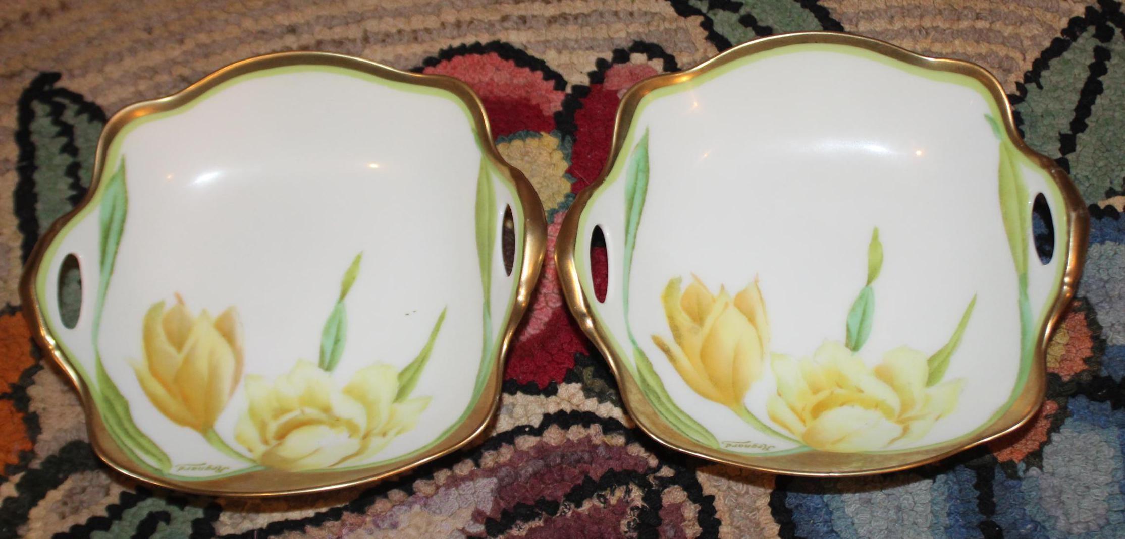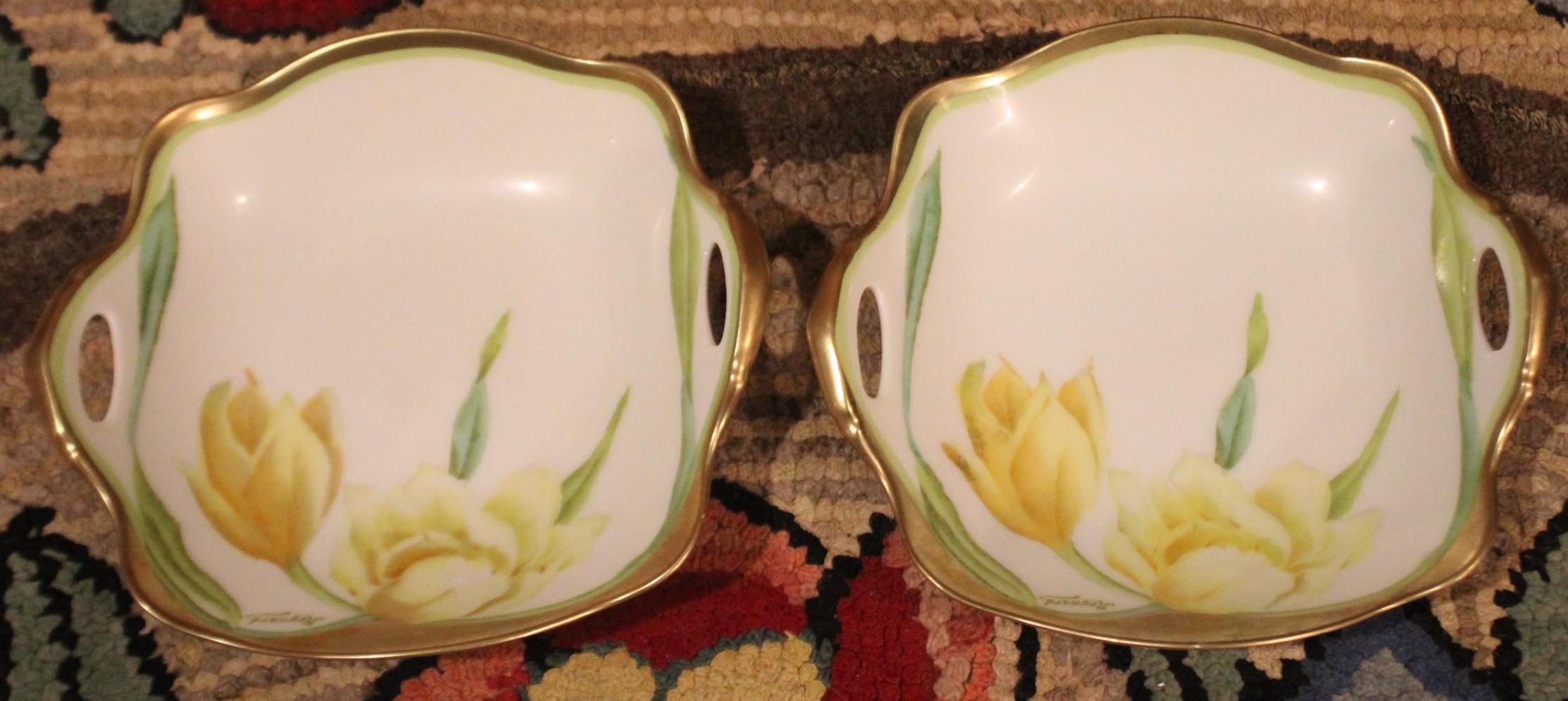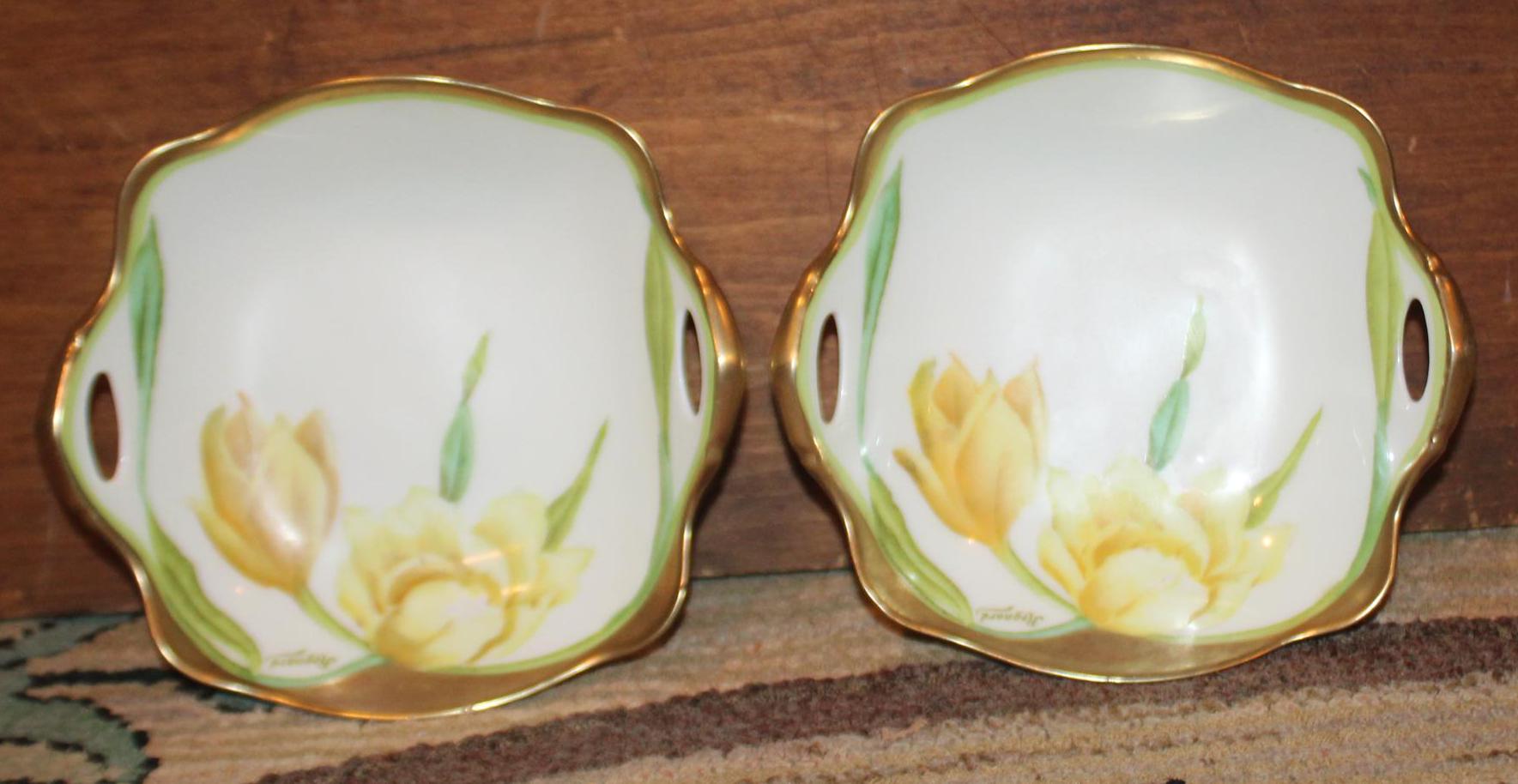 Bavaria Hand Painted Porcelain Trinket Dishes – Tulips & Daffodils, Signed Regnard