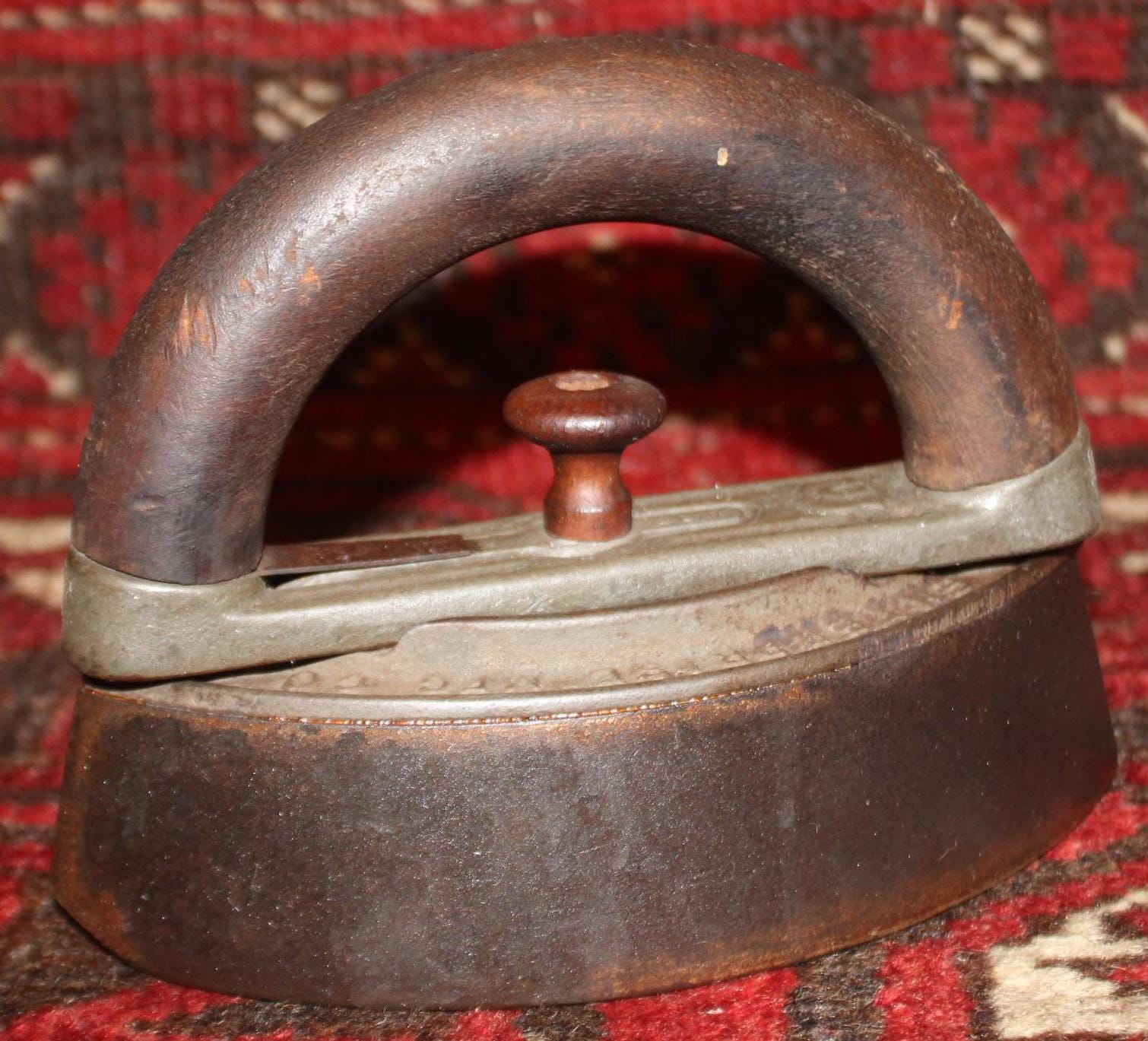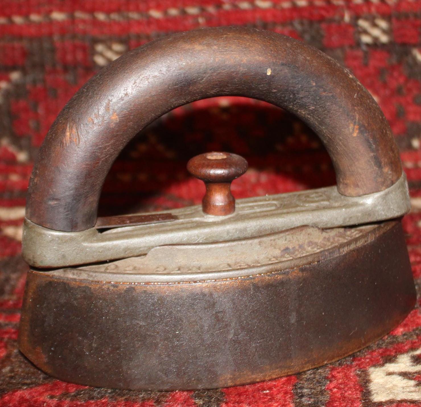 This Antique Enterprise MFG. Co #50 Philadelphia USA Sad Iron would make a great doorstop or bookend in your country farmhouse (or use it as a sandwich press in your kitchen- we have- and it works great!!)! It measures 6.5"x 3" x 5" tall and weighs 5.2 lbs. The Iron is clean and in wonderful condition; and the wooden handle has a rich warm original patina. Please message us if you have any questions- Thanks for looking!