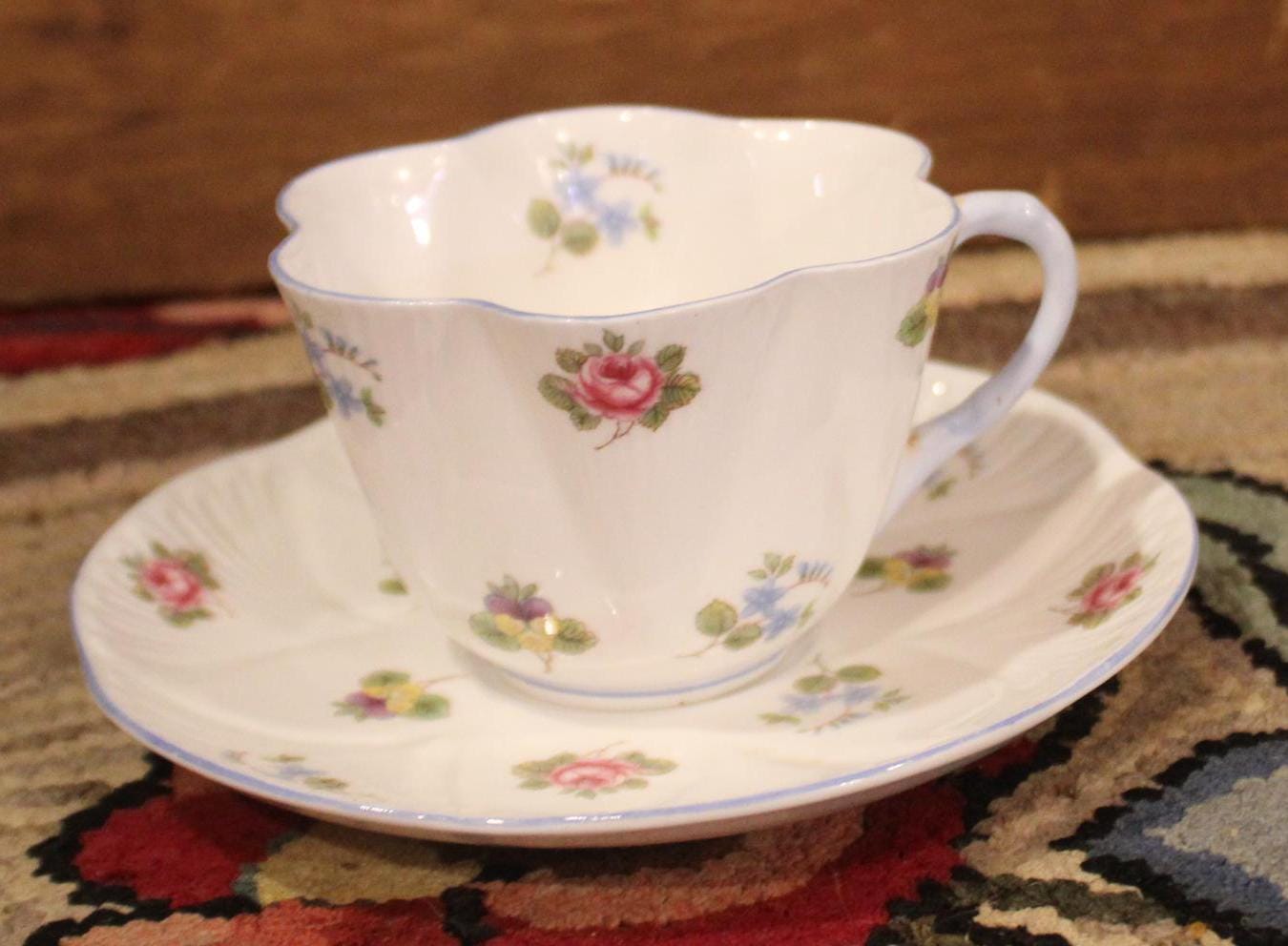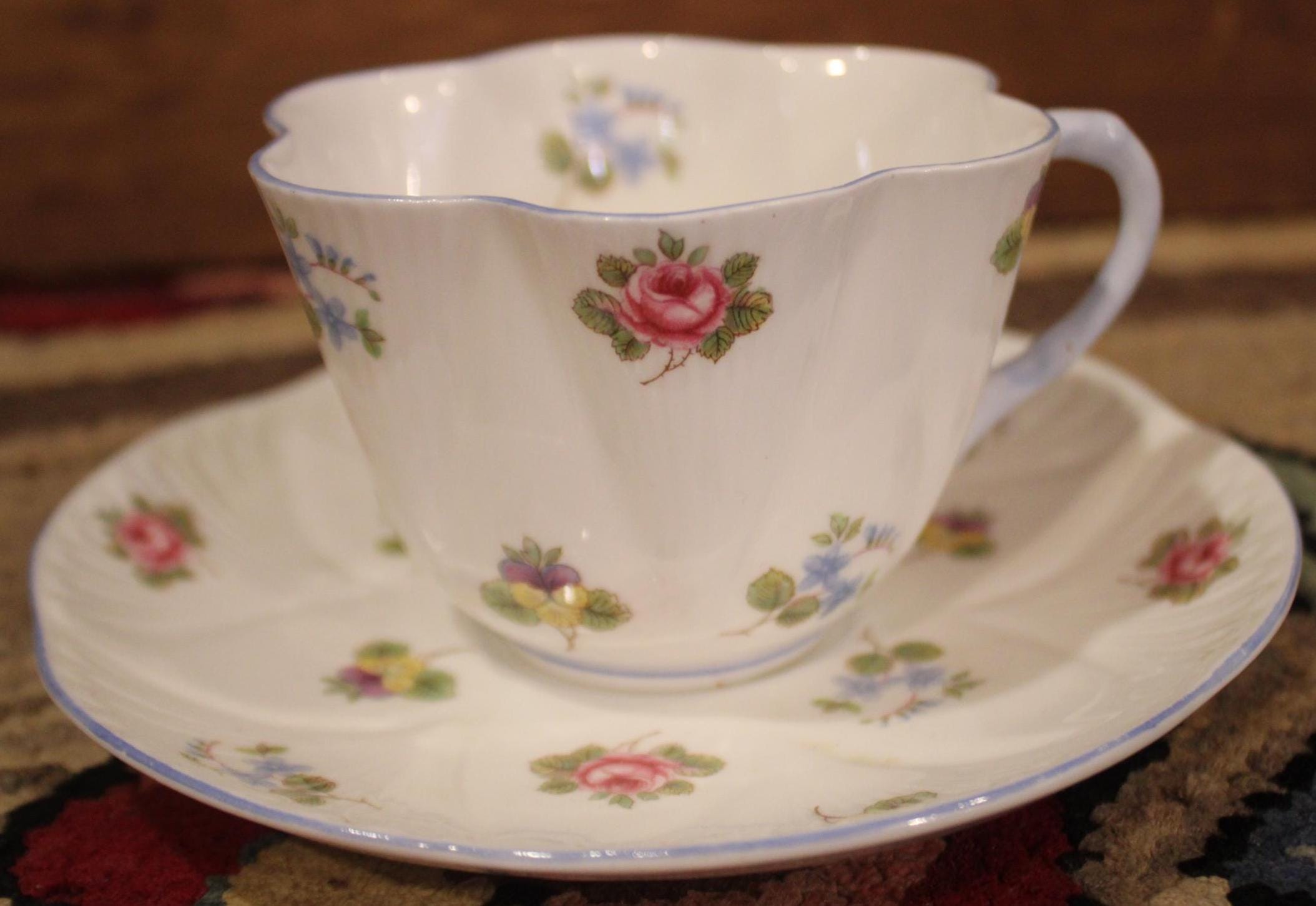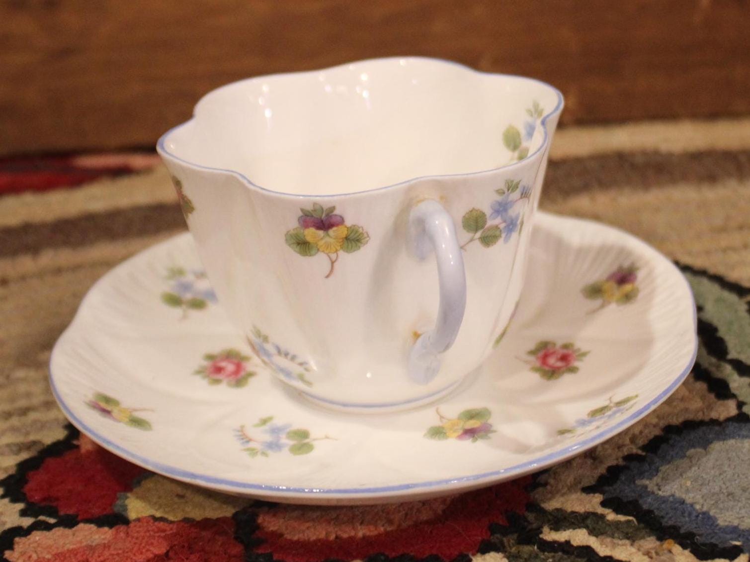 Beautiful Shelley Bone China Tea Cup and Saucer with Roses, Pansies, and Forget-Me-Nots- Made in England- Tea Party/Fine China/Tea Lover