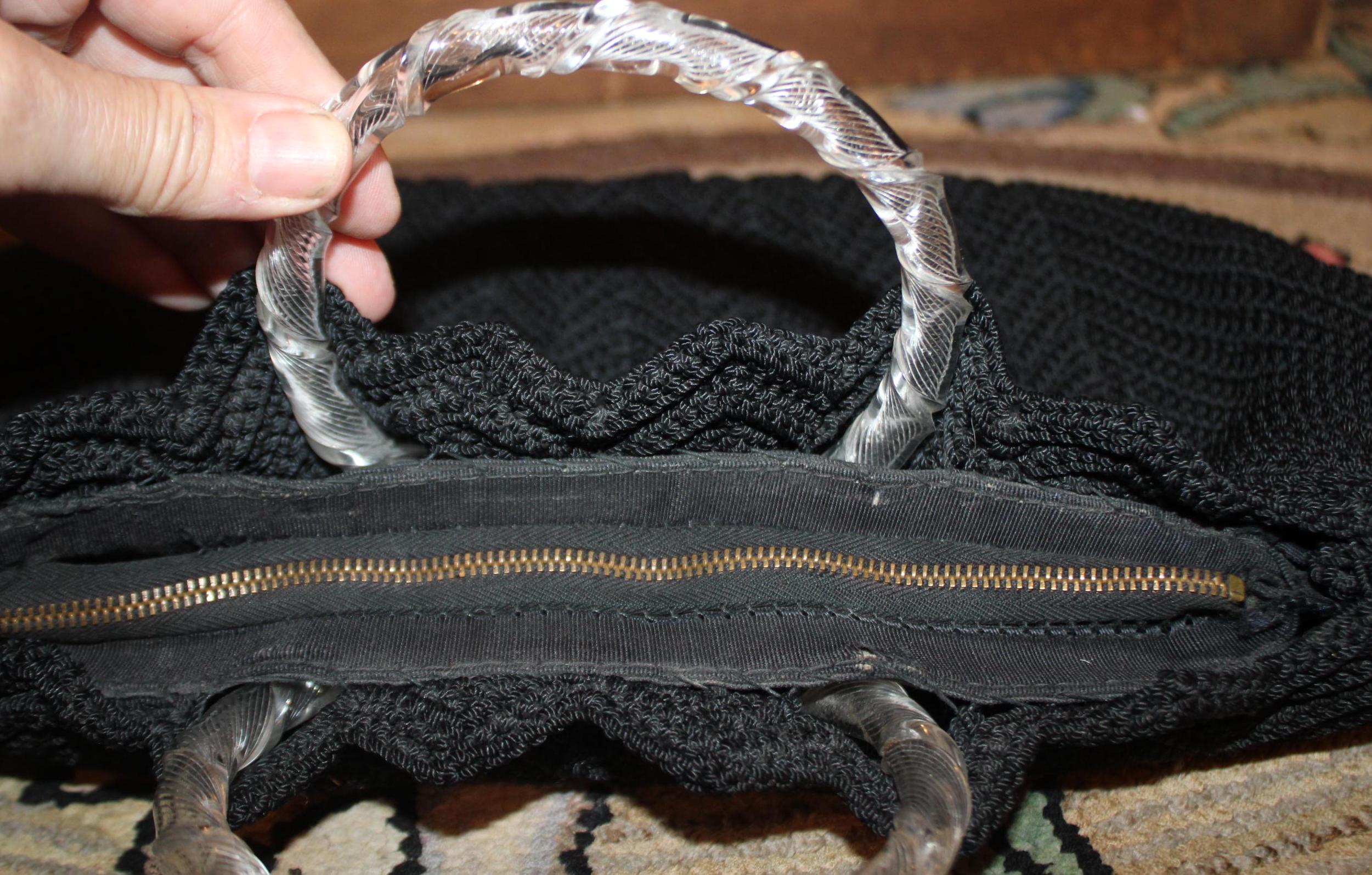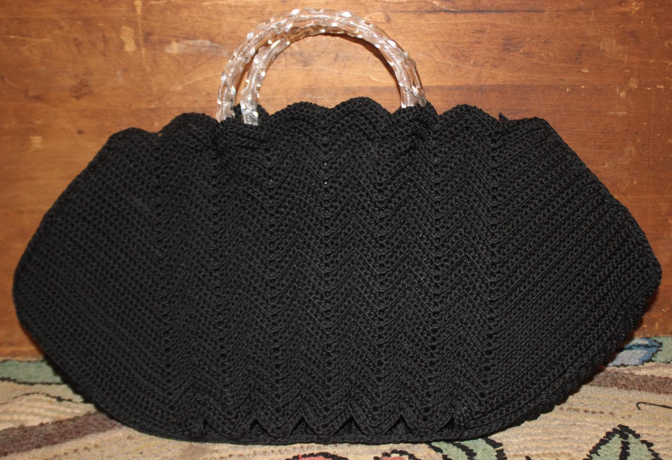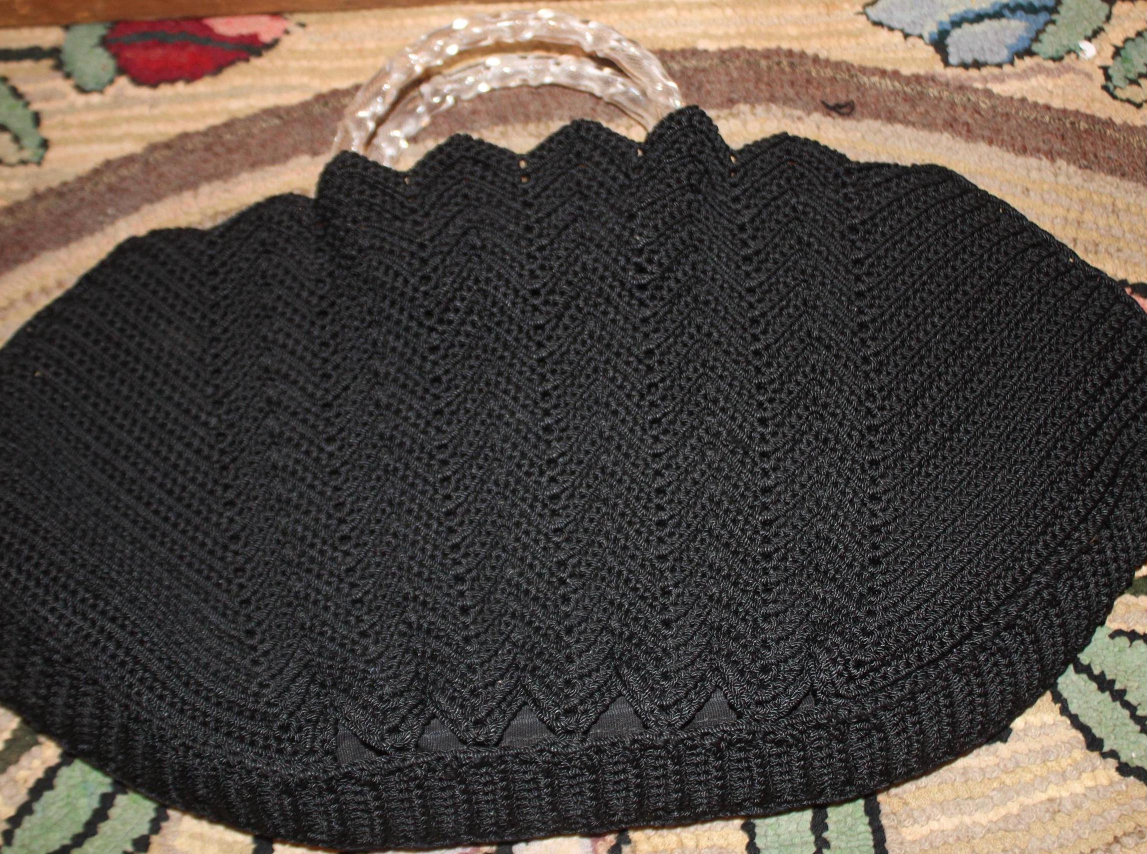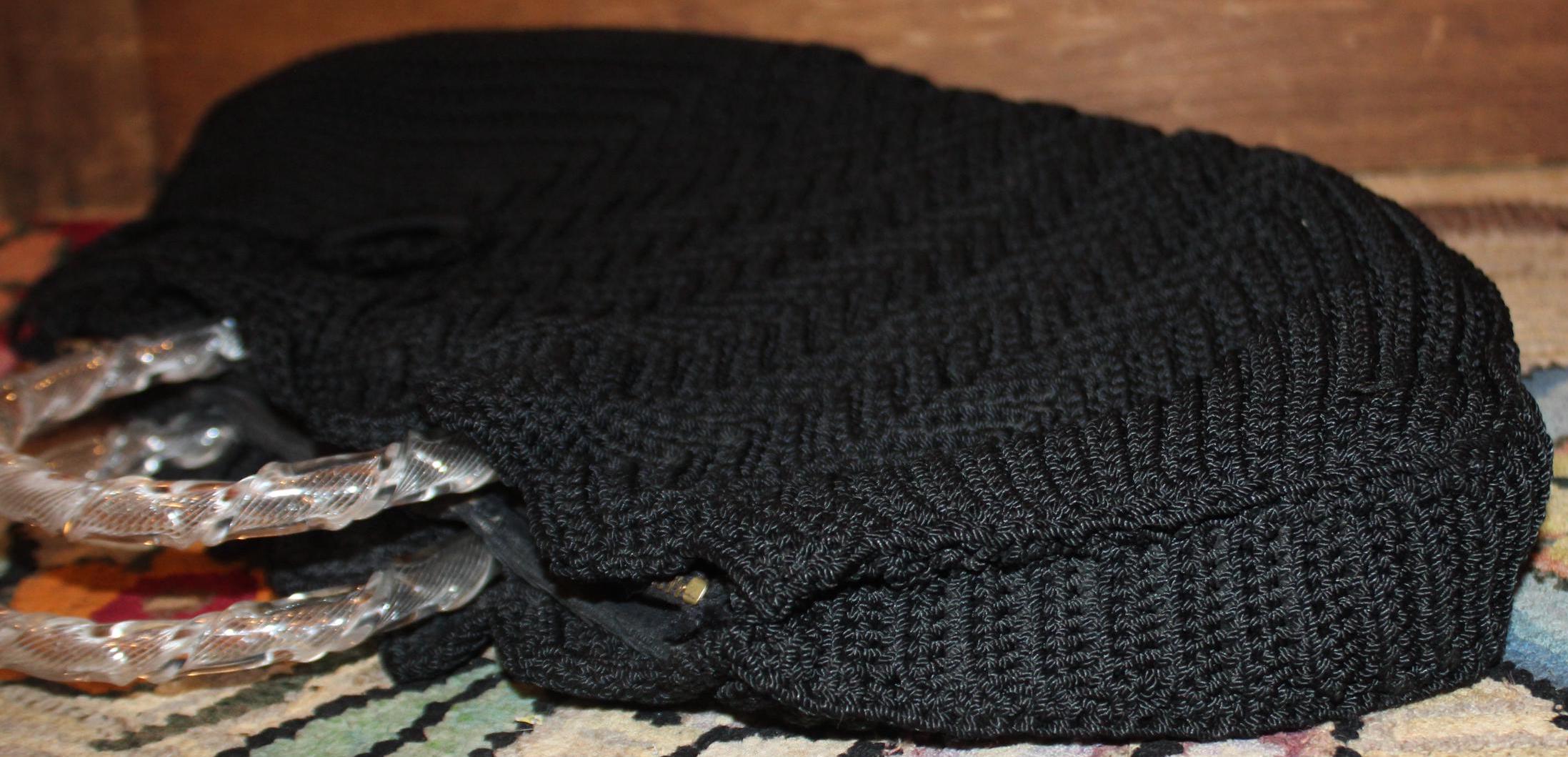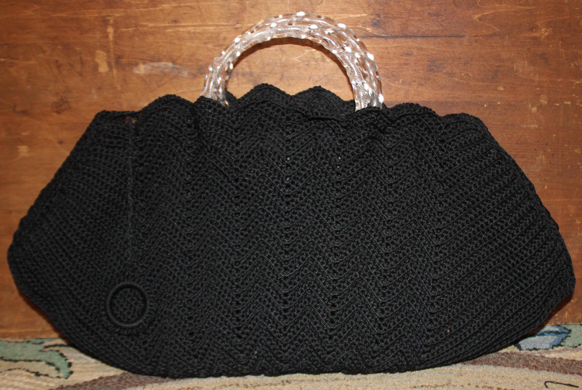 Vintage 1940's Lucite Handled Black Crochet Purse/Hand Bag- ME Probucts- Very Chic!