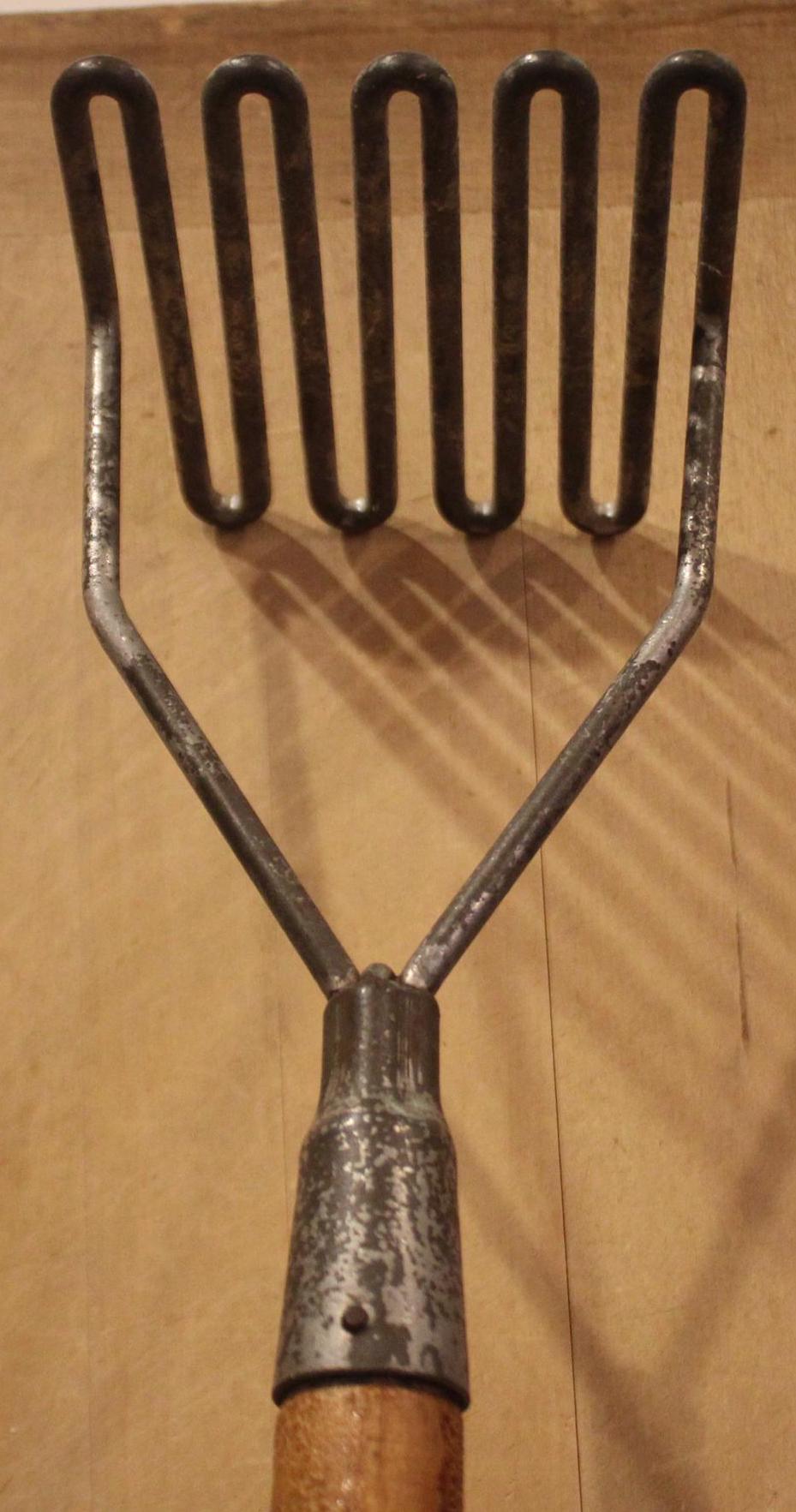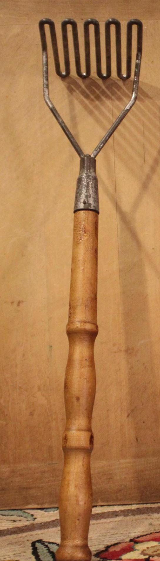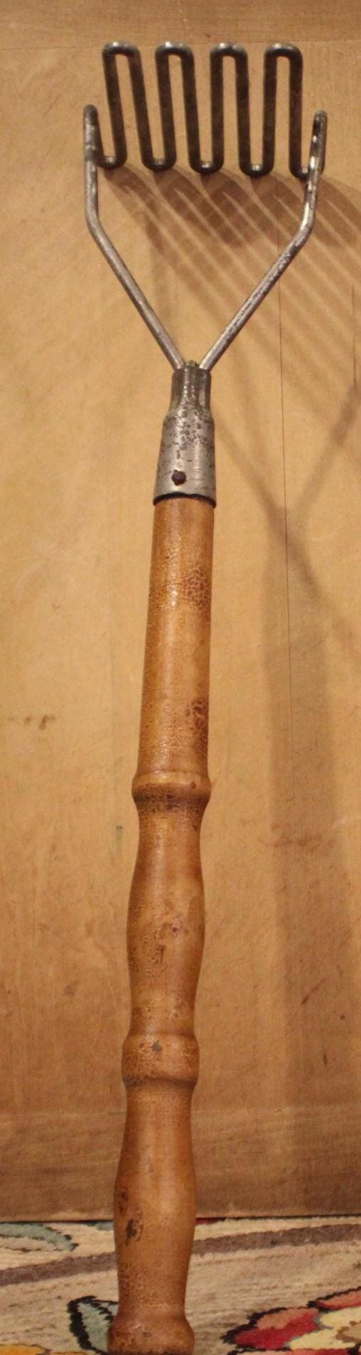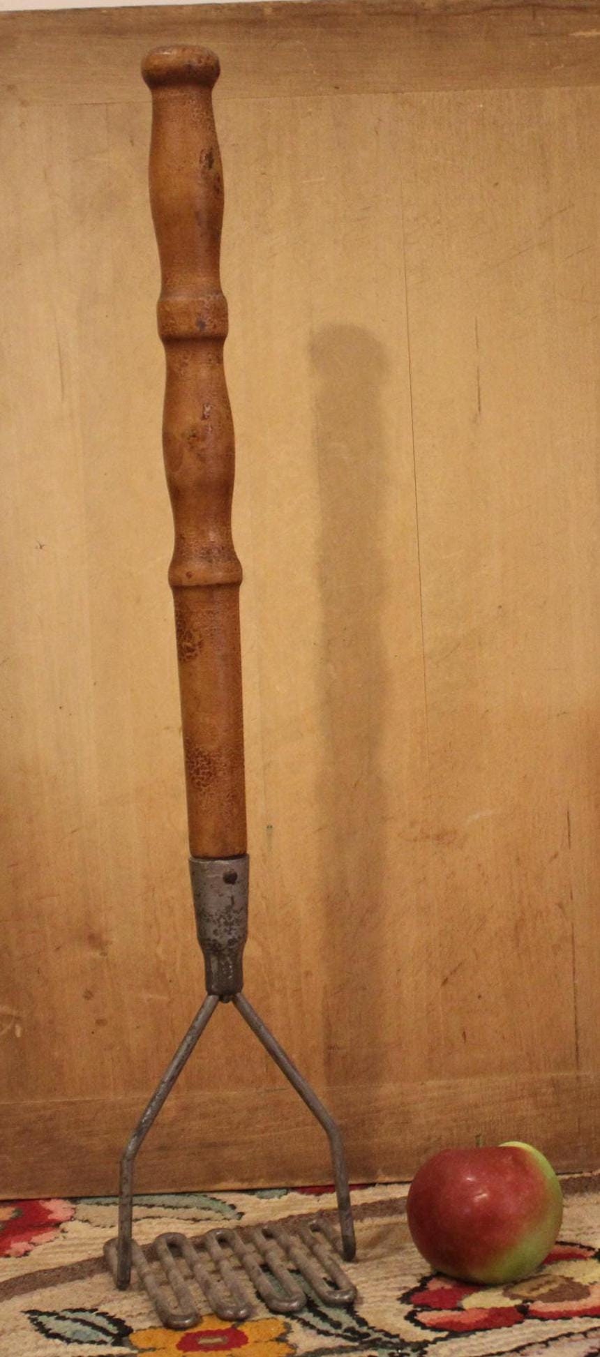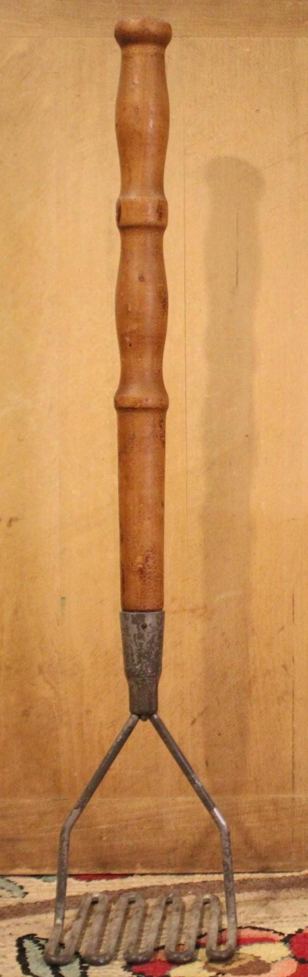 Are you the person that ALWAYS has to mash the potatoes before Thanksgiving dinner?....Well give your family and friends a chuckle with this beast of a potatoe masher! It is 22" in length with a 4.5" 4.5" wire masher end. The maple handle retains its original antique finish and fits snuggly into the masher head with no wobbling. There is surface wear to the masher head(it has been cleaned and is ready to use). Please message us if you have any questions- Thanks for looking!