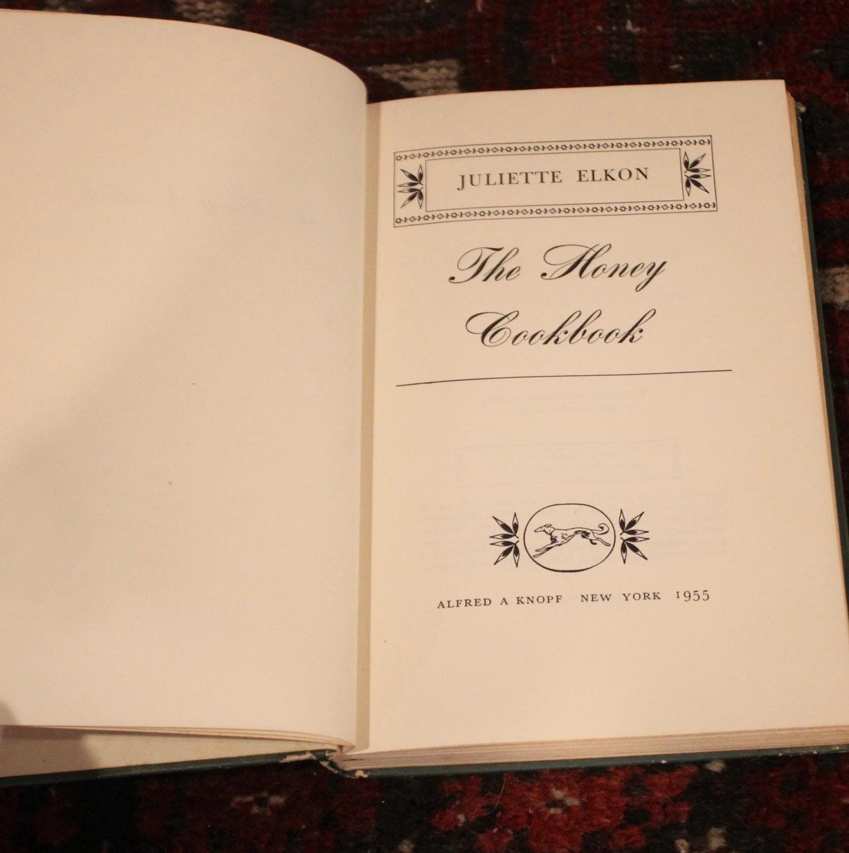 This FIRST EDITION The Honey Cookbook by Juliette Elkon would be such a great addition to your cookbook library! It was published by Alfred A. Knopf in 1955 and contains many fantastic recipes such as honey pie, pumpkin custard, honey rolls, honey lemon jelly, and many other delicious dishes. This first edition is in very good condition: it has clean pages, a tight binding, slight edge wear and scuffing to the boards. It is not ex-library and there is no dust jacket. The previous owner’s name is on the front end page. Please message us if you have any questions- Thanks for looking!