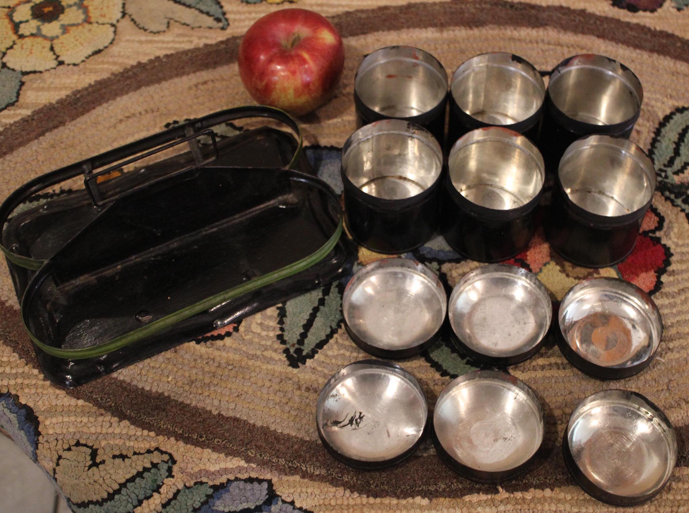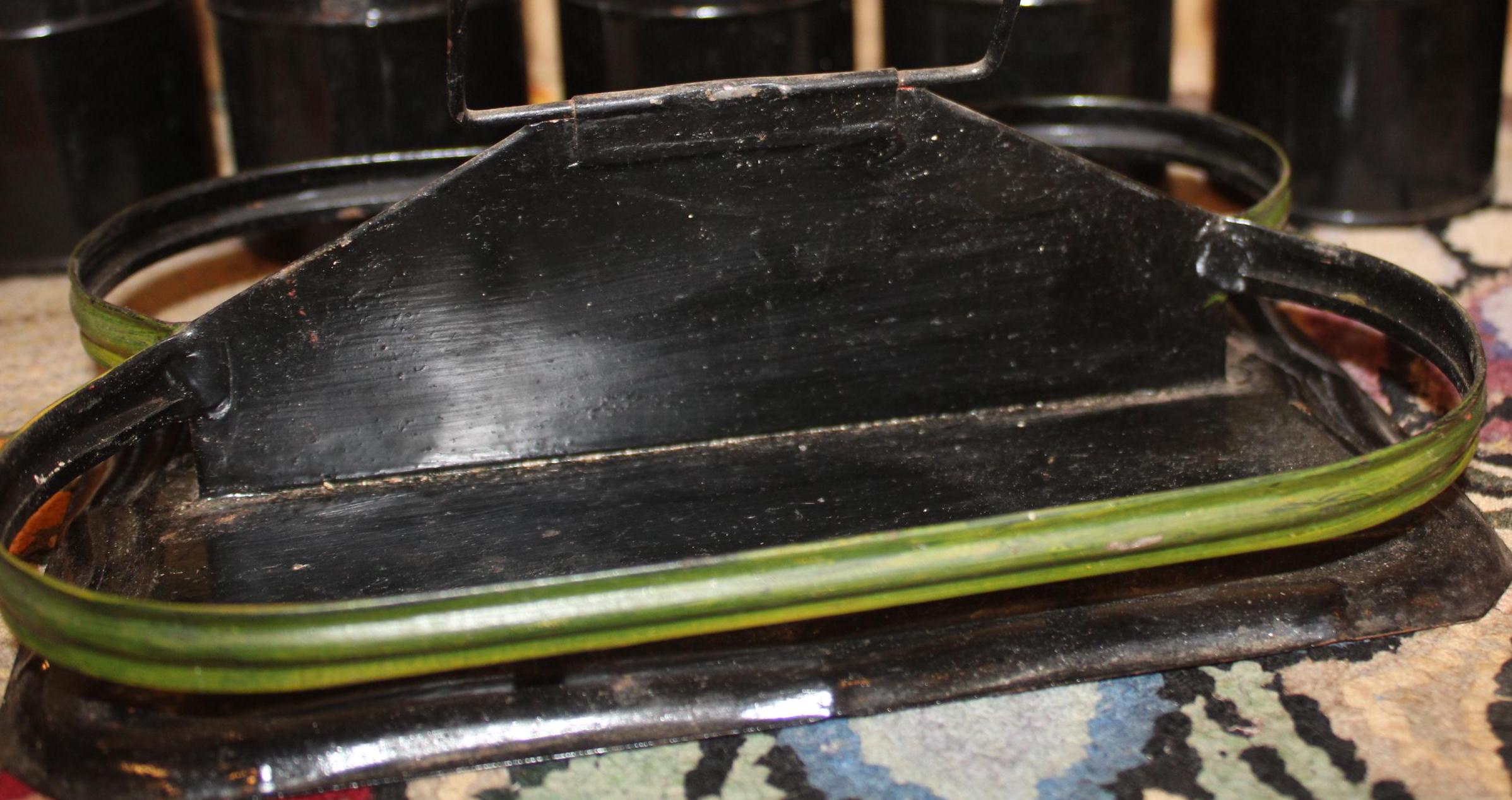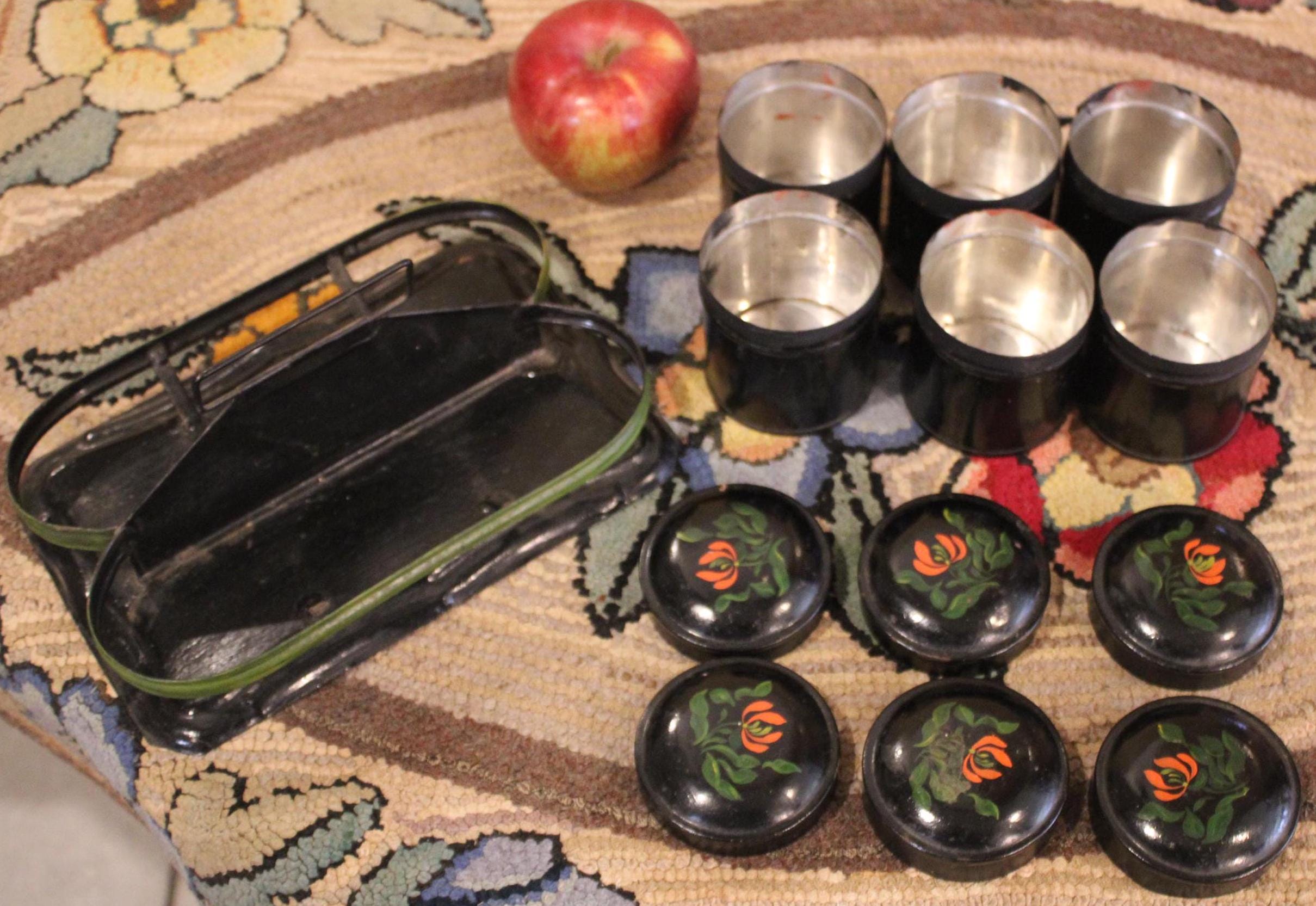 Vintage Handpainted Tin Tole Spice Set with Carrier- Farmhouse/Country/Storage
