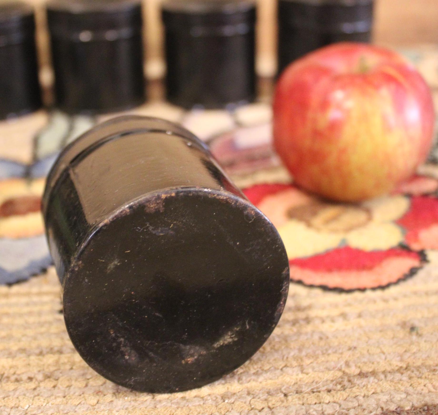 This Vintage Handpainted Tin Tole Spice Set would look stunning in your farmhouse kitchen! Each of the 2.5" diameter x 3" tall spice containers is in fantastic condition considering age; the lids open easily and the interiors are very clean. The carrier is 8" x 5.5" and is in great condition as well! There is paint wear- but no dents or holes. Please message us if you have any questions- Thanks for looking!