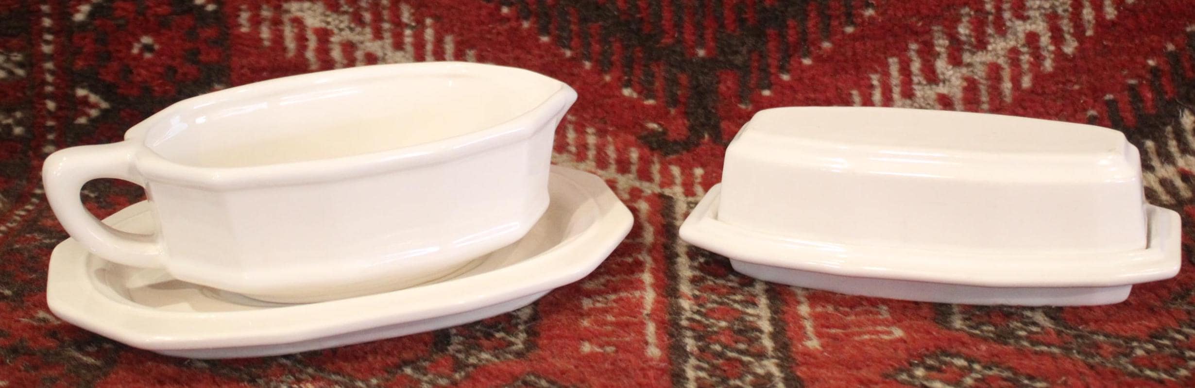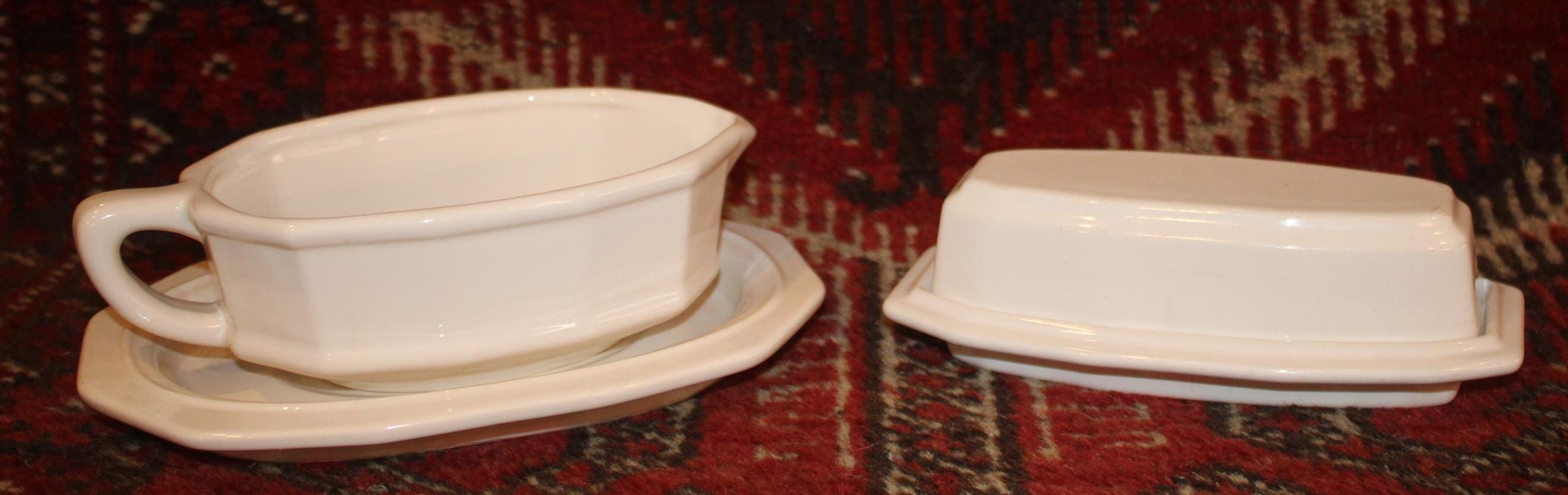 Homemade Rosemary dinner rolls with a smathering of sweet cream butter and ofcourse the PERFECT turkey gravy- YUM! The holidays are arriving soon! The Heritage Pfaltzgraff gravy boat which measures 9" x 6" x 3" and the butter dish which measures 7.5" x 3.75" x 2.5" are in great conditin with no chips or cracks.
