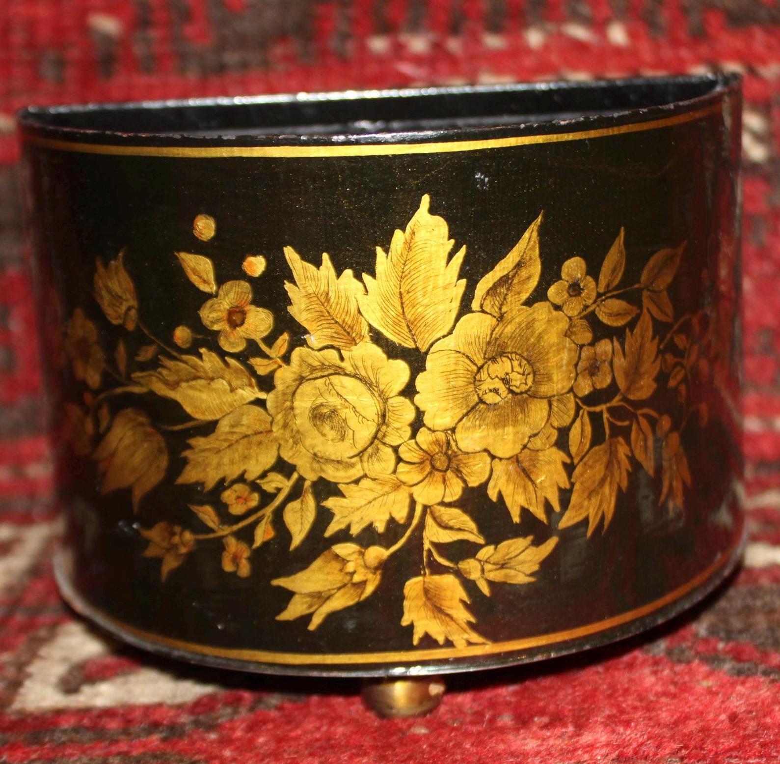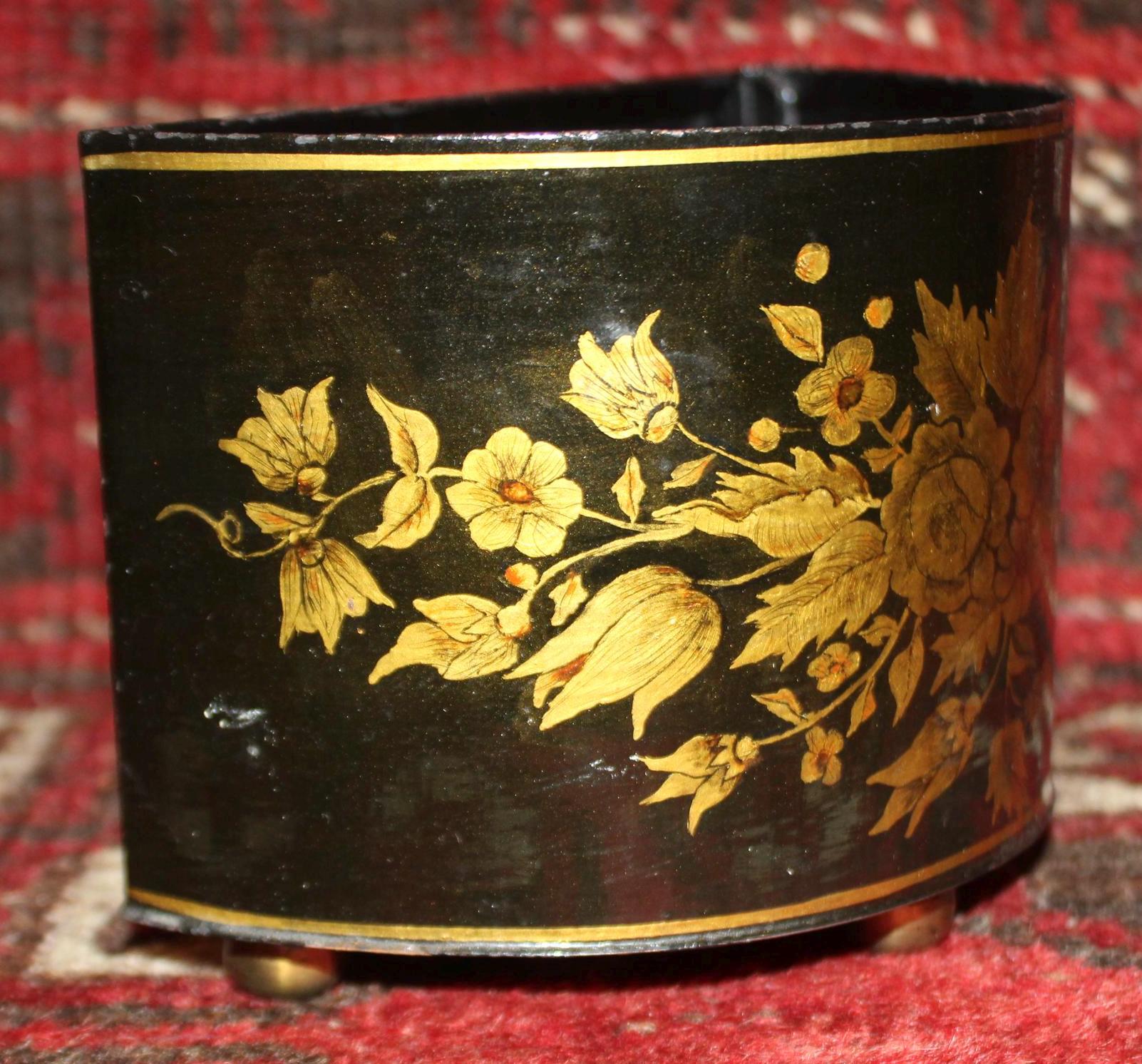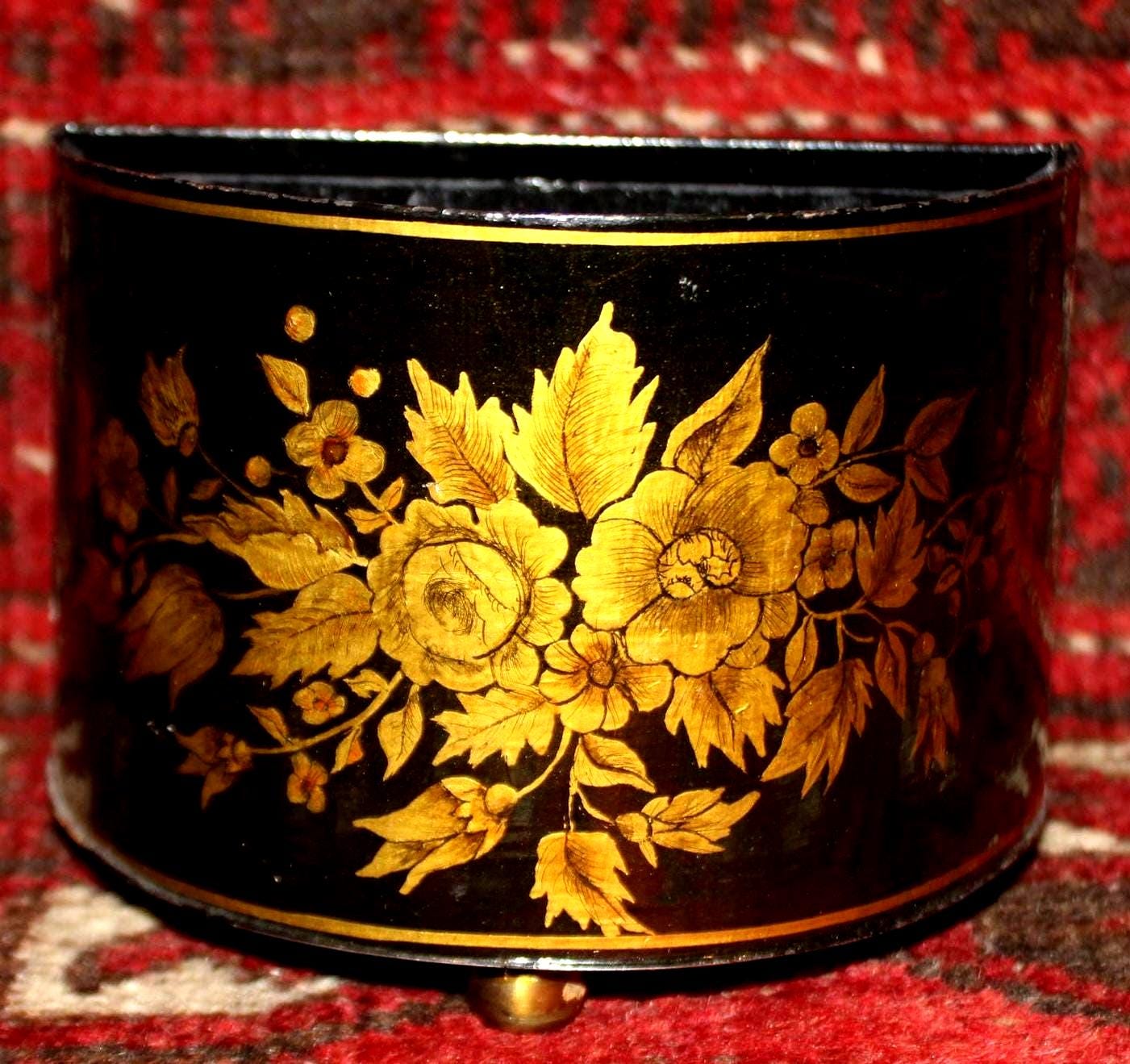 This Gorgeous Vintage Botanical Handpainted Toleware Stationary/Letter Holder would look stunning on a desk in your office or library!It is 6”x 3.25”x 4.25” and stands upon four bun feet. The holder is beautifully and intricately painted in gold gilt with a floral motif. Please message us if you have any questions- Thanks for looking!