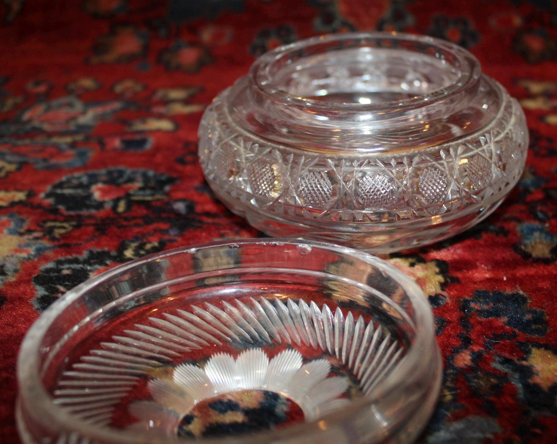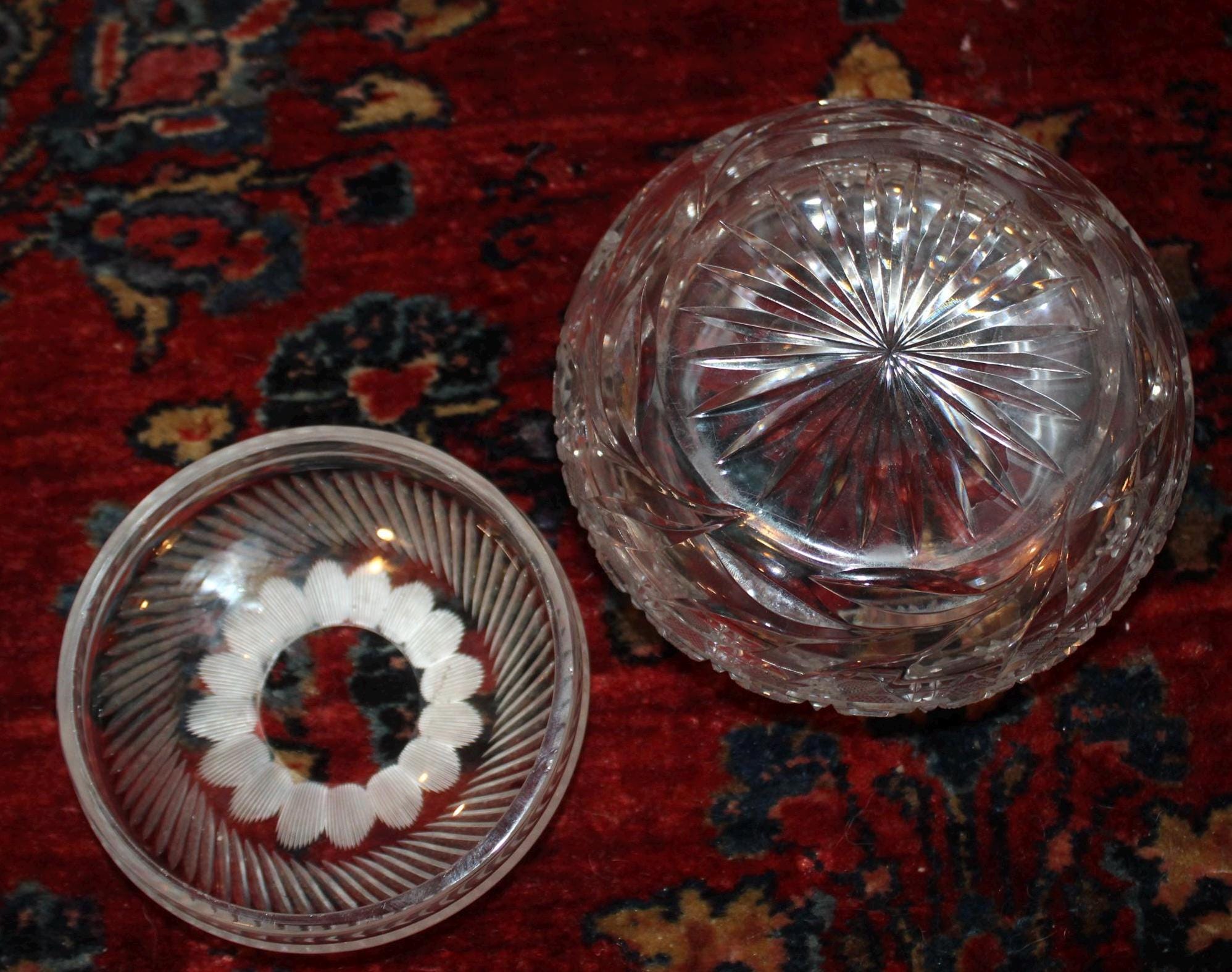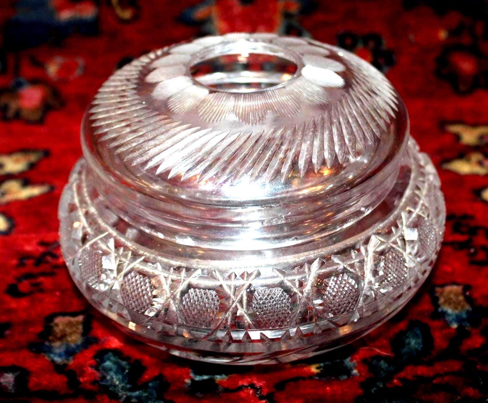 Gorgeous 19th c. Victorian ABP Cut Glass Hair Receiver-American Brilliant Glass/possibly Pairpoint