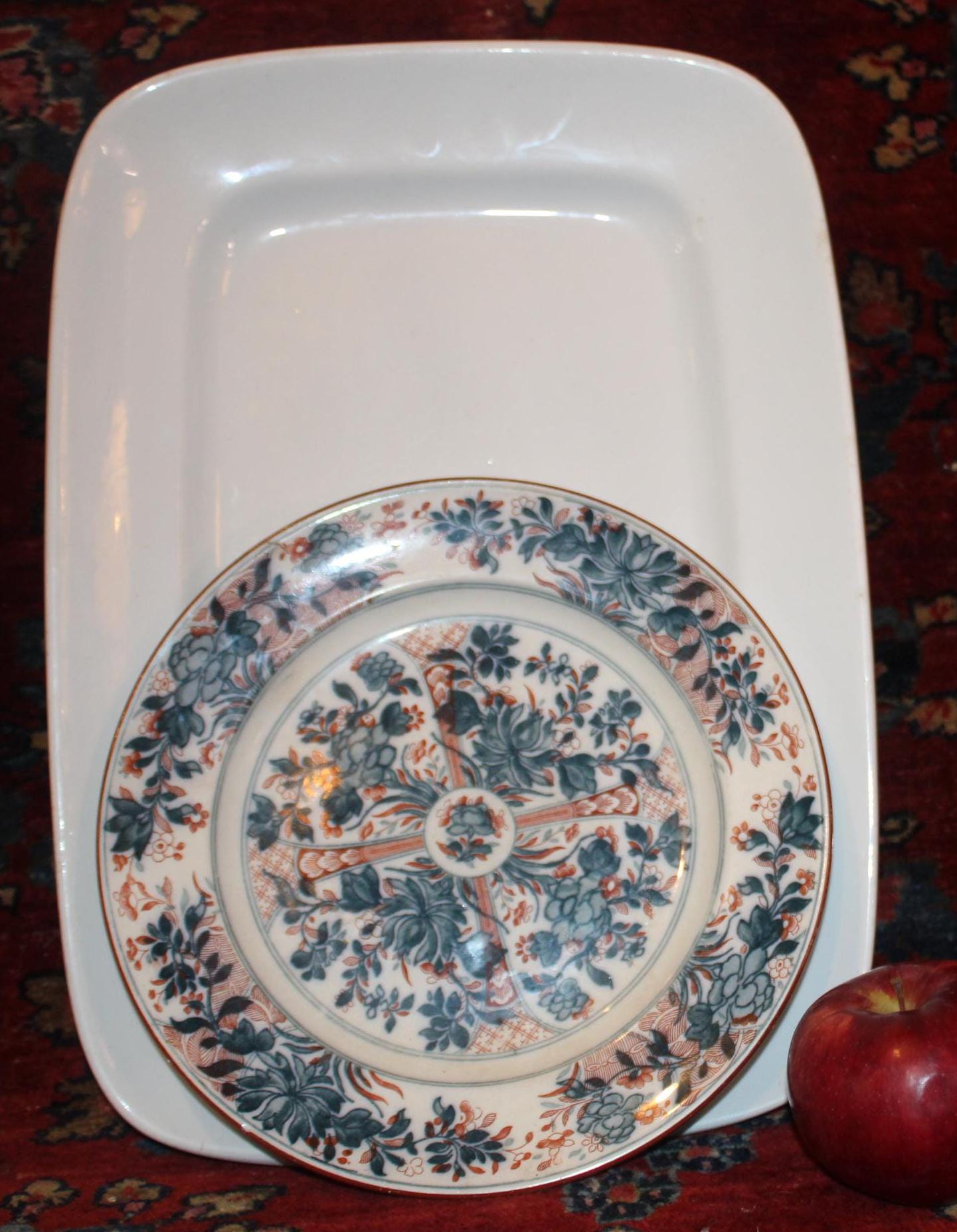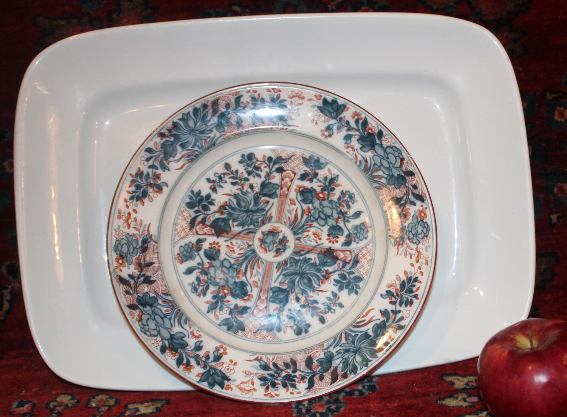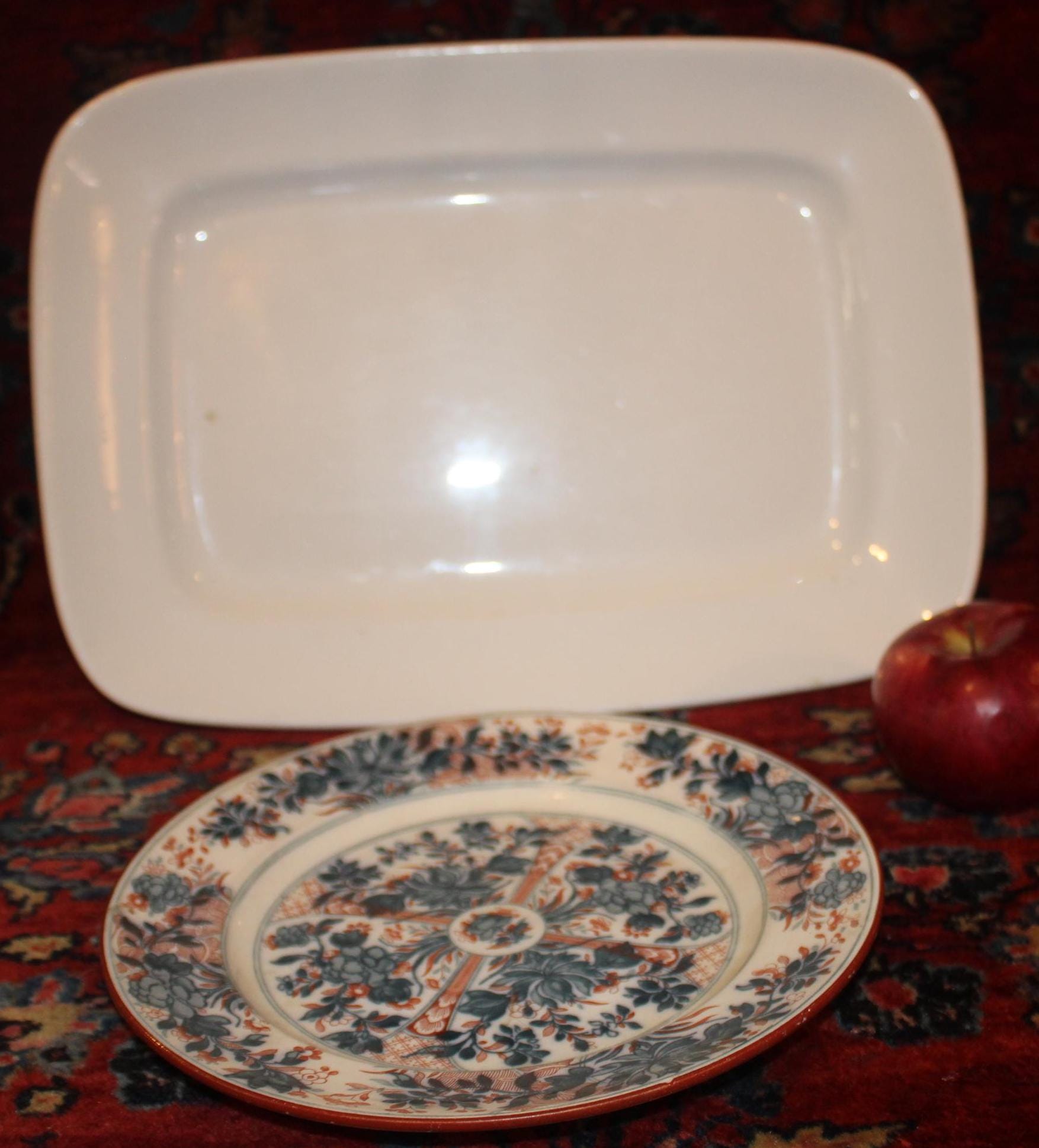 Antique Ironstone Rectangular Platter with a Gorgeous Wedgwood Ningpo Pattern 1890 (Blue & Red) Salad Plate- Farmhouse/Country/Dining