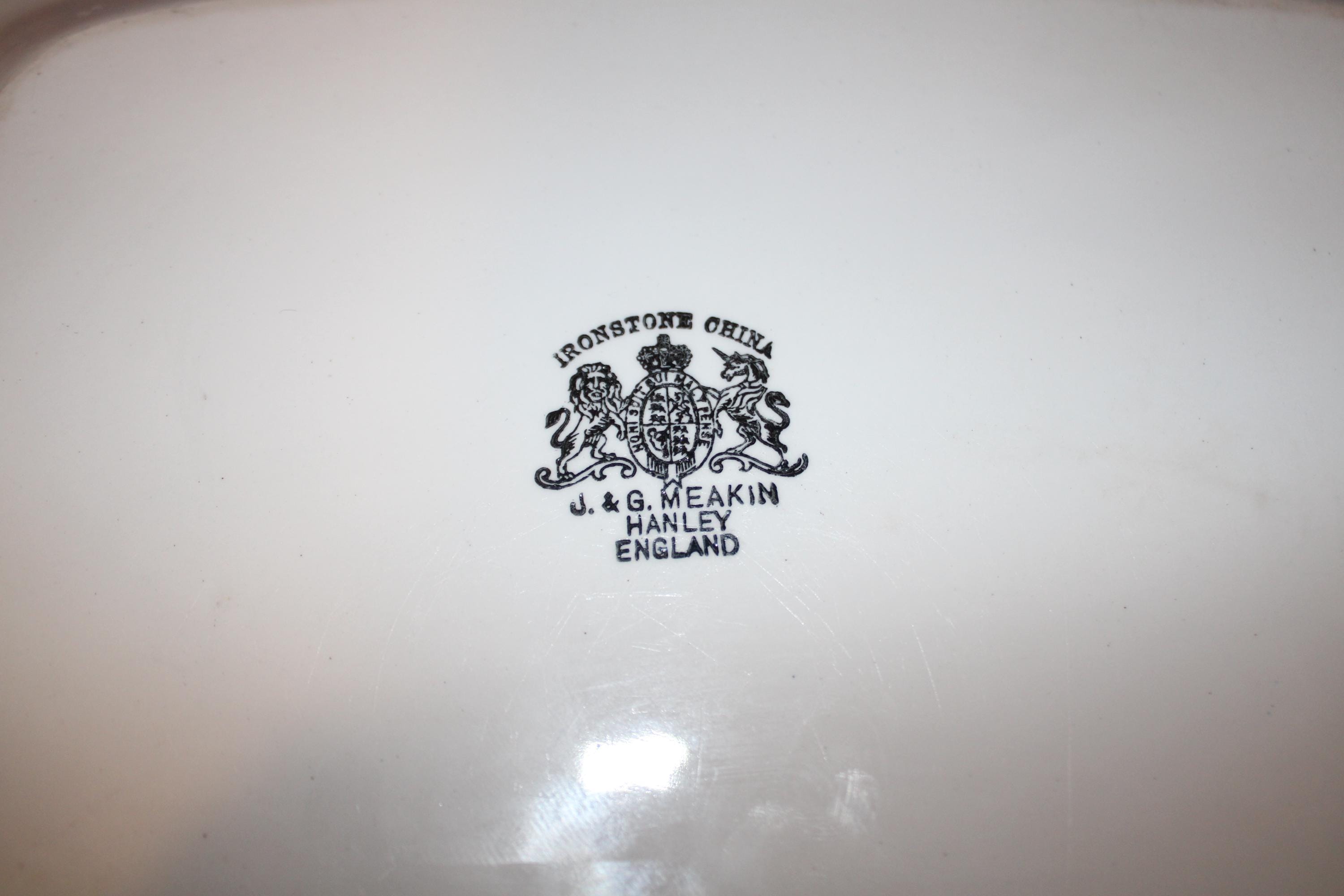 J & G Meakin Hanley England and is 14" x 10". The colors of both pieces are gorgeous together- there are no chips, cracks, or hairlines. Please message us if you have any questions- Thanks for looking!
