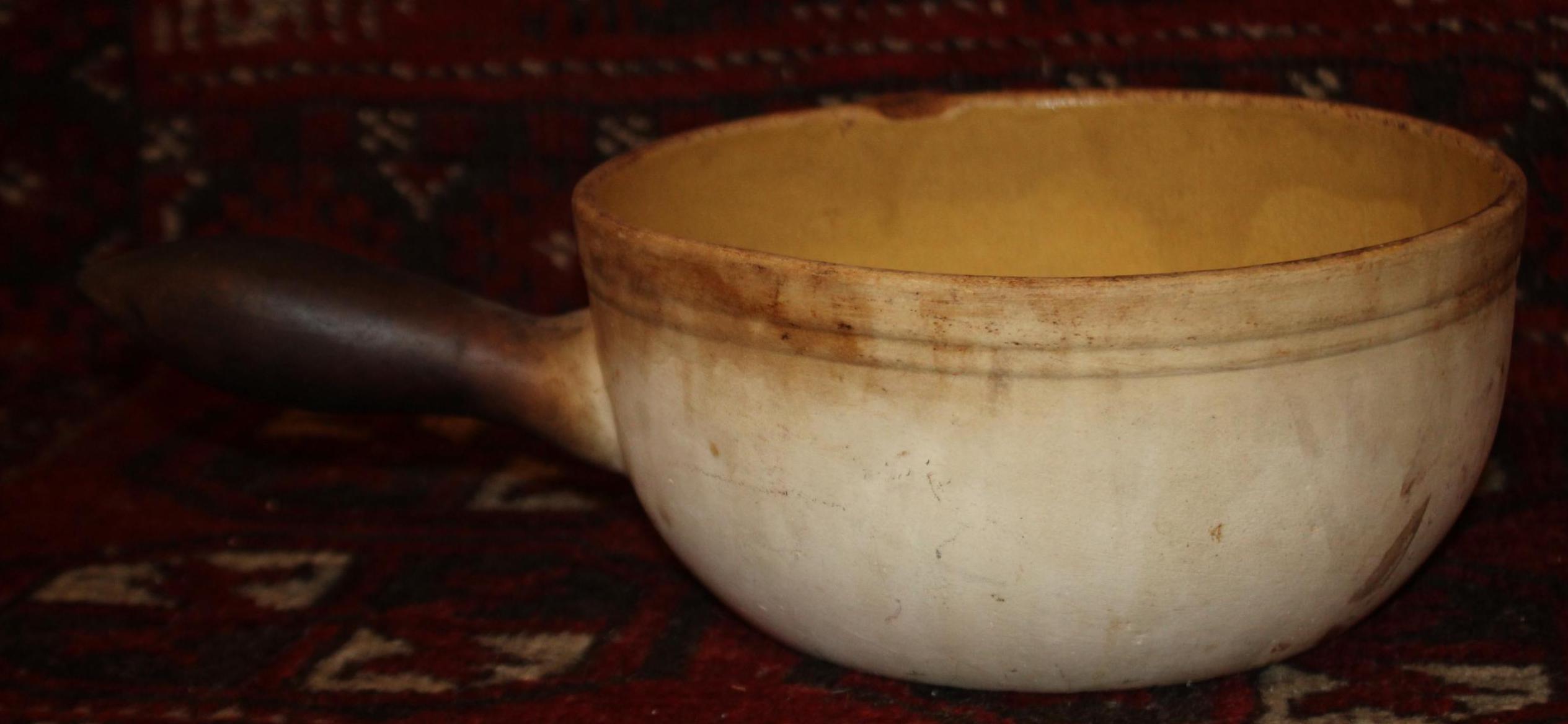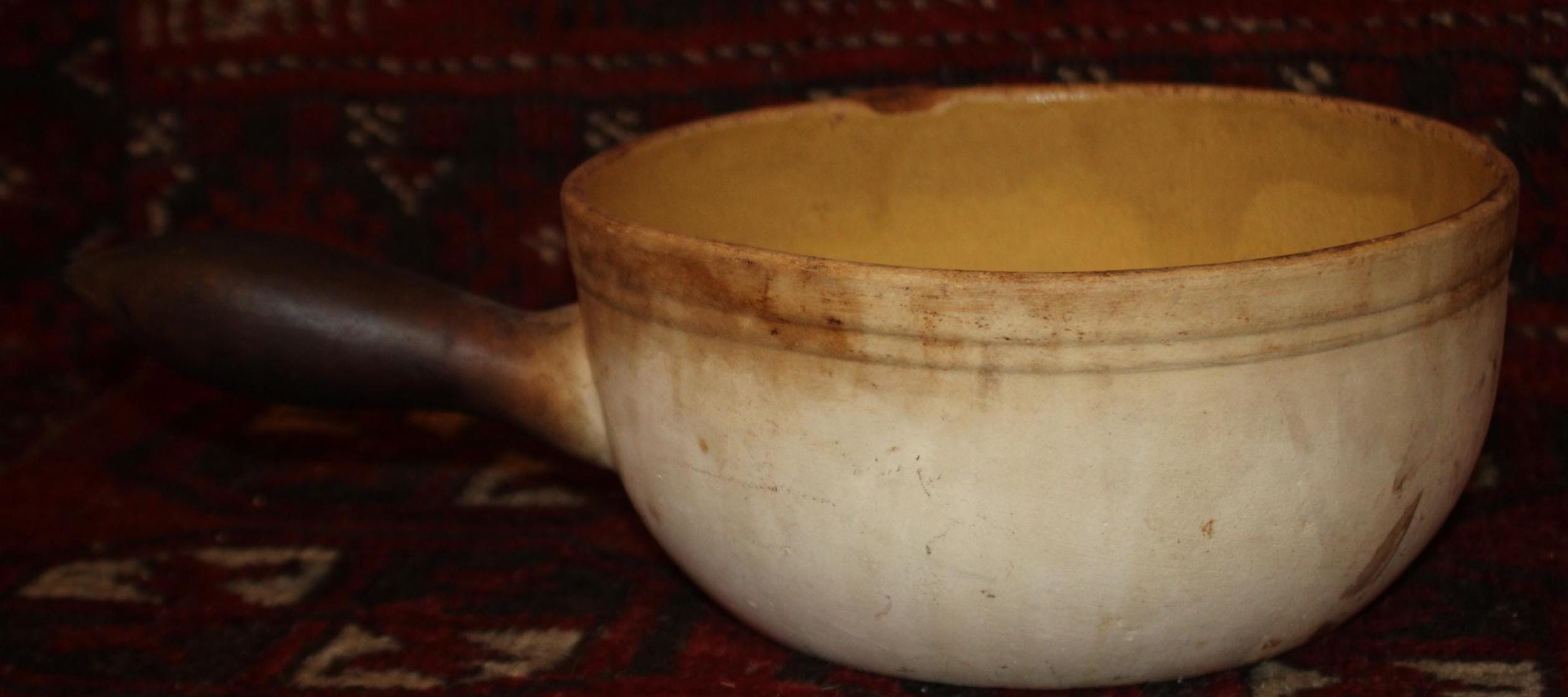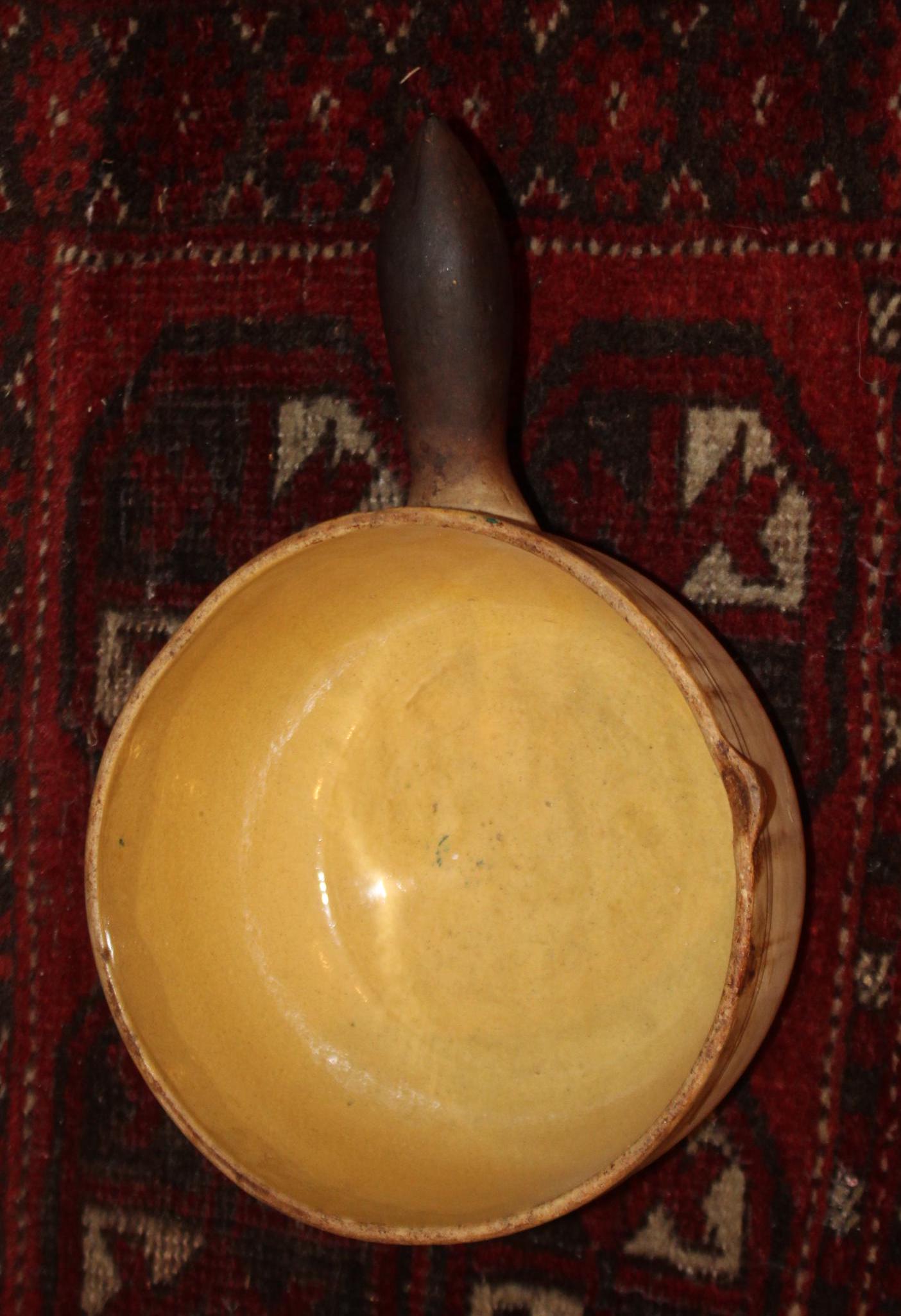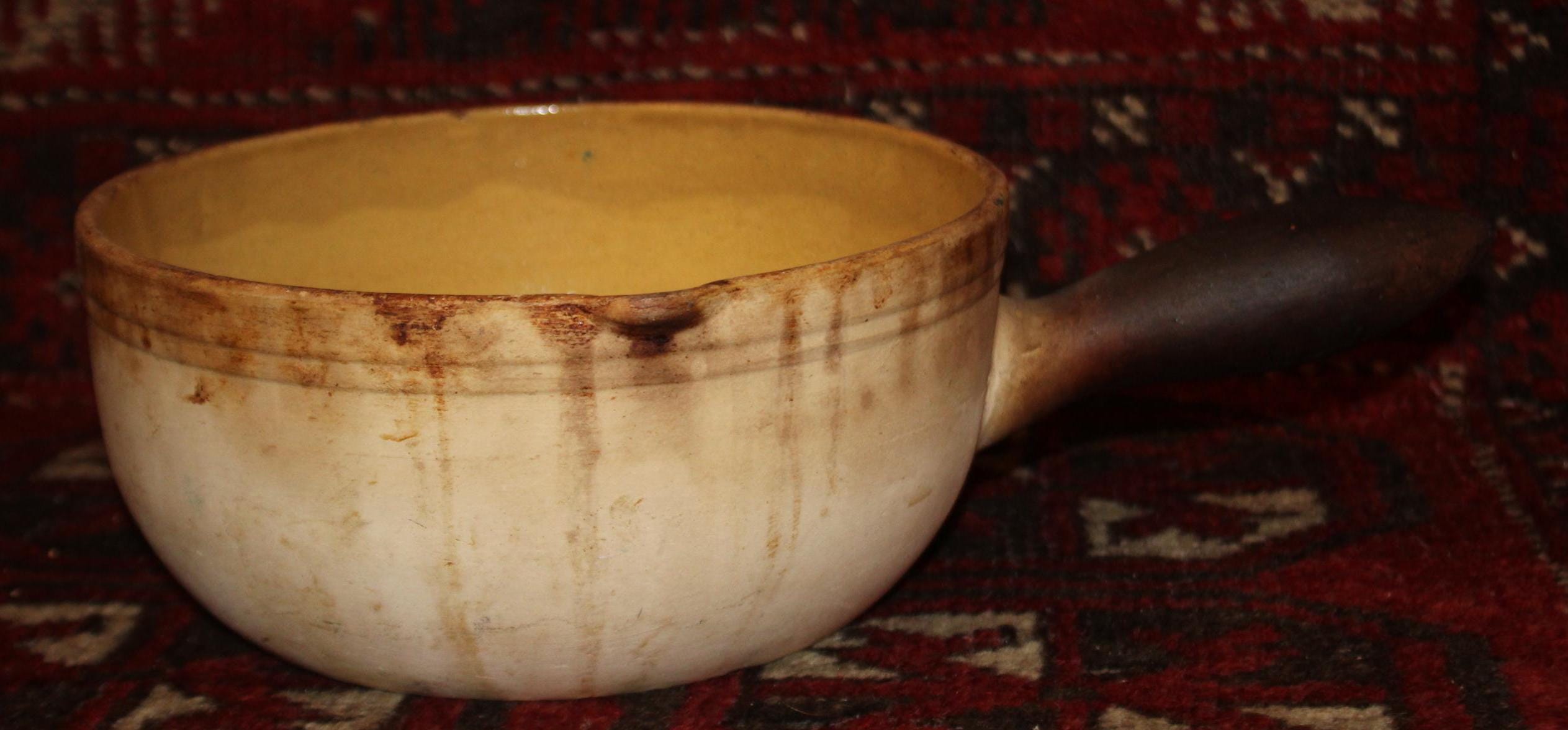This Yelloware Stoneware Cooking Pot has such a great rustic look to it! It would be perfect displayed in a country cottage or farmhouse! The pot bowl is 8.5" in diameter and is 13.25" long with the handle x 4" tall and holds 6 cups. There are no chips or cracks- there is discoloration from years of use. Please message us if you have any questions- Thanks for looking!
