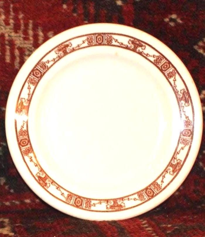 These Three 1950s McNicol China Morris Gordon & Son Bread/Dessert Plates are available to you! Each is 7.25” in diameter- the perfect size to adorn a kitchen wall! The reddish brown decoration is stunning on the heavy restaurantware plates. There are no chips or cracks. Please message us if you have any questions- Thanks for looking!