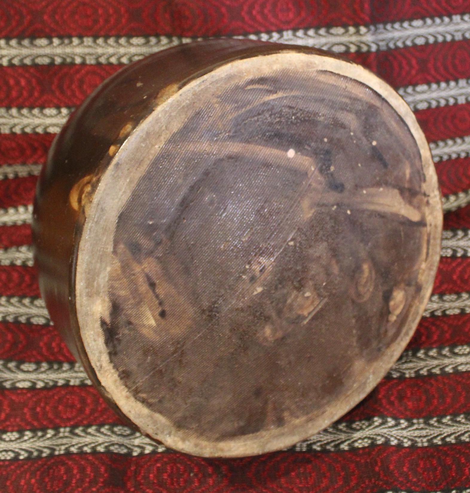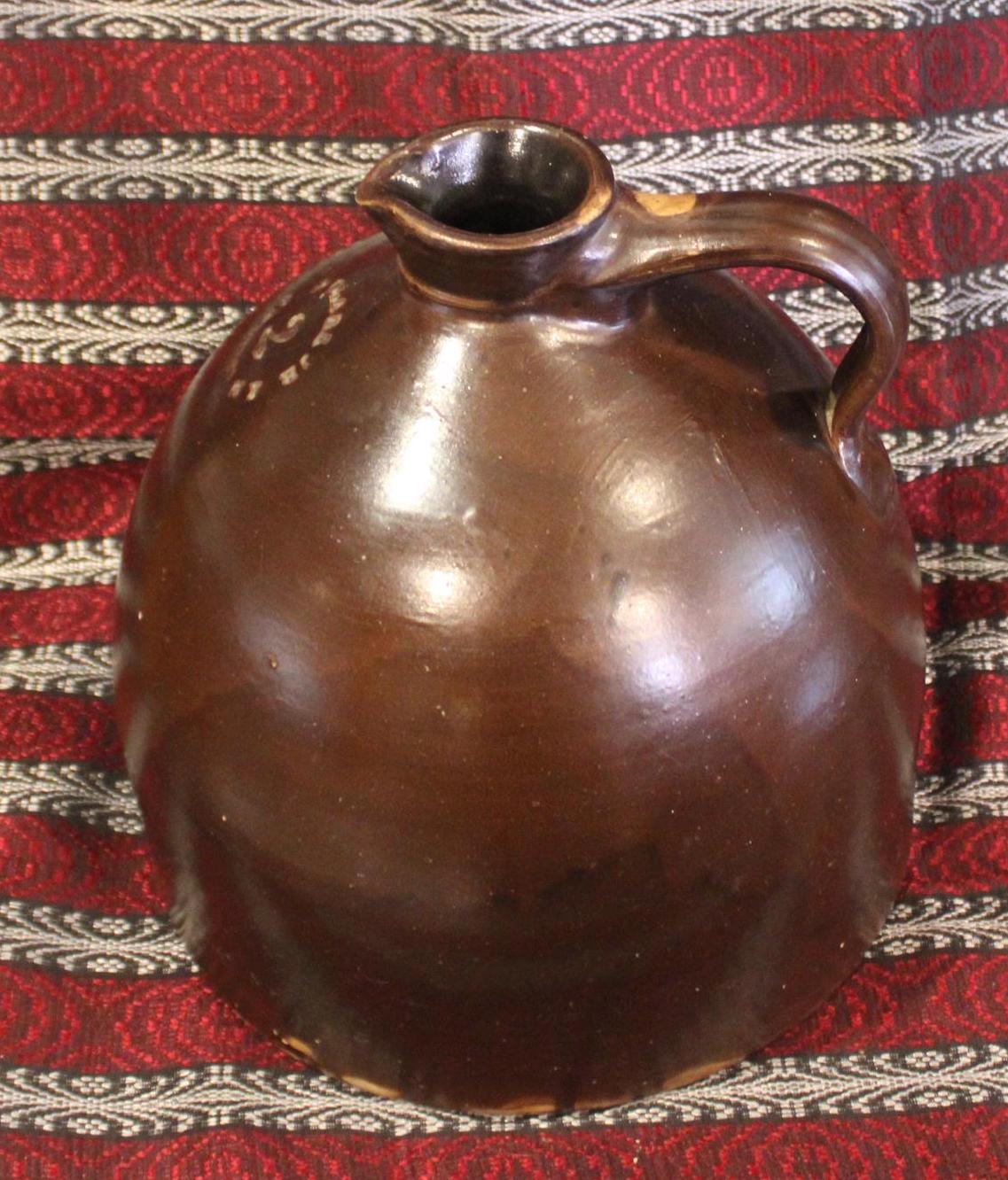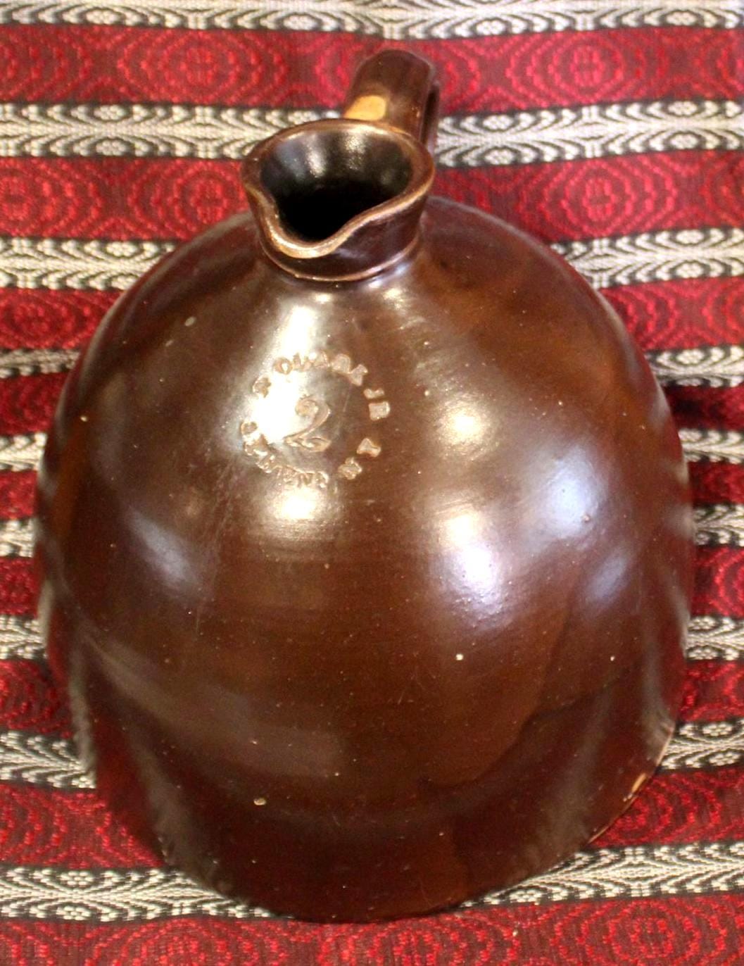 This "N Clarke Jr Athens NY" Stoneware 2 Gallon Jug is such a fantastic piece of brown earthenware! It is 11" tall x 10.75" in diameter and has a beautiful rich chocolate hue with the perfect sheen. The applied strap handle, pouring spout, and base have no chips; there is a bubble pop (occured during firing) to one side which can be seen in the last photo- but no hairlines. A beautiful jug that would look gorgeous in your home! Please message us if you have any questions- Thanks for looking!