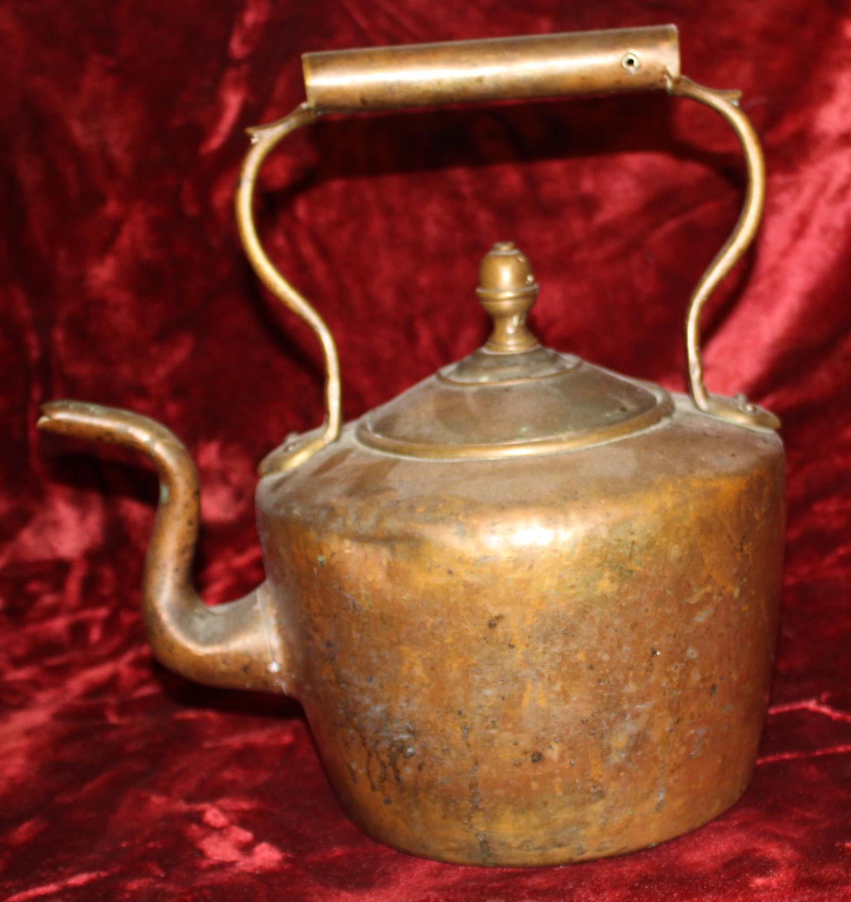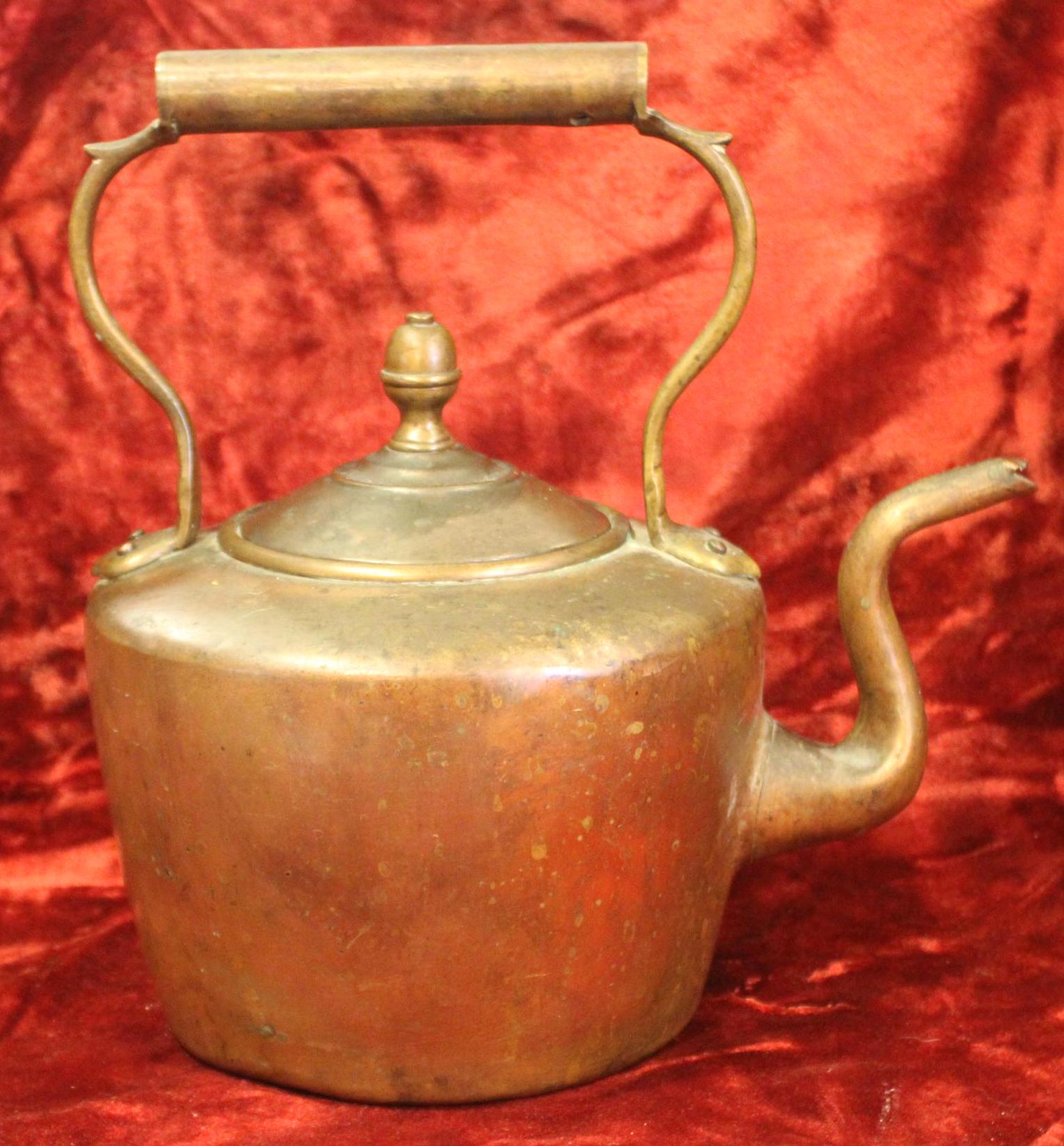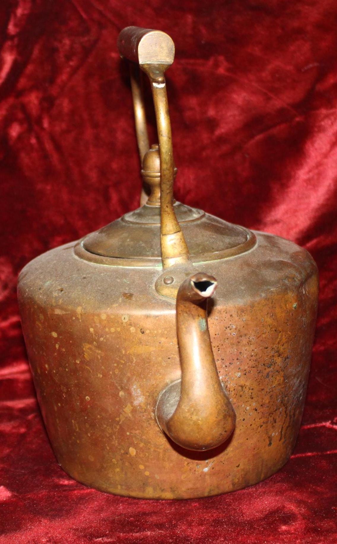 Wonderful 19th Century Dovetailed English Copper Tea Kettle with Acorn Finial- Great Patina/Country/Farmhouse Decor
