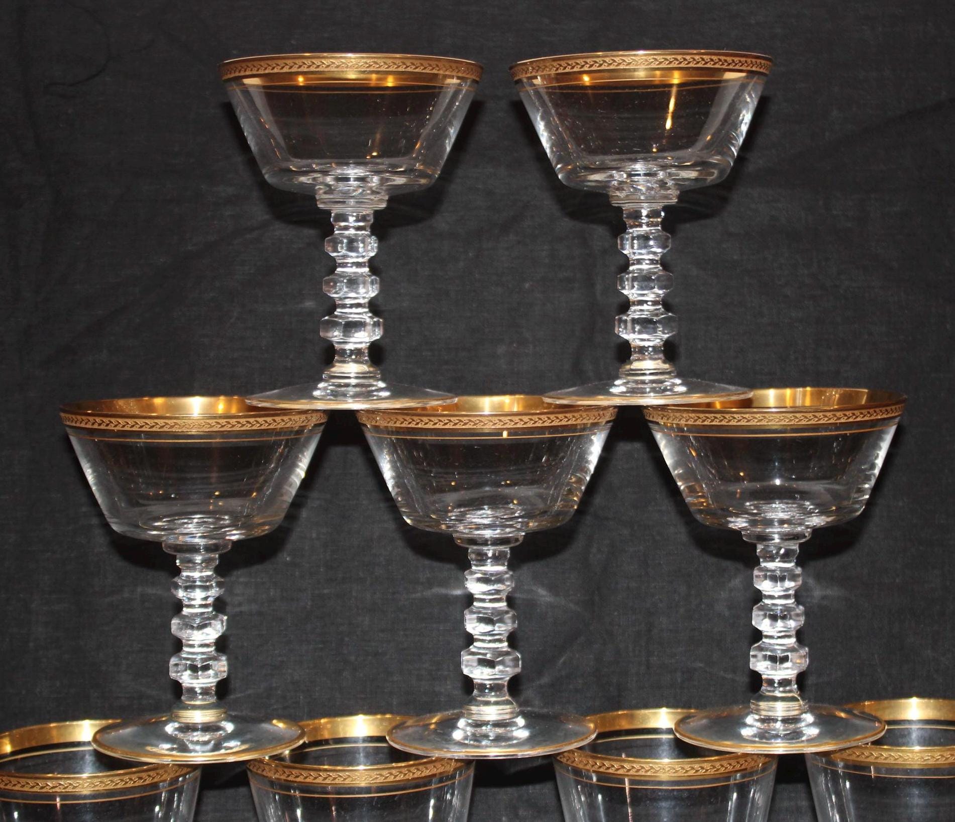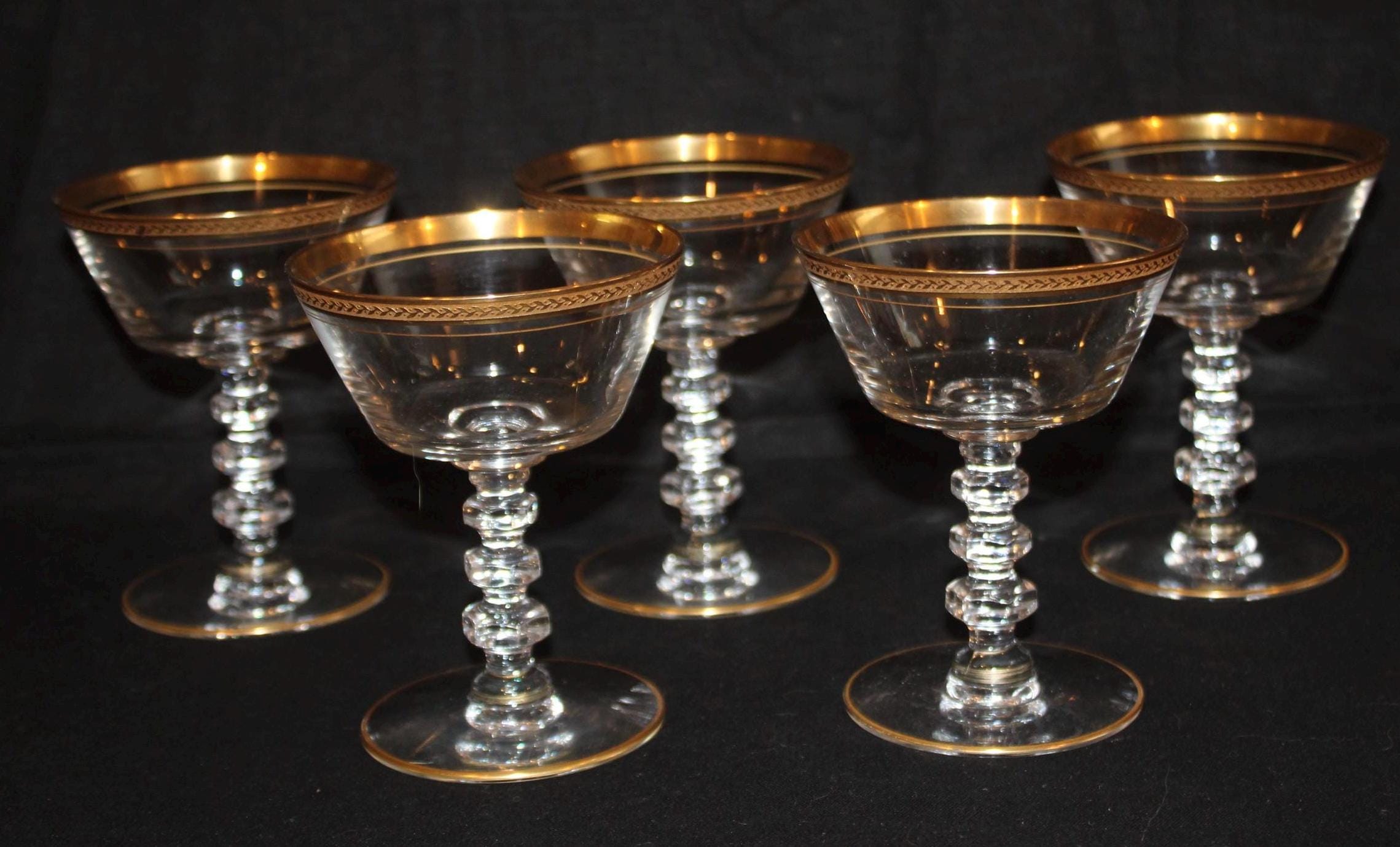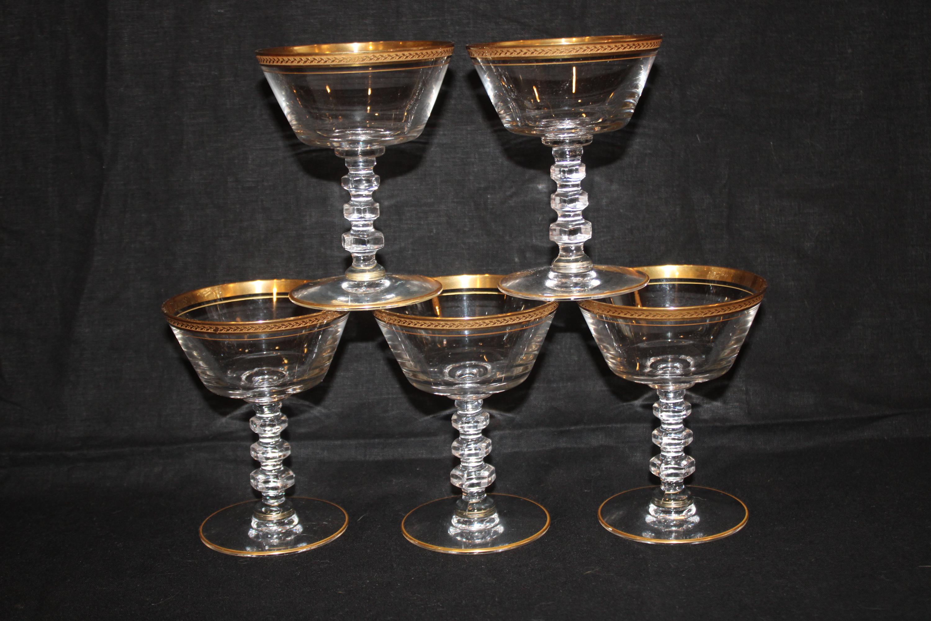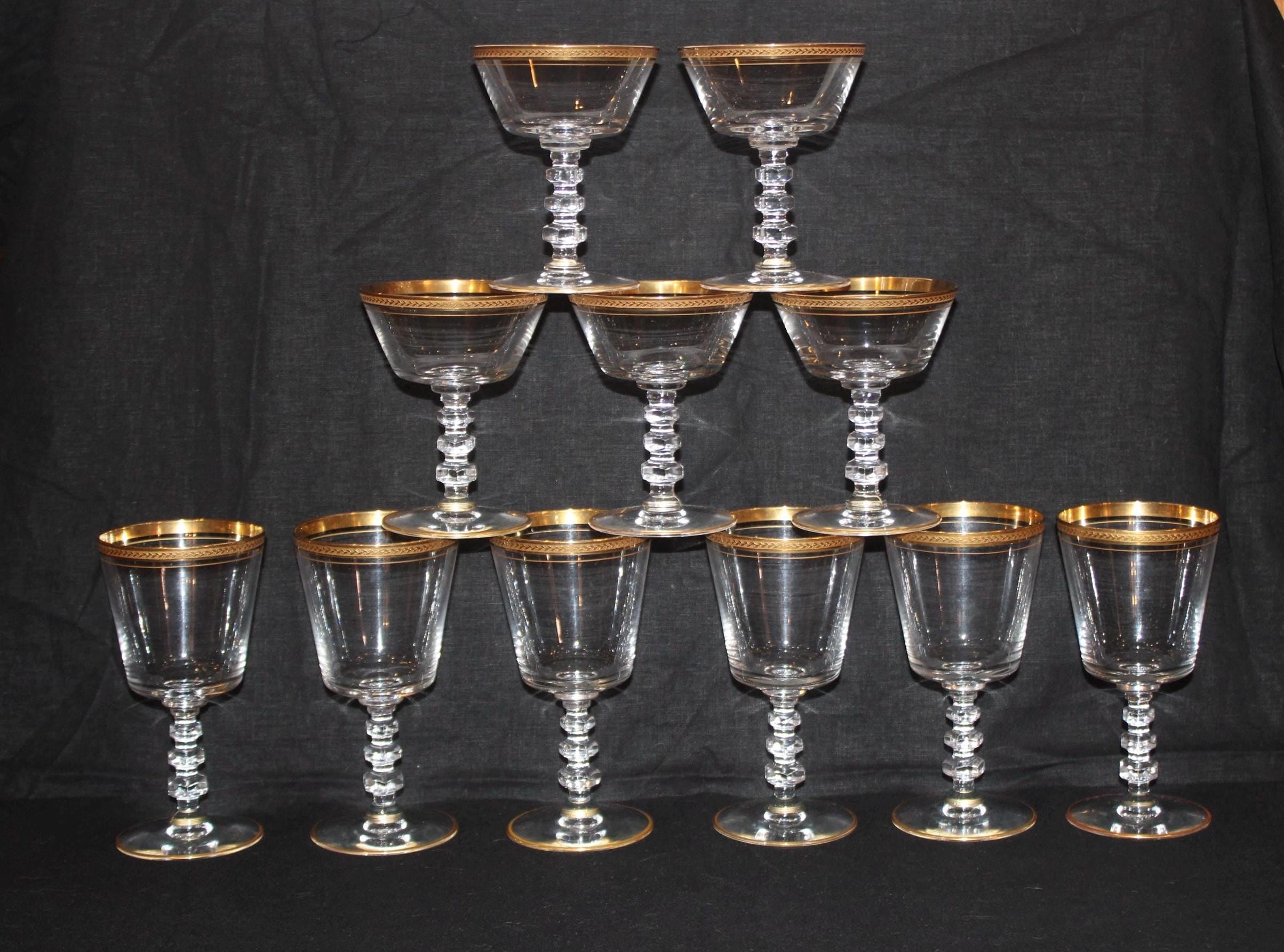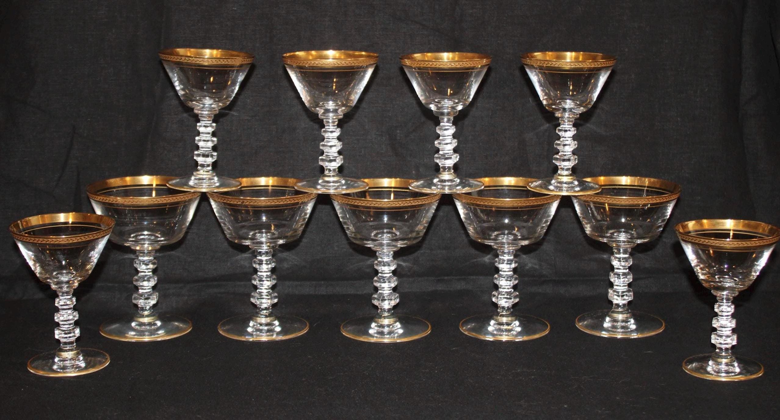 Gorgeous Gold Rimmed Tiffin Crystal Glasses- Gimlet/Cosmo/Wine/Cocktail/Bar Glasses