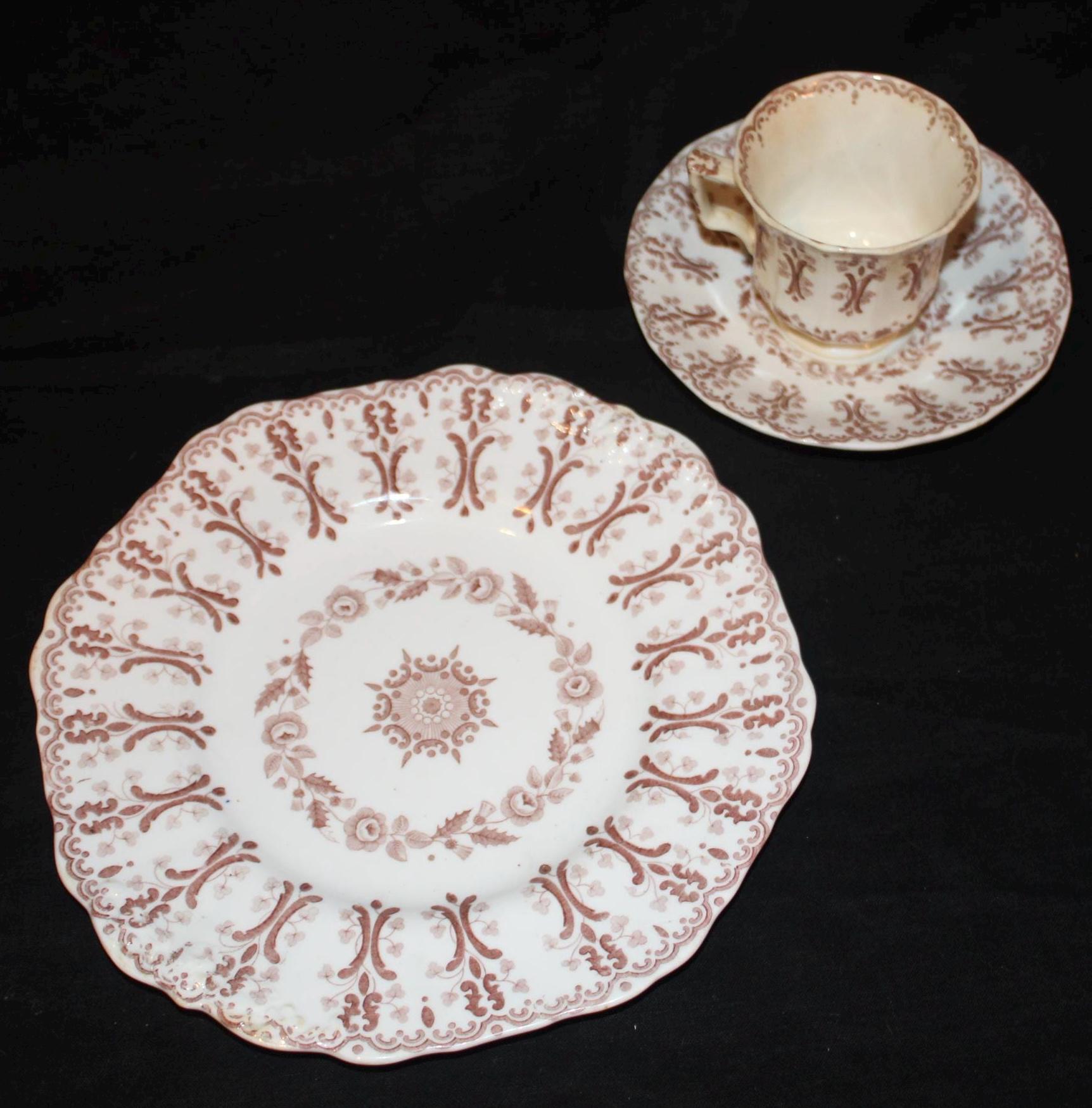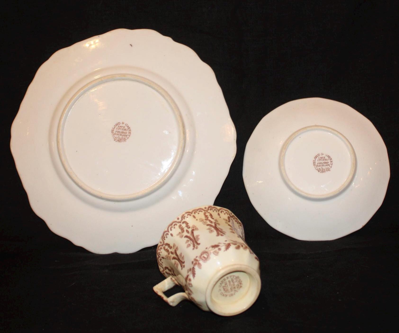 Antique Copeland and Garrett Late Spode Felspar Porcelain Teacup, Saucer, and 8.5" Luncheon Plate- Farm House/Brown and White/Transferware