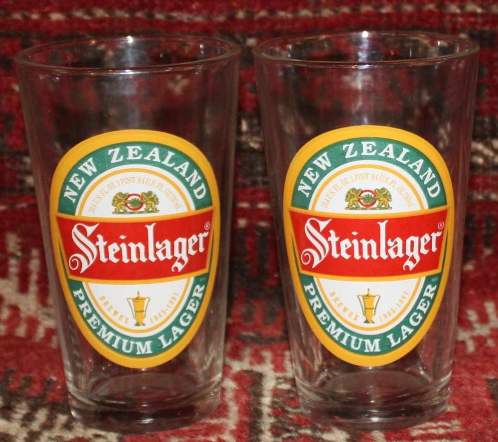Vintage Steinlager Pint Glasses – New Zealand Brewex, Set of 2