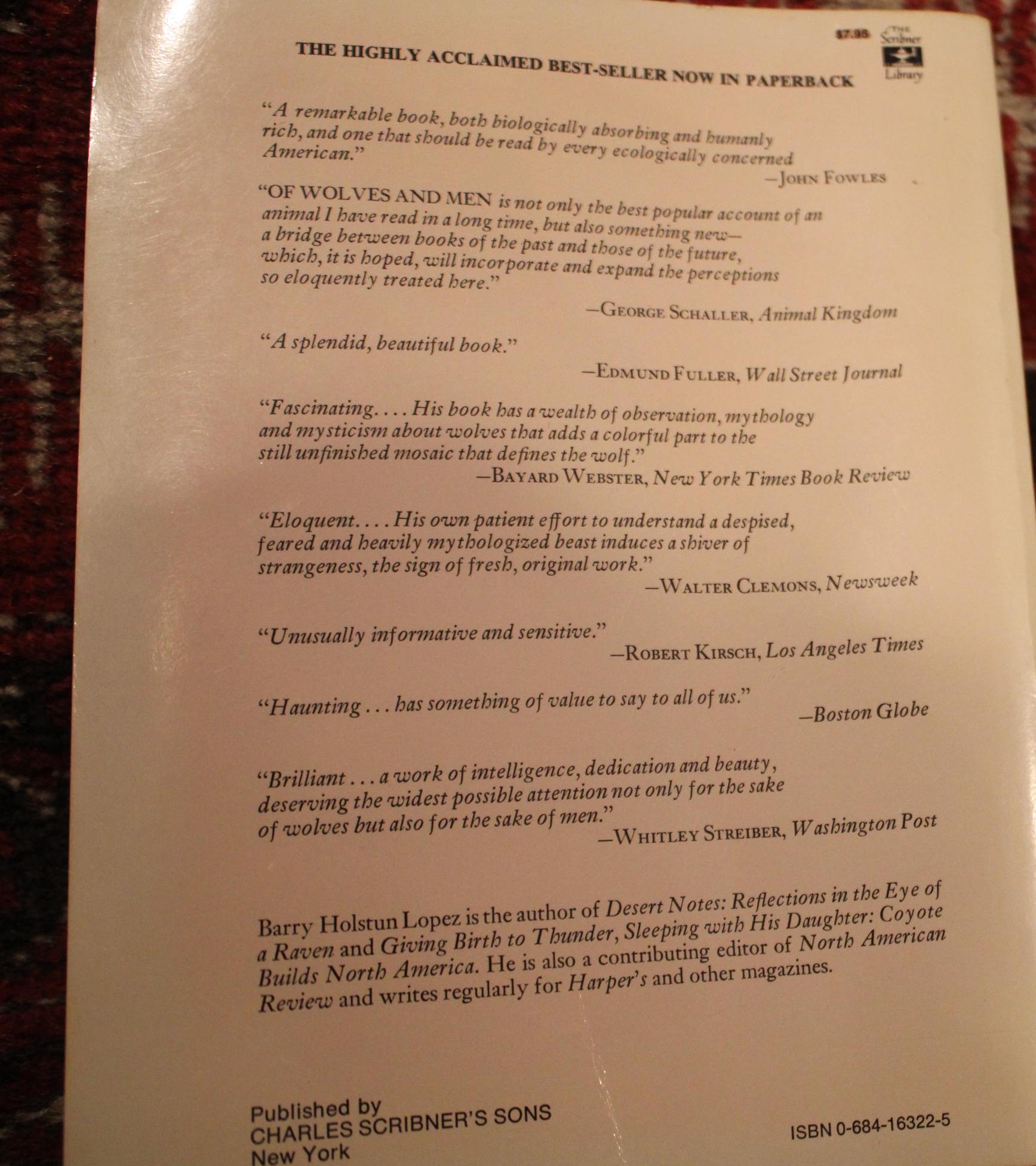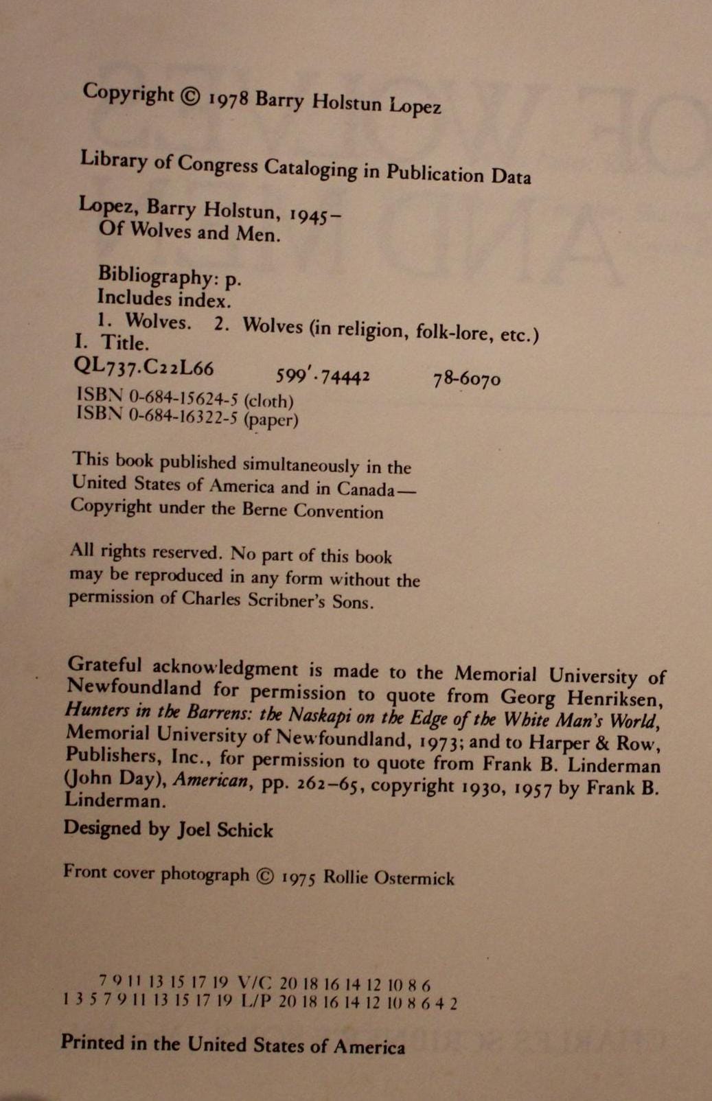Of Wolves and Men by Barry Lopez - 1978 Softcover Edition