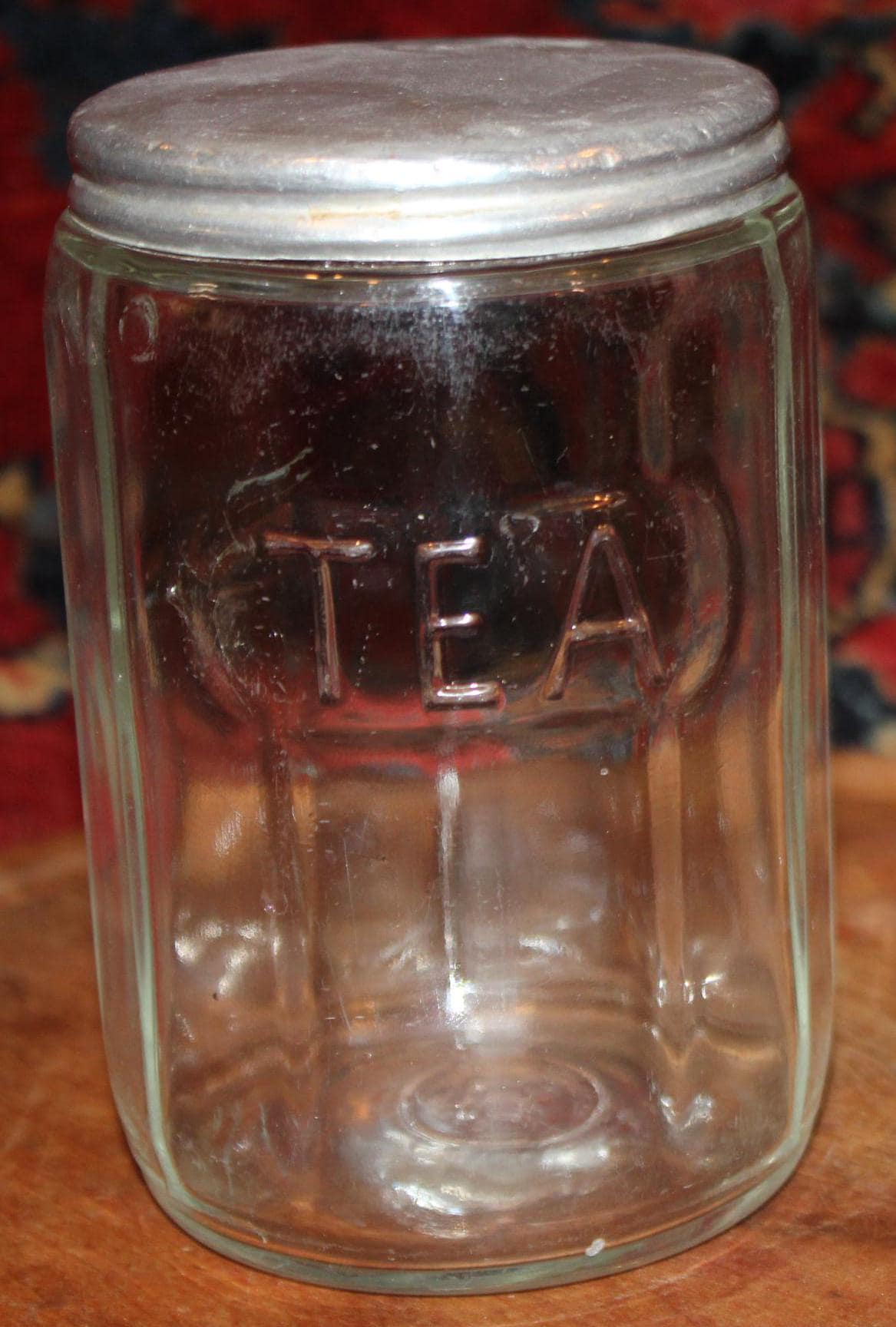 This Wonderful Antique Round 1930's Dodecagon (12-sided) Hoosier Tea Jar would be fantastic in your retro or farm house kitchen! The 12-sided Tea jar is 5" tall x 3" in diameter. The rim is in very good condition with no flea bites; there is a stable imperfection (crack?- it is smooth to the touch on the interior and exterior) in the side of the jar which can be seen in the photos. The lid is easily screwed on and off; there is some wear to the lid (please see our photos). The front of the jar has TEA embossed. Please message us if you have any questions- Thanks for looking!