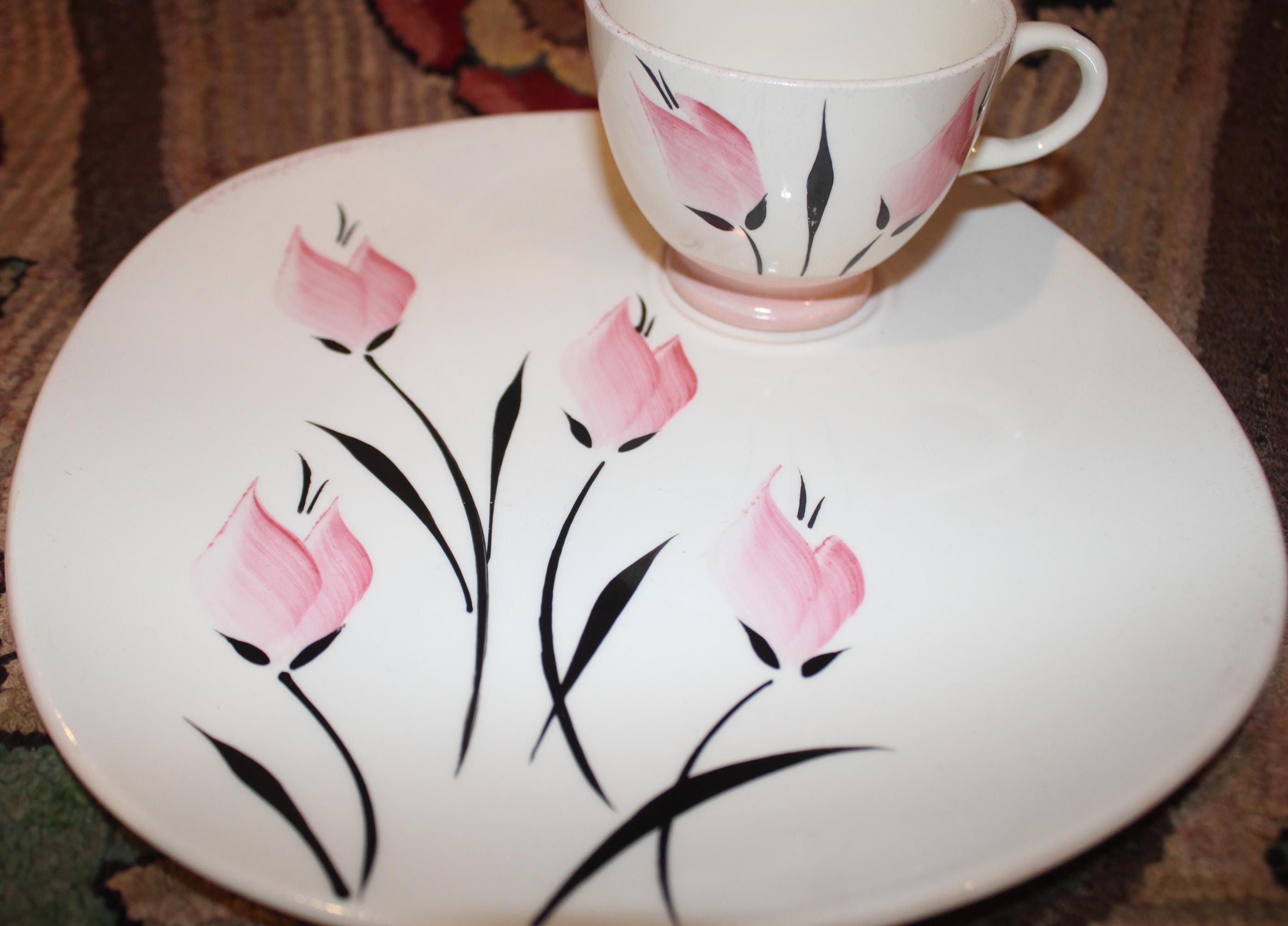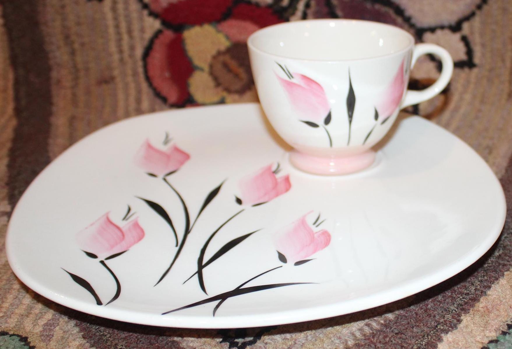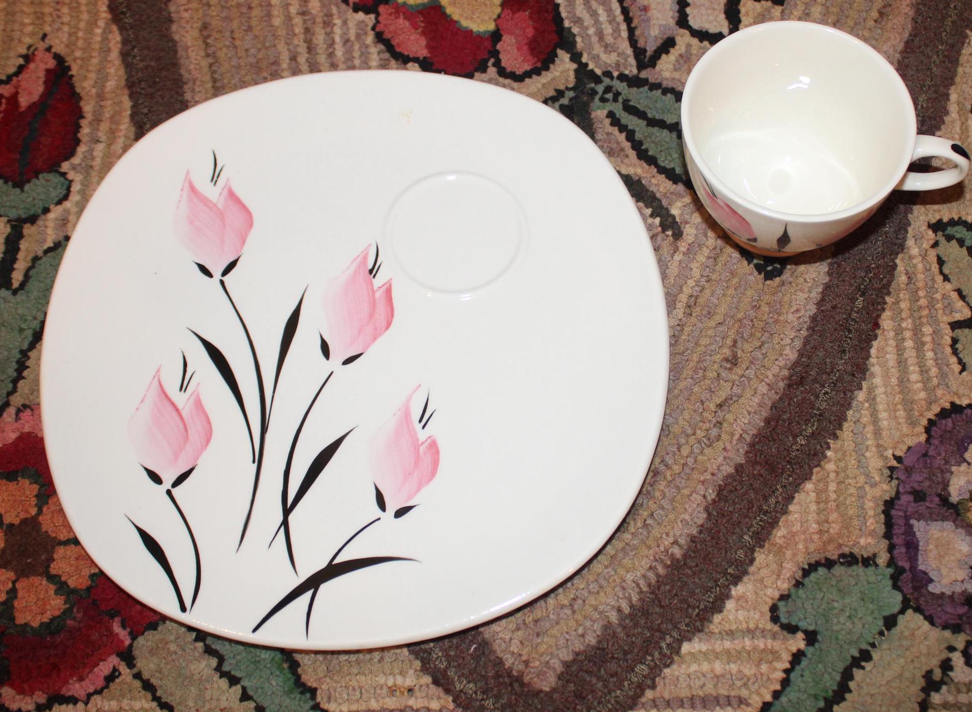 Sweet Midcentury Eastern China Pale Pink Tulip Plate with Coffee Cup- Handpainted/U.S.A./Coffee/Lunch