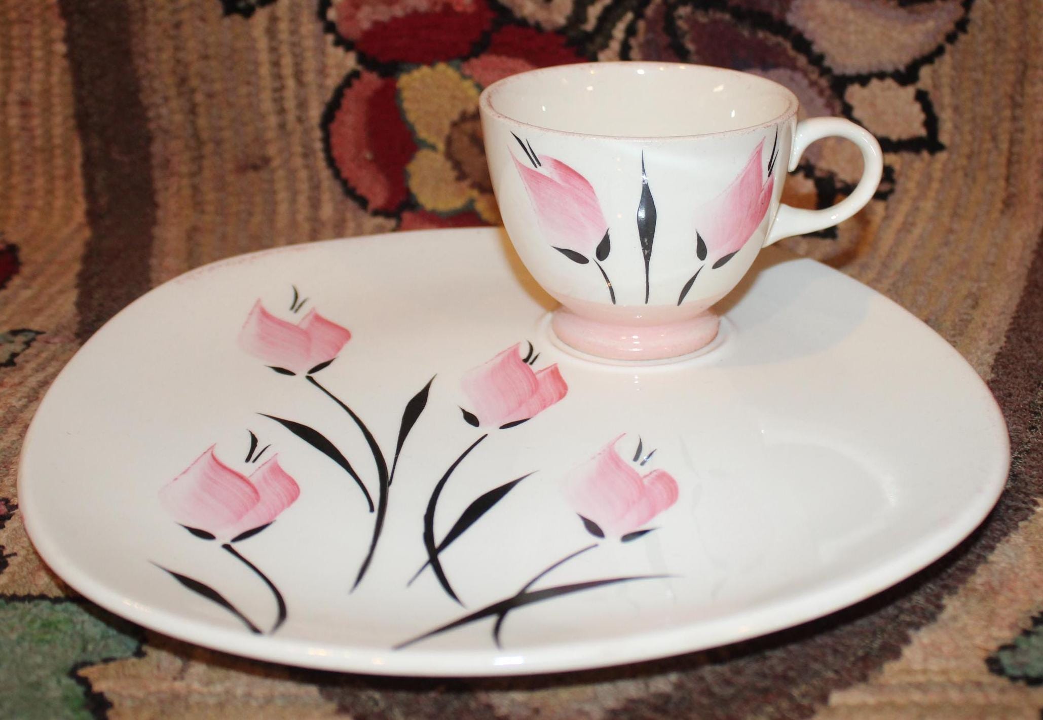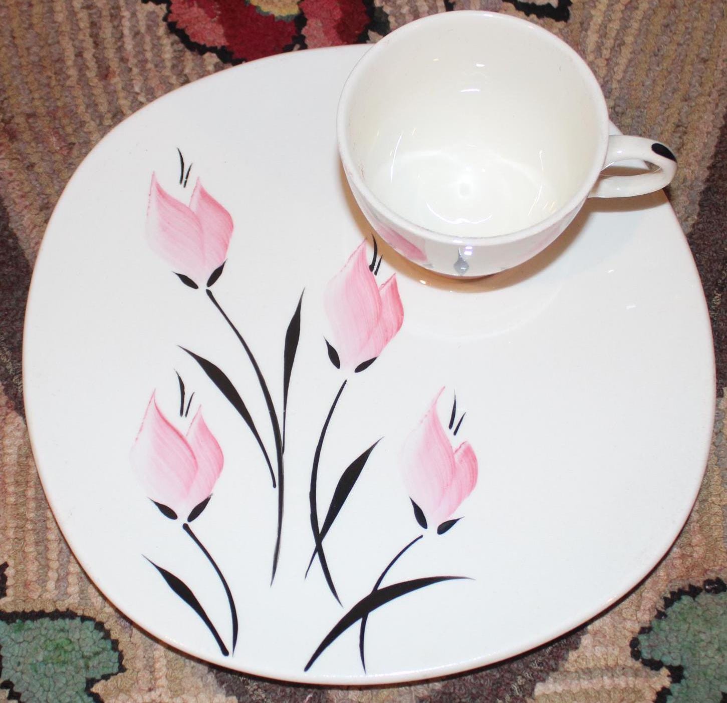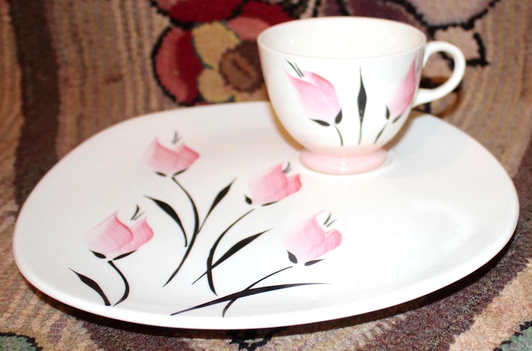 Sweet Midcentury Eastern China Pale Pink Tulip Plate with Coffee Cup- Handpainted/U.S.A./Coffee/Lunch