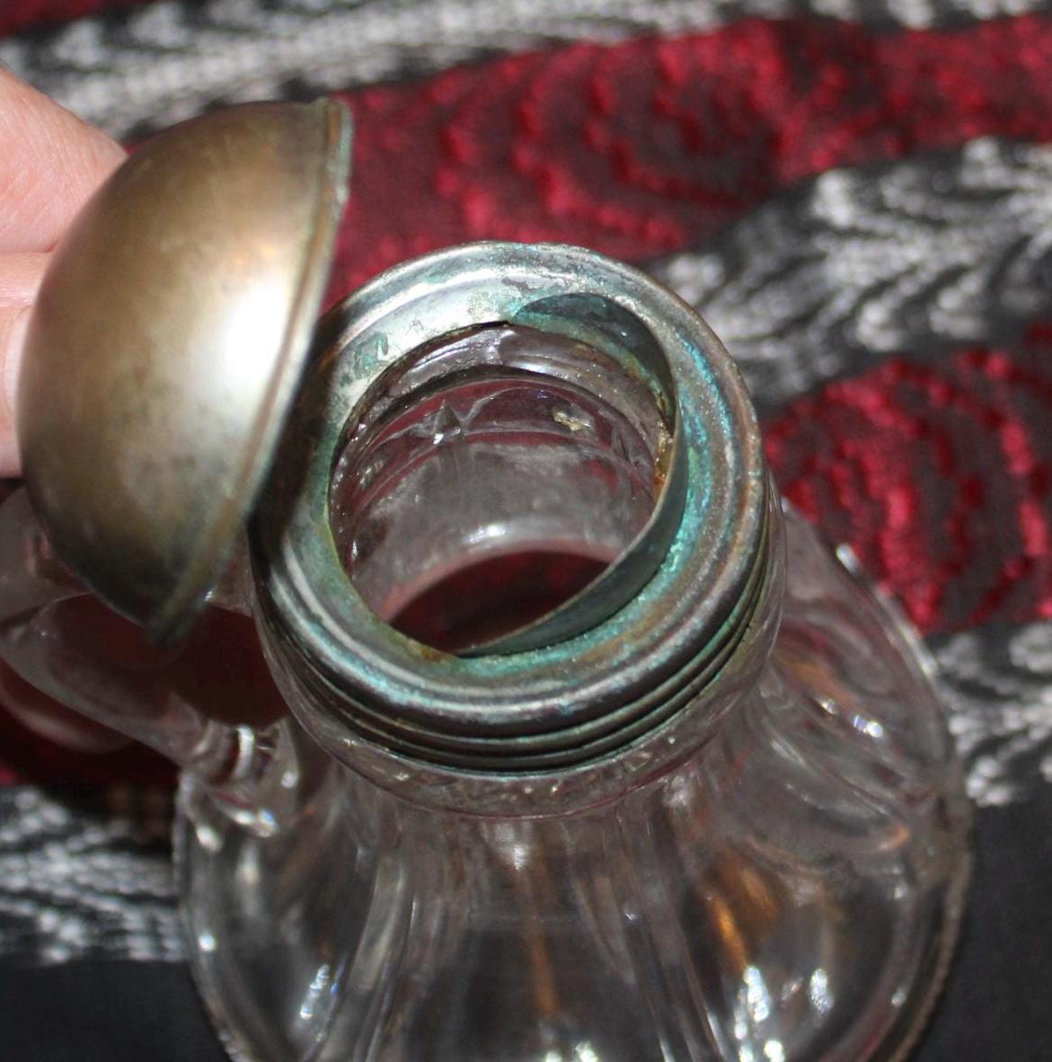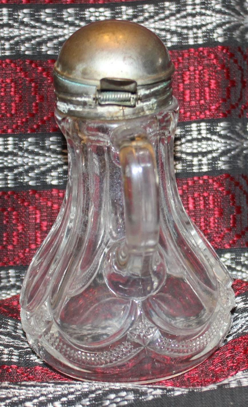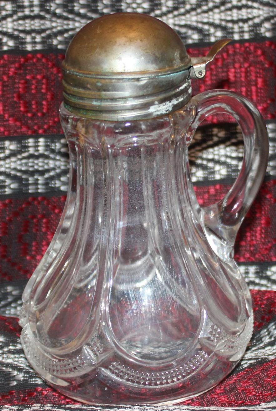Antique Glass Syrup With Tin Hinged Pouring Lid- Farmhouse/Maple Syrup/Country/Pancakes