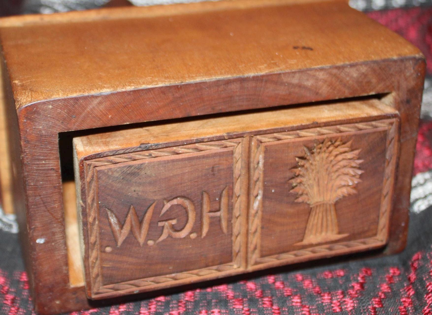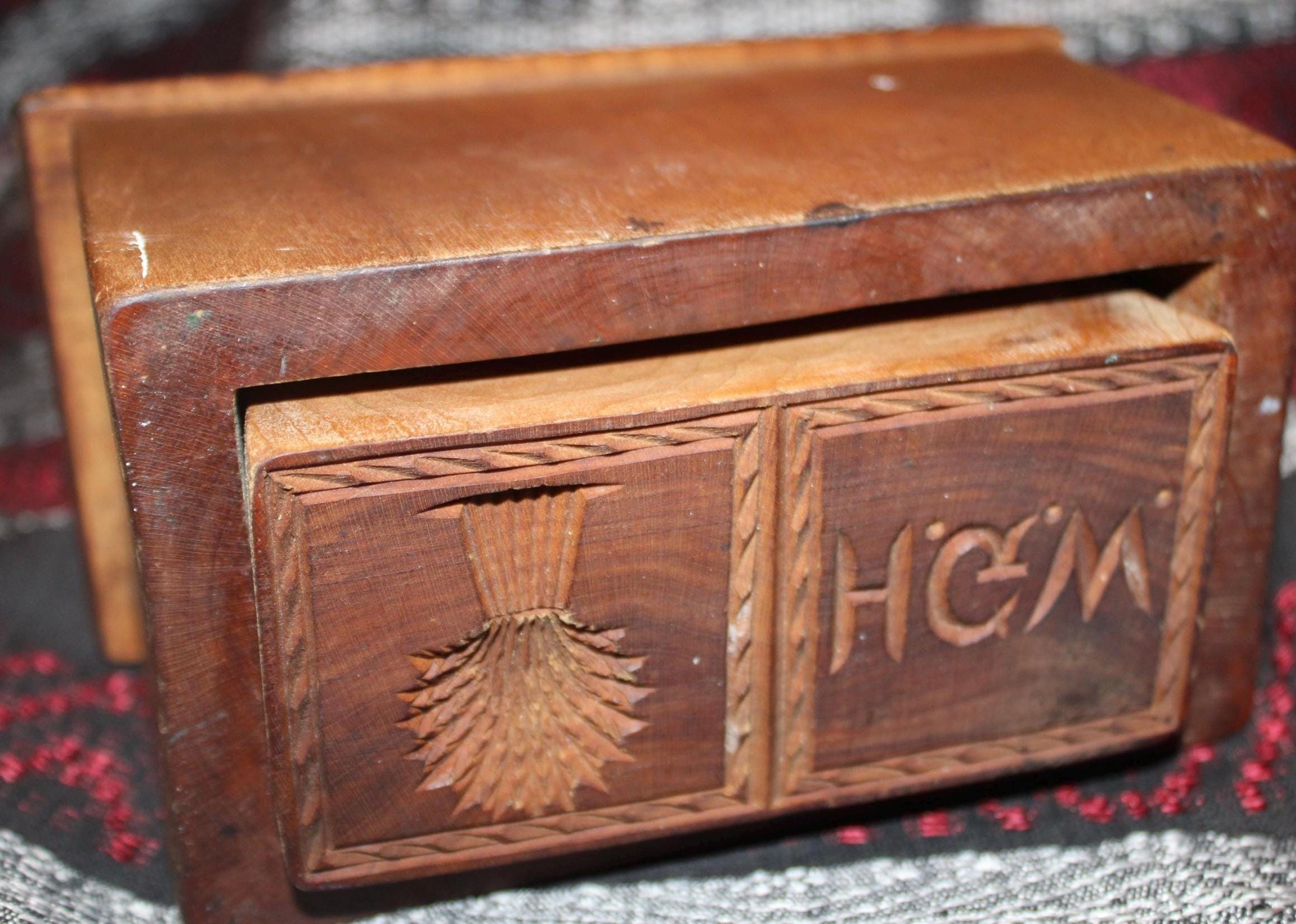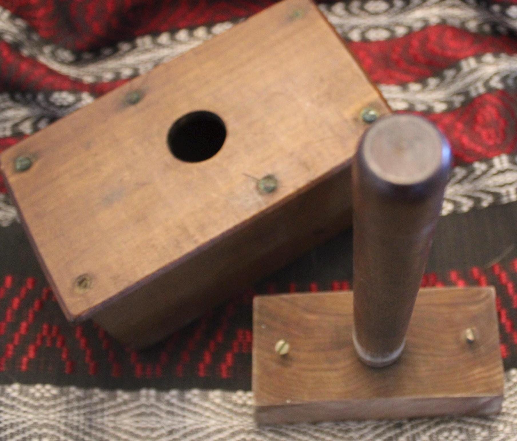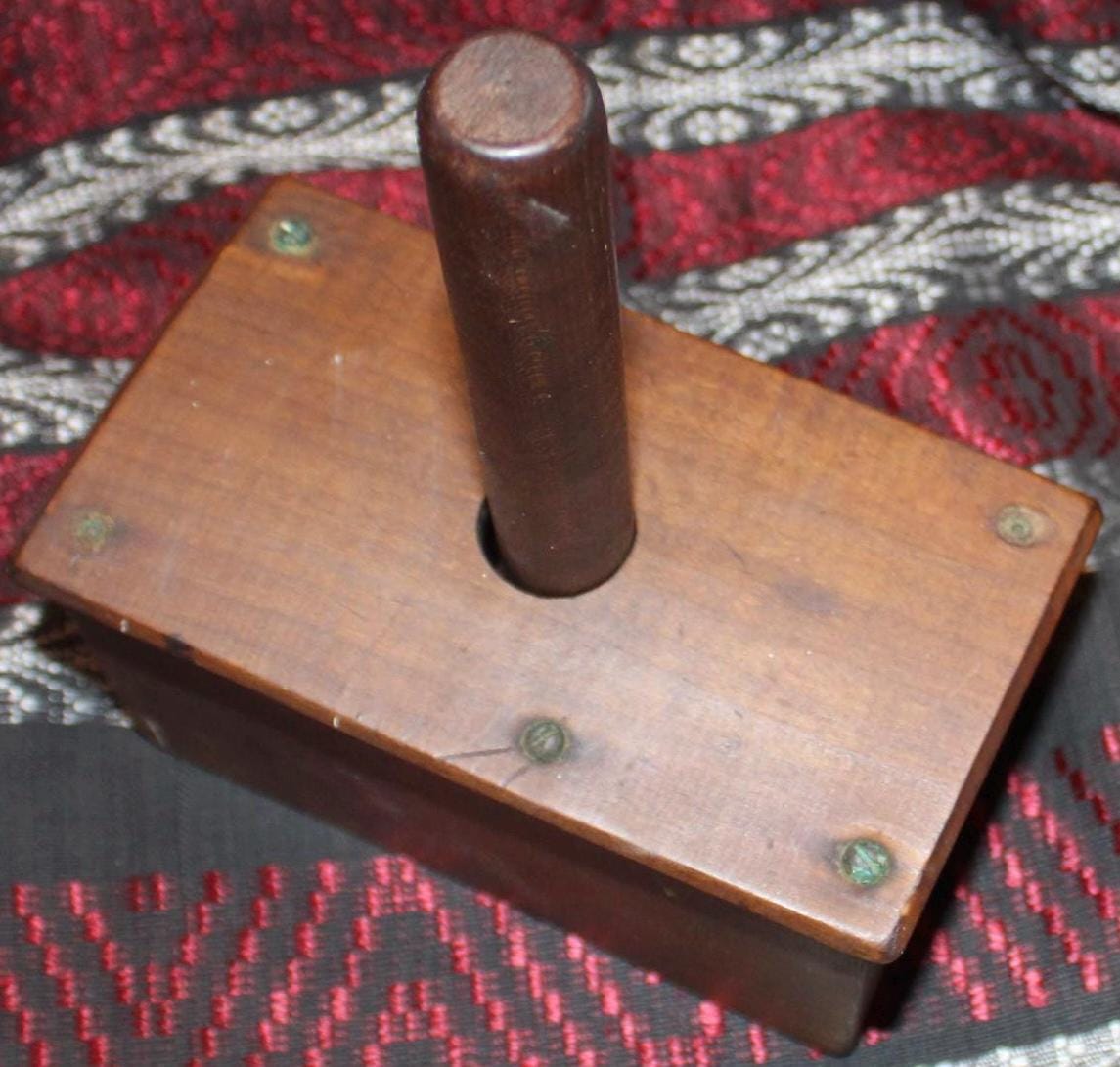 This Fantastic Antique HGW and Wheat Rectangular Butter Stamp/Press would be a great addition to your antique butter press collection! It is very well carved and detailed- the bundle of wheat as well as the “HGW” monogram are surrounded by a gorgeous carved border. The most interesting aspect of this mold is that the wooden square that houses the stamp is carved from a single piece of maple; the square’s cap is slightly warped and is fastened with tiny screws (two are missing- please see our photos). It is 6”x 3.25” with a plunger handle that is 8.5” long. The dry attic surface and rich brown patina are wonderful. Please message us if you have any questions- Thanks for looking!