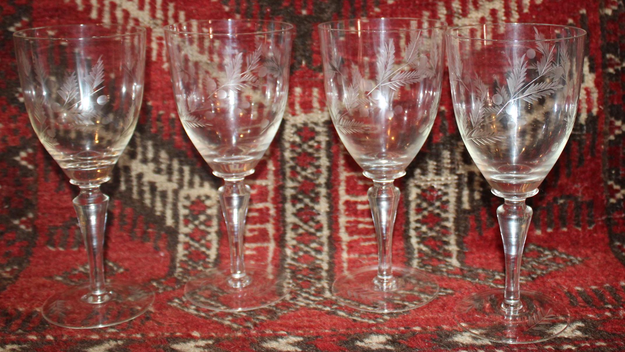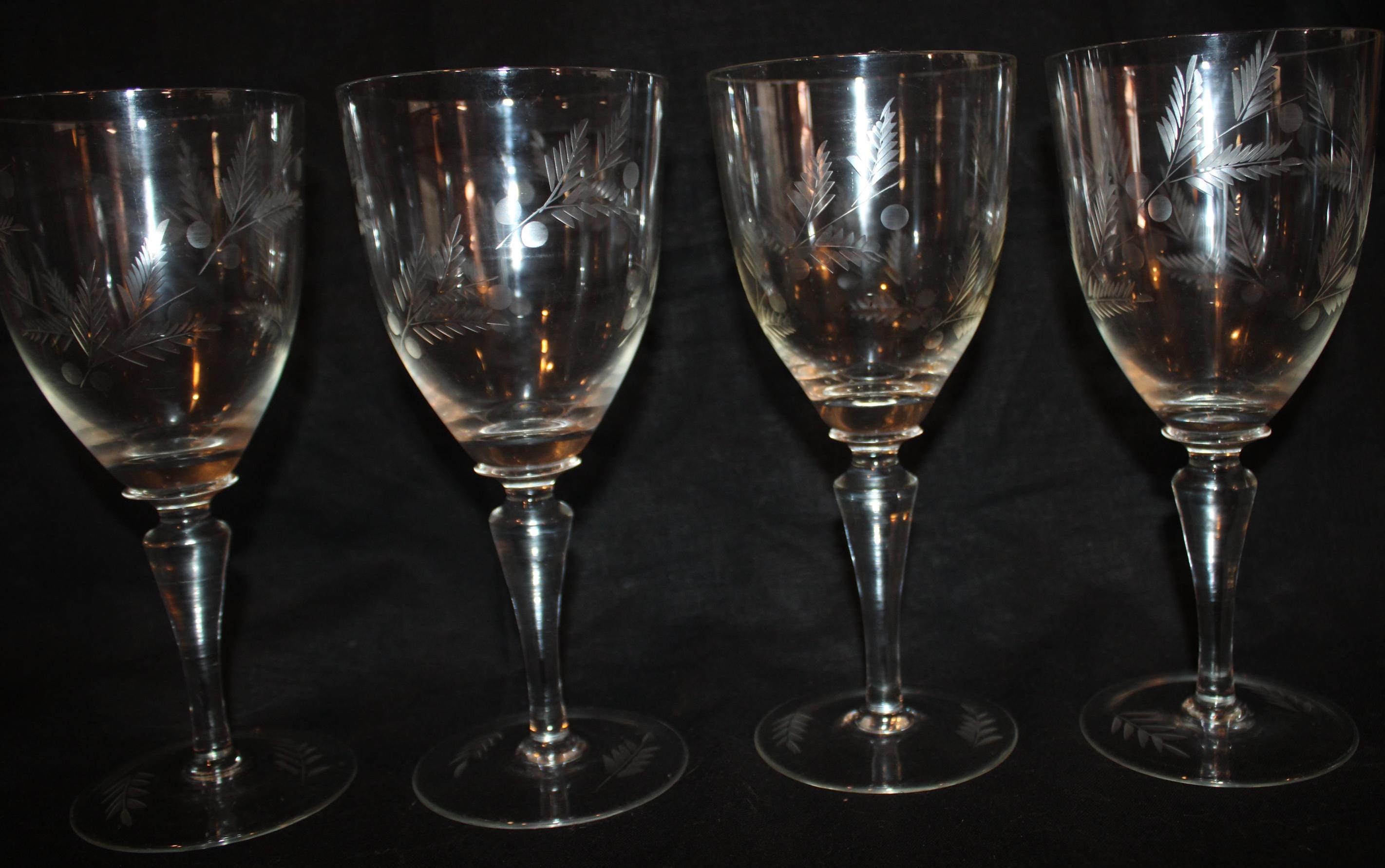 Gorgeous Set of 4 Etched Wine Glasses- Bar/Fine Dining/Chardonnay/Pinot Grigio/Cheers!