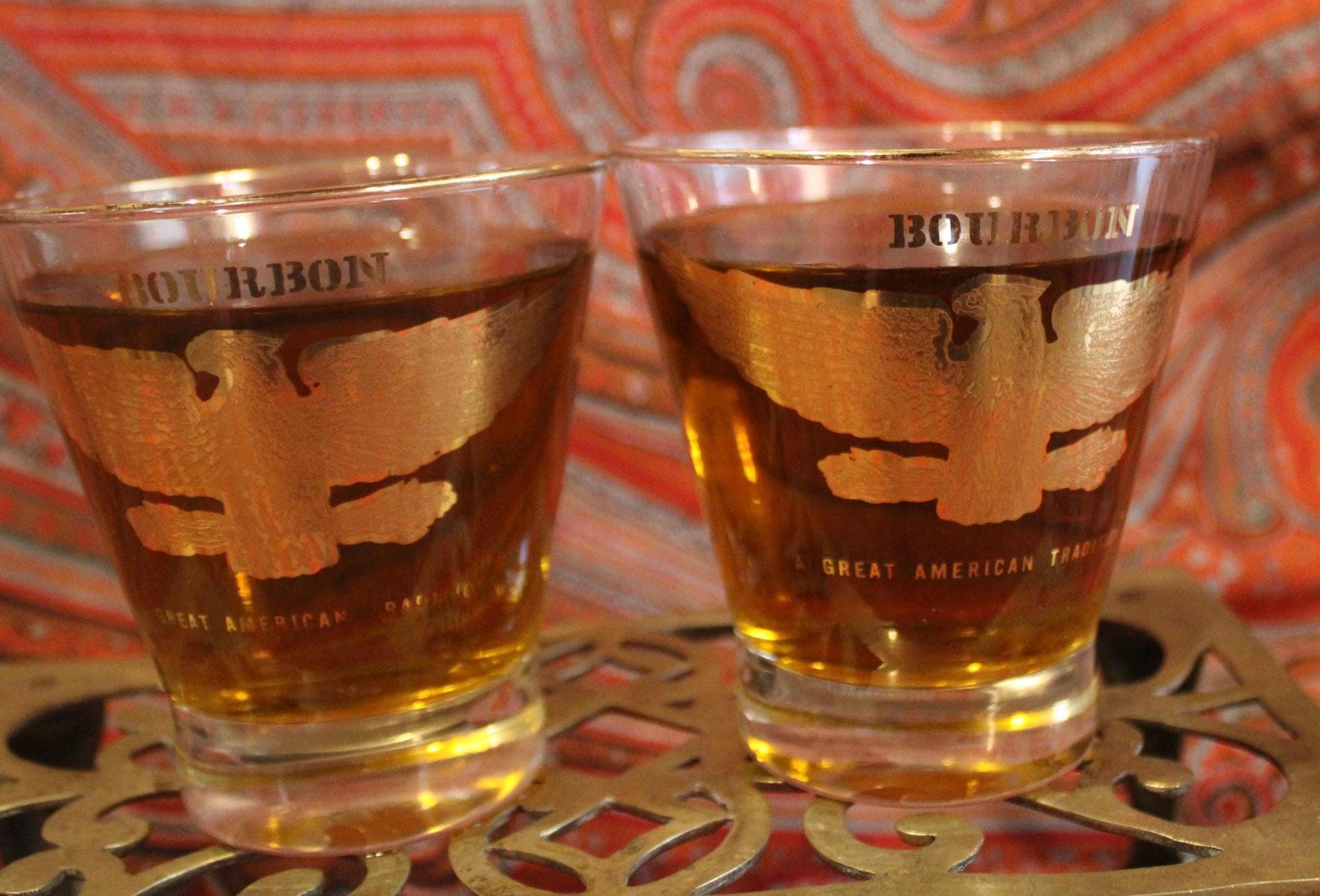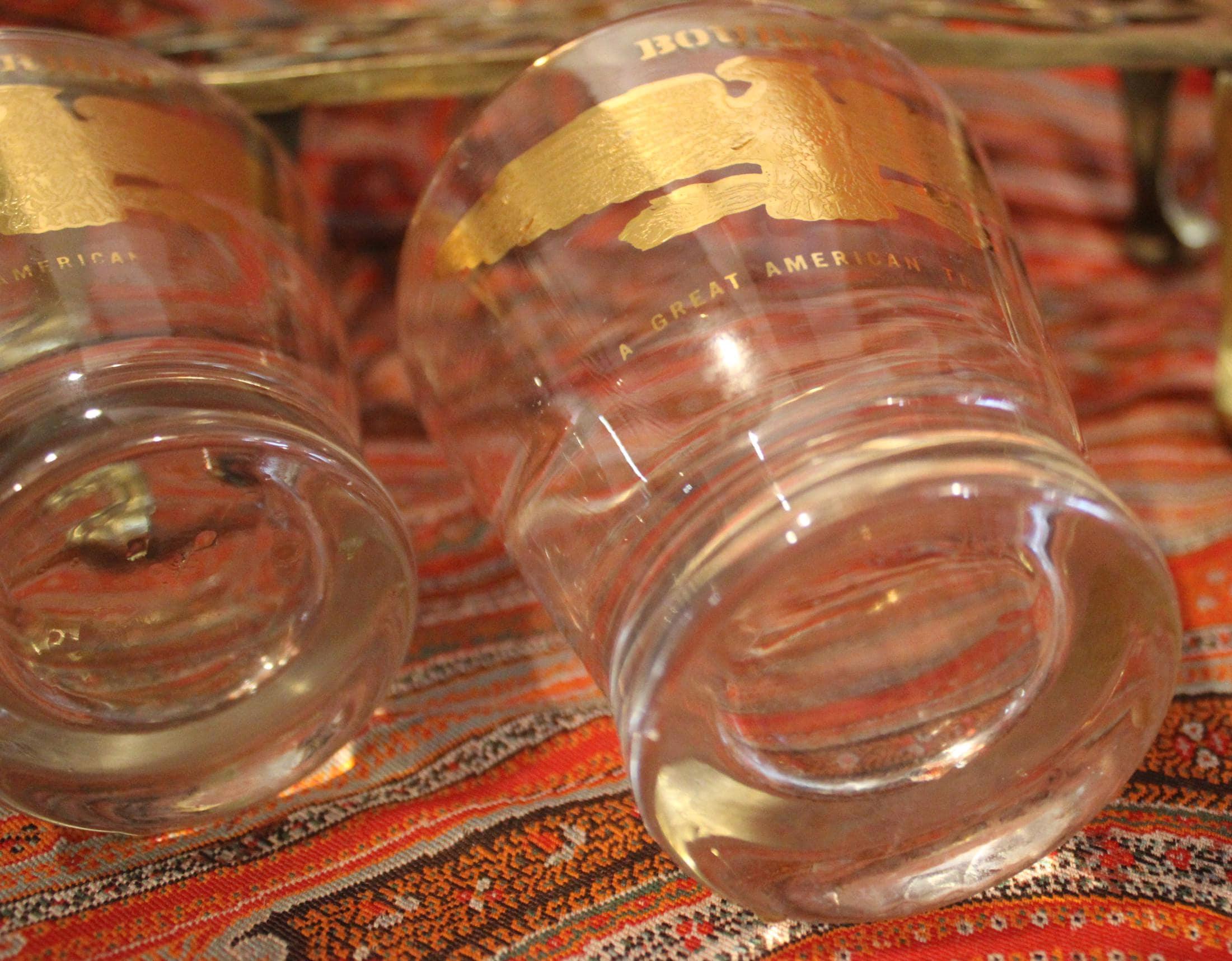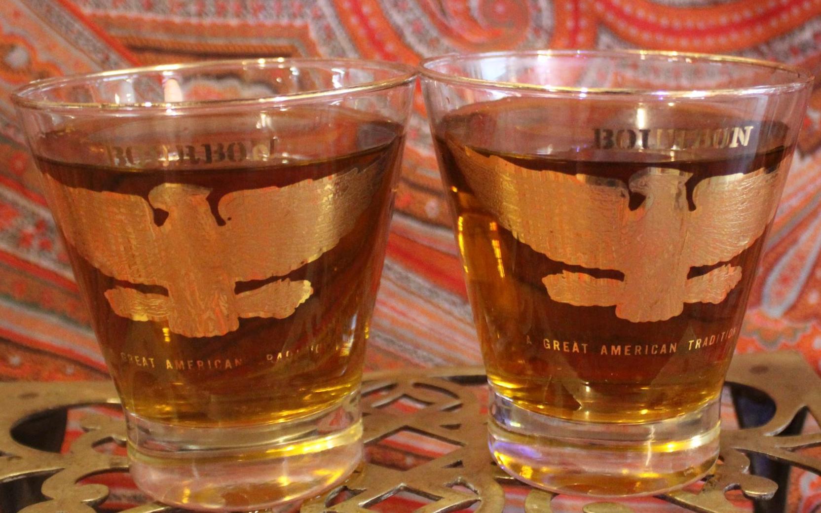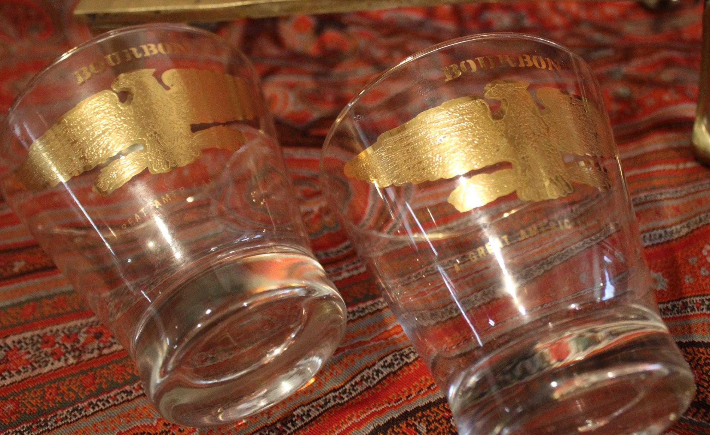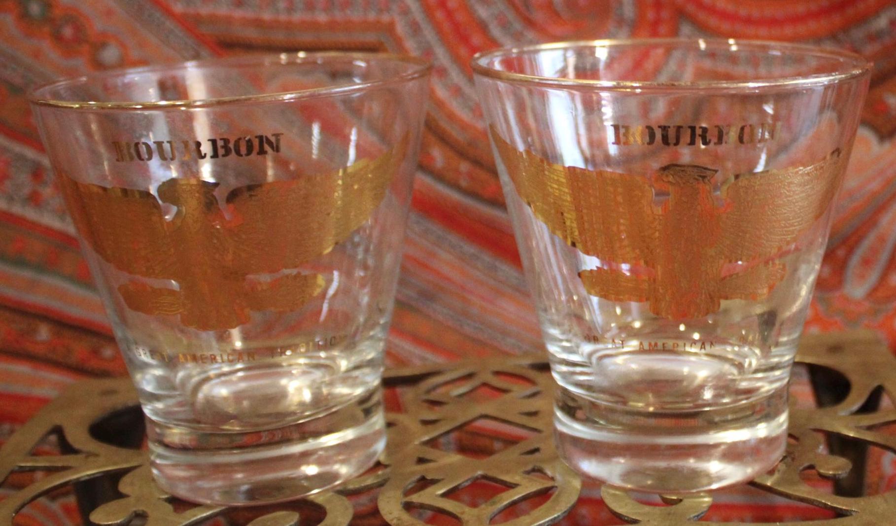 Vintage Gold Eagle Bourbon Glasses – Low Ball Cocktail Barware, Pair