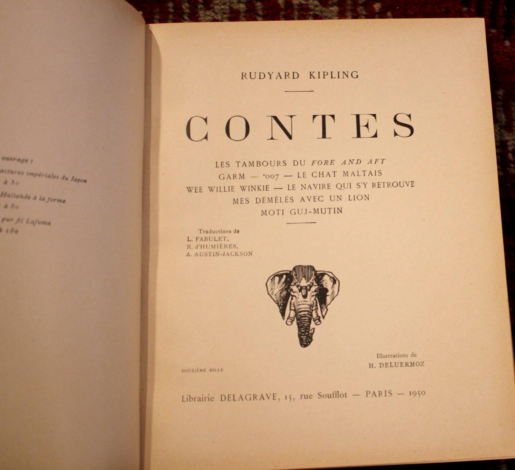 Contes by Rudyard Kipling- Published in Paris- 1950- Text is in French/Gorgeous Hardcover Binding!!