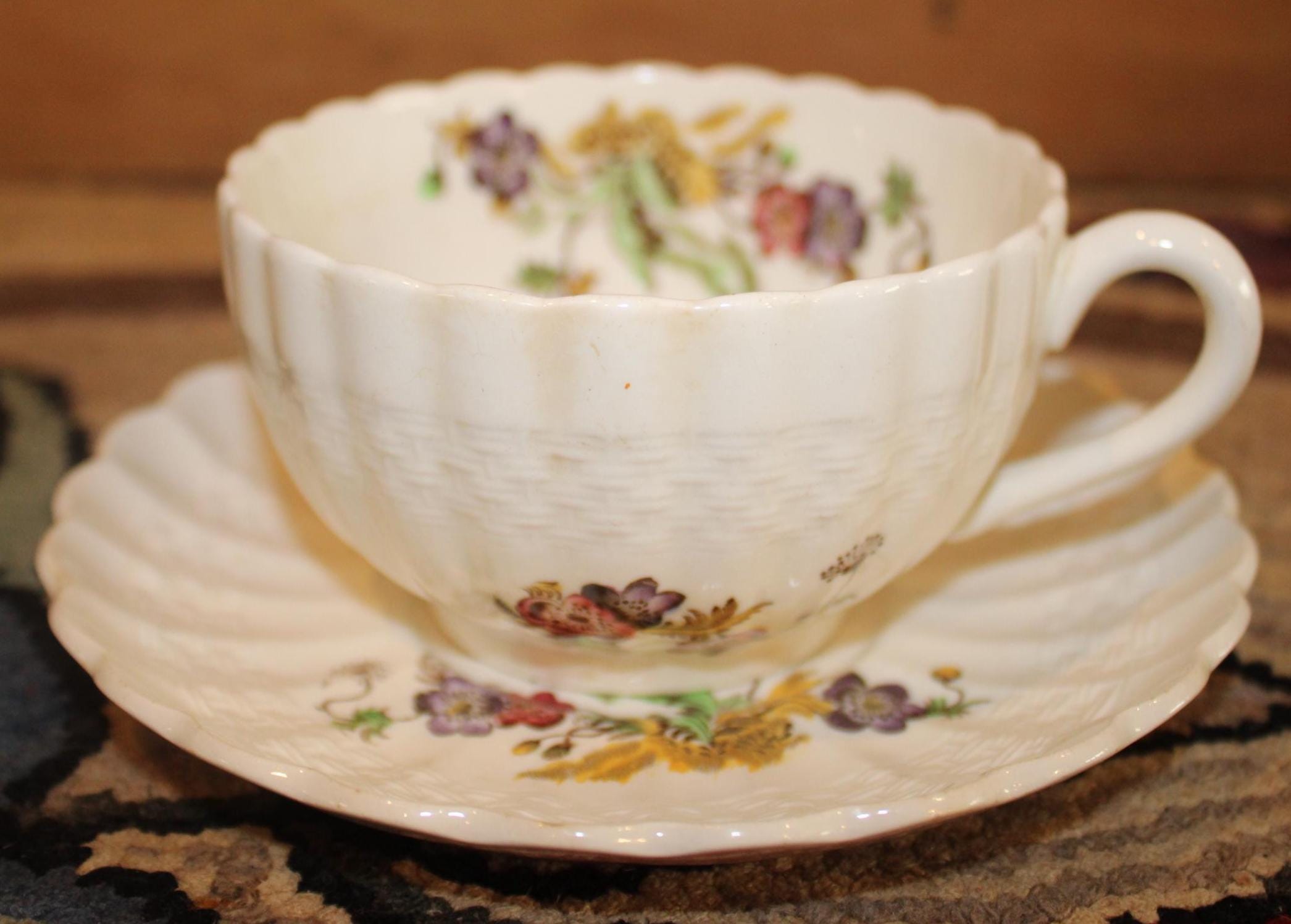 These Copeland Spode "Wicker Lane" Basket Weave Cups and Saucers are gorgeous and would be a wonderful addition to your set!
