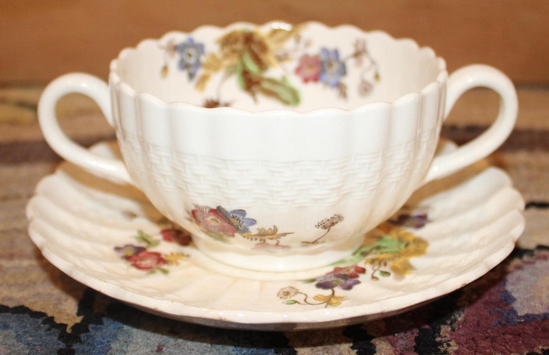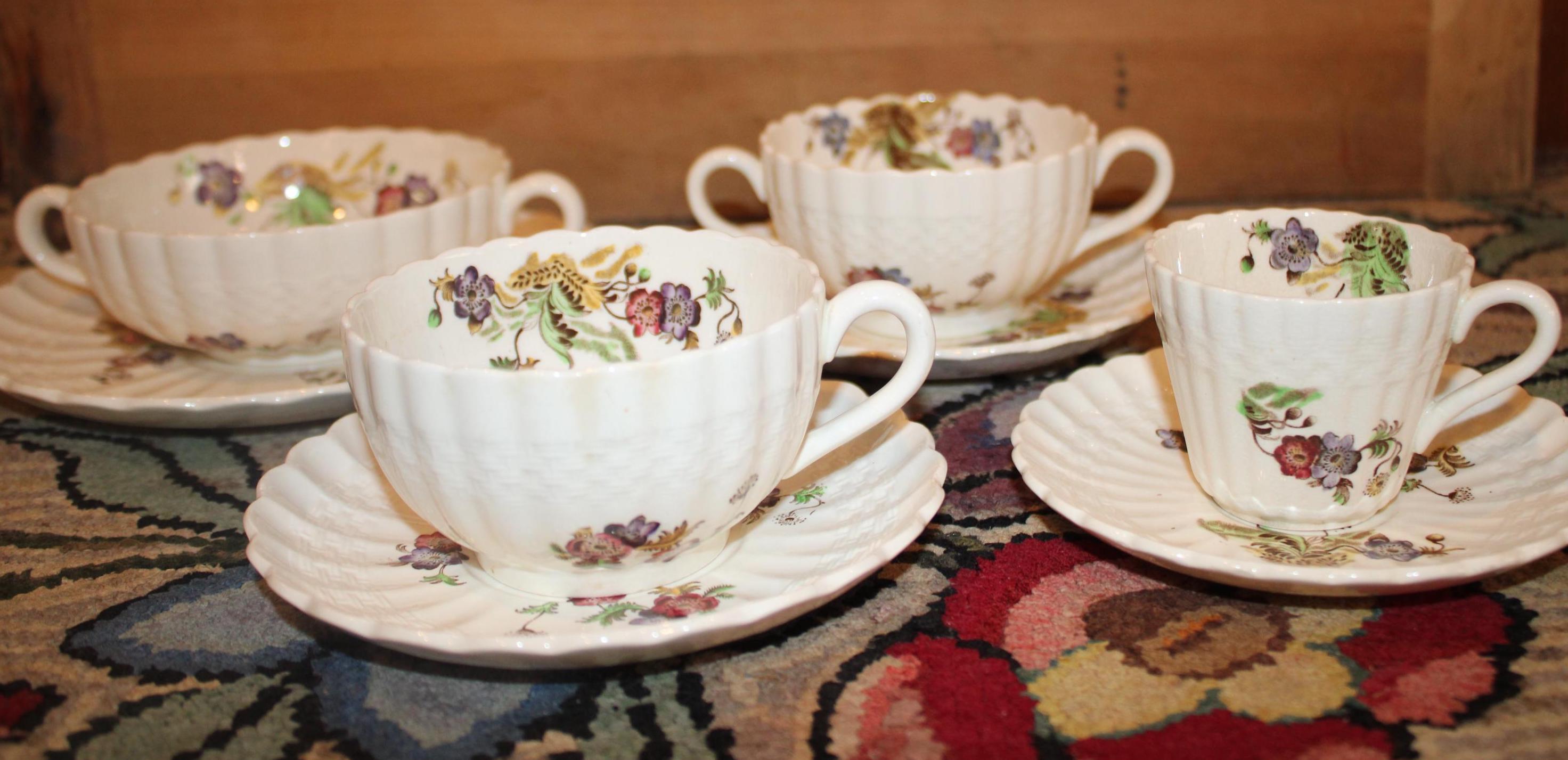 Beautiful Copeland Spode "Wicker Lane" Basket Weave Cups and Saucers- Made in England- Tea/Coffee/Bouillon/Soup/Demitasse