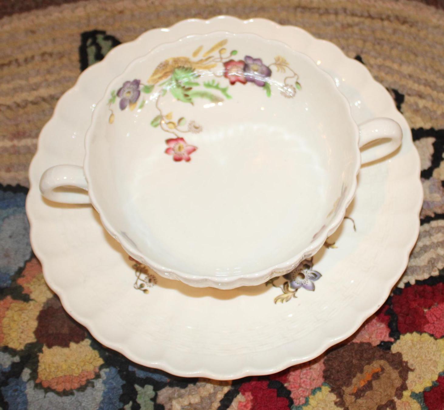 2 Large Bouillon/Soup Bowls with Saucers (The cups hold 8 ounces; the saucers are 7.25" in diameter)